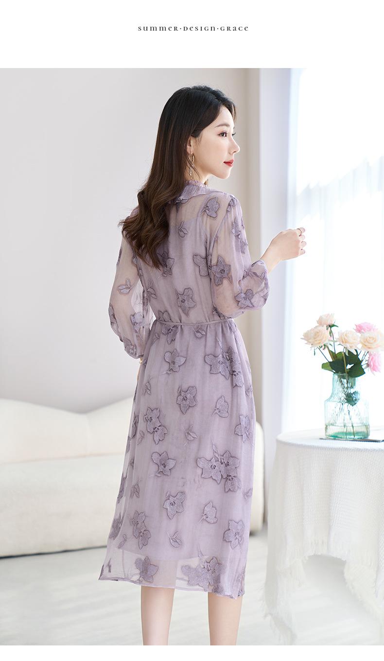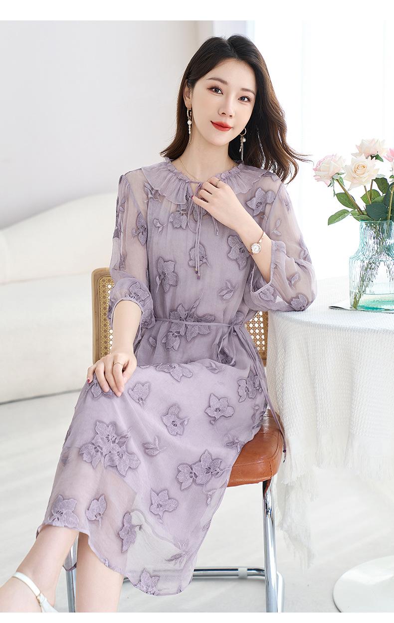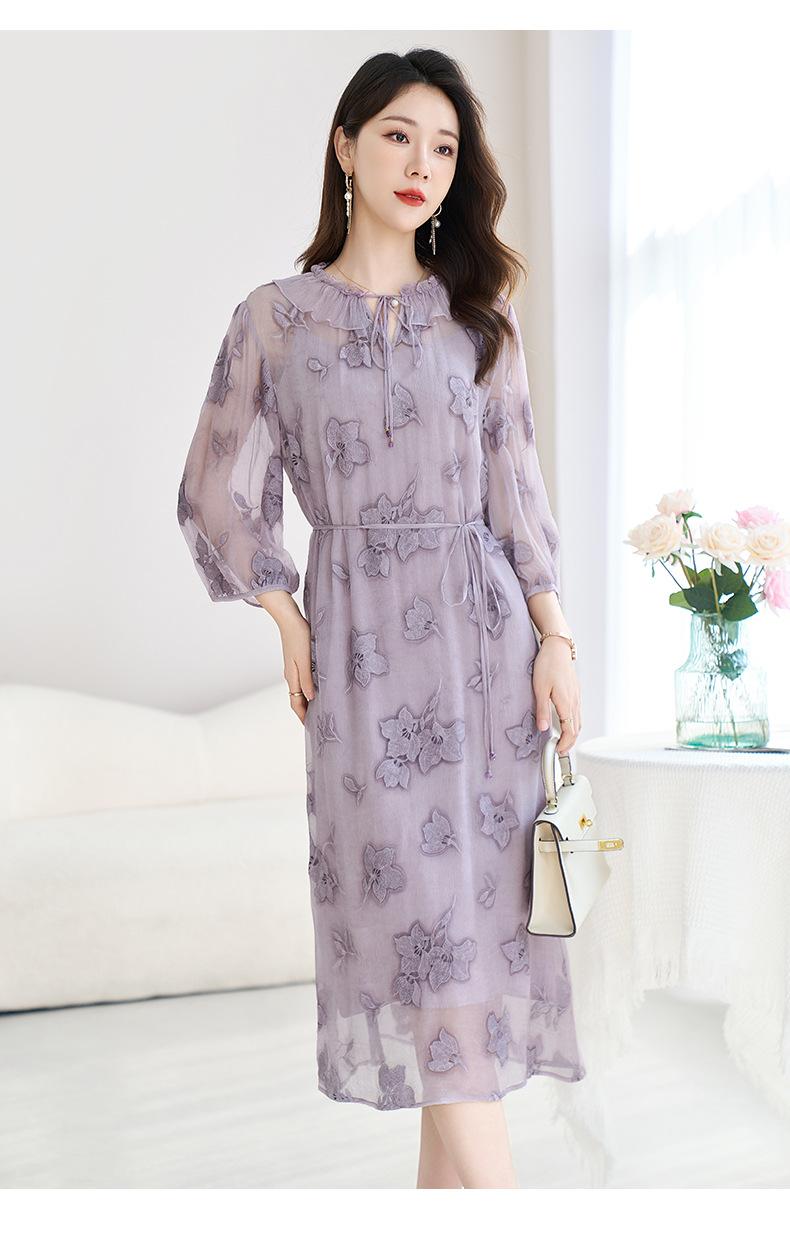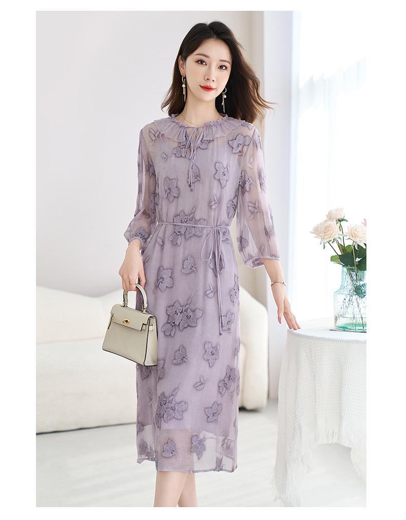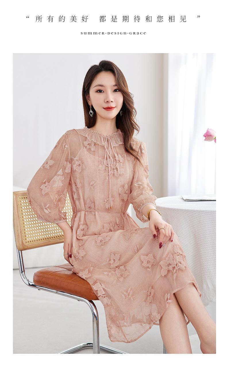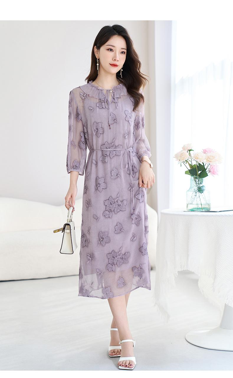 [Bordado de seda] Vestido 100% seda morera para mujer, elegante y ajustado de verano, largo medio, 9718