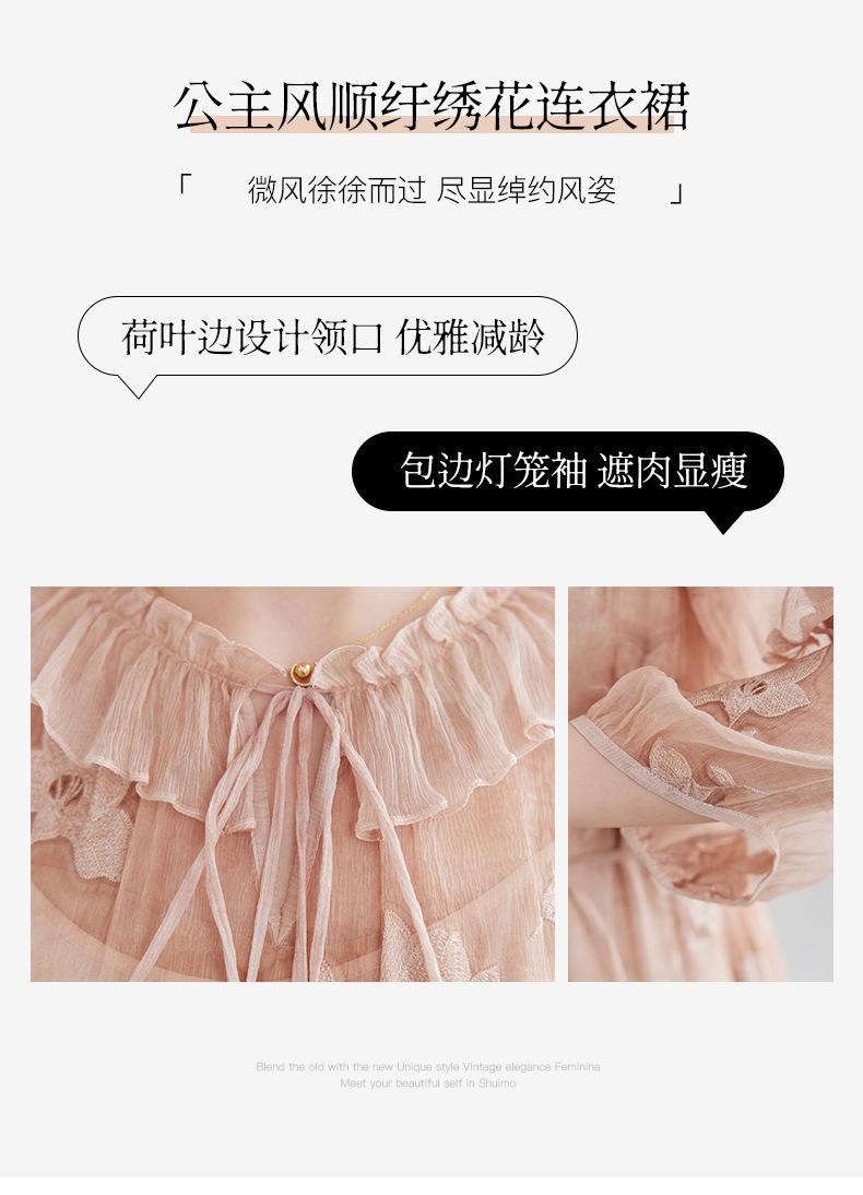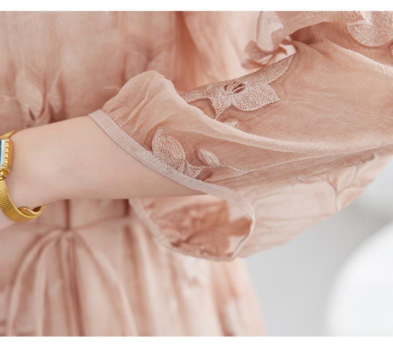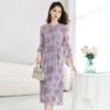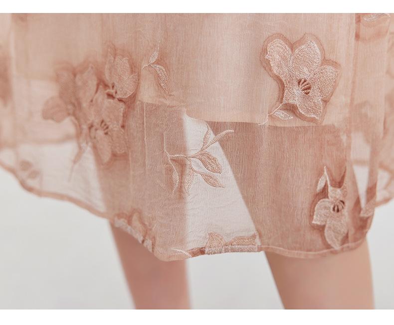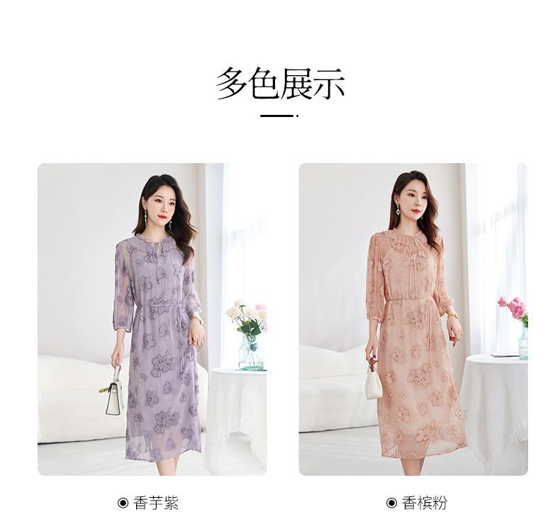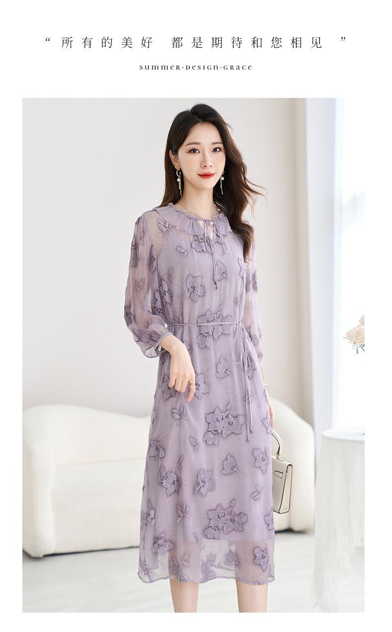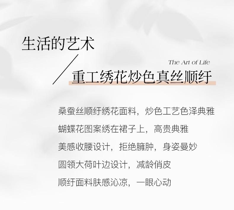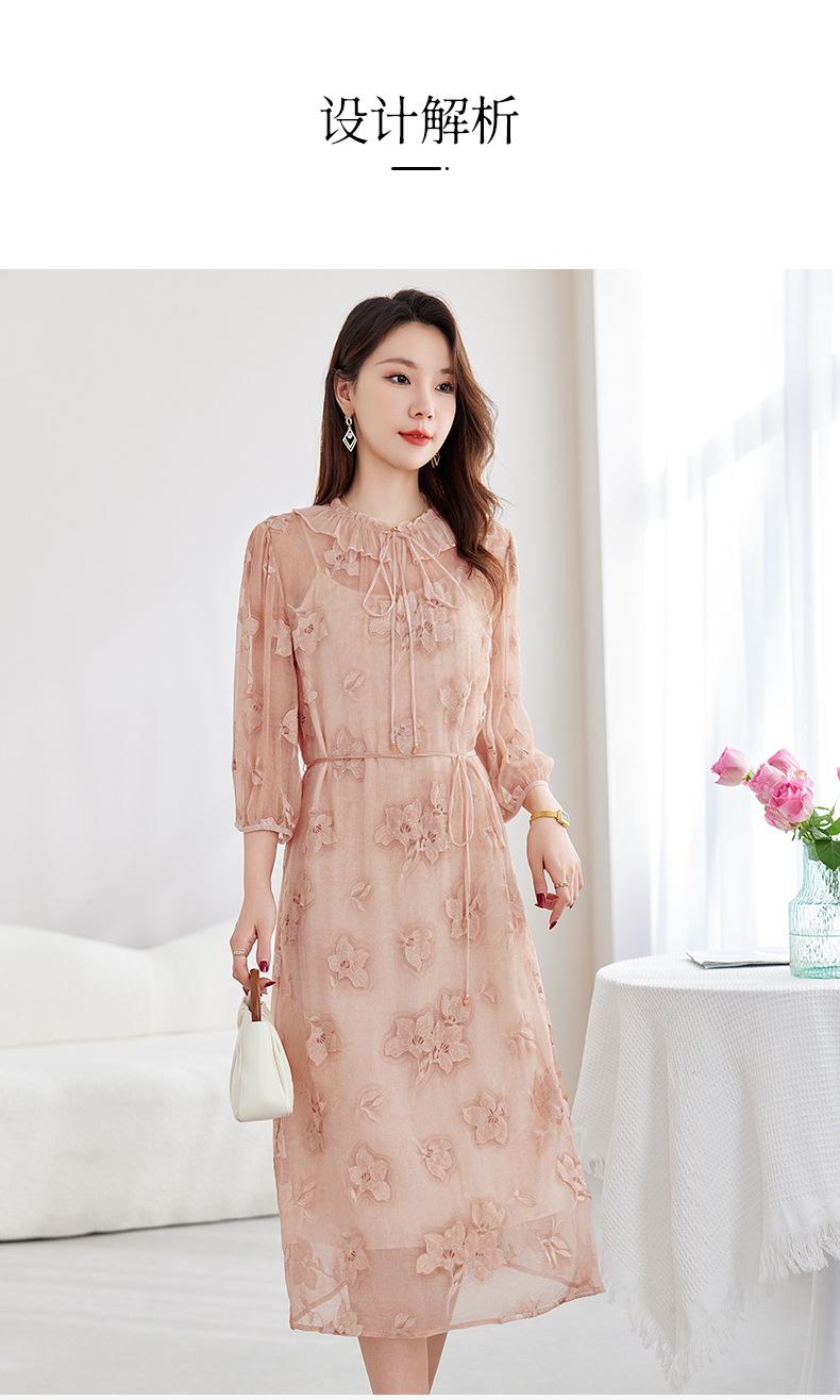 [Bordado de seda] Vestido 100% seda morera para mujer, elegante y ajustado de verano, largo medio, 9718