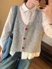 Chaleco de Punto Apilado de Forro Polar Afelpado de Estilo Coreano Holgado con Cuello Redondo y Hebilla Holgada para Mujer