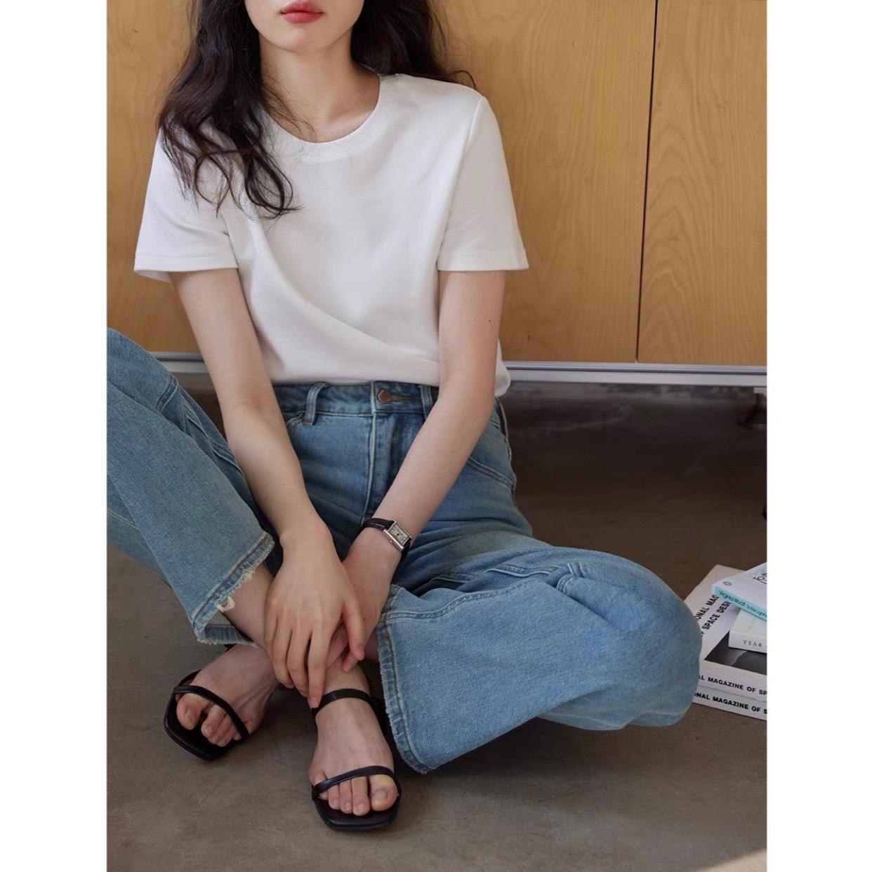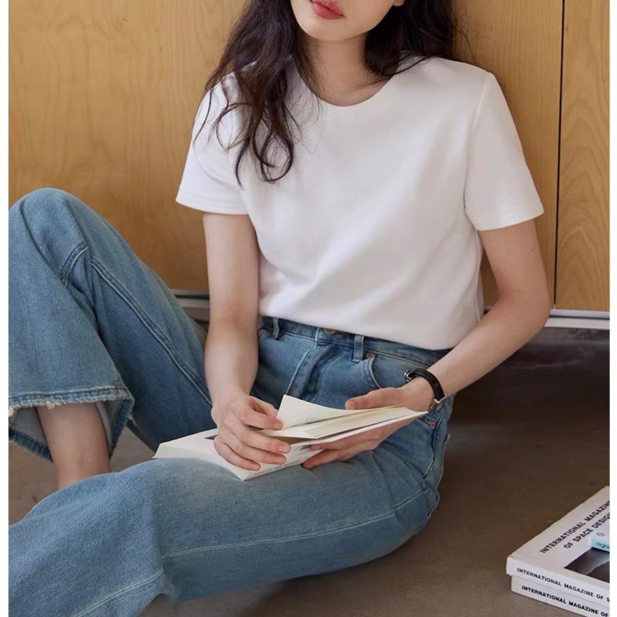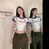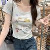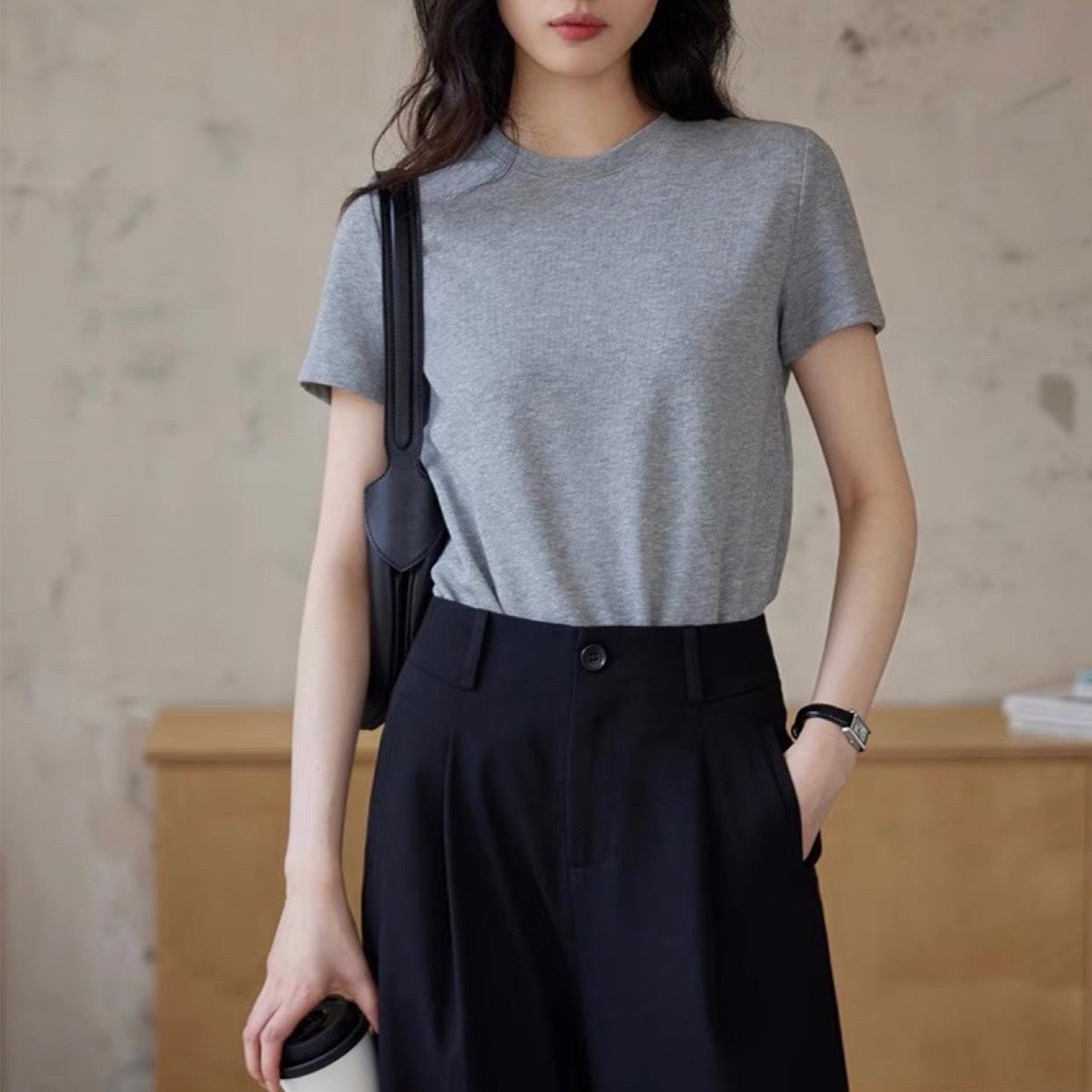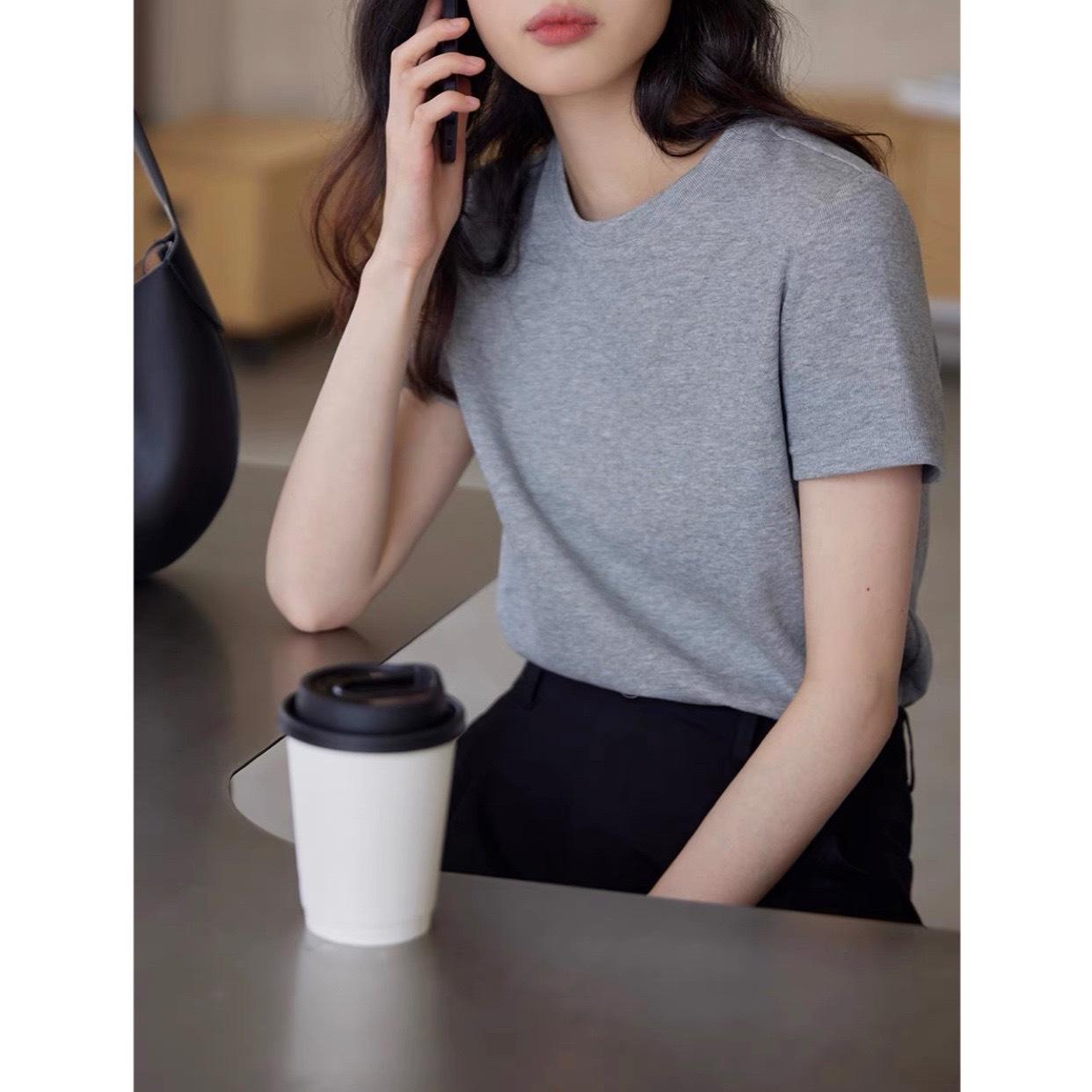 GINNKE Camiseta Gris de Hombro Cuello Redondo Jersey Manga Corta para Mujer Verano Pequeño Top Blanco Transpirable Casual Combinable