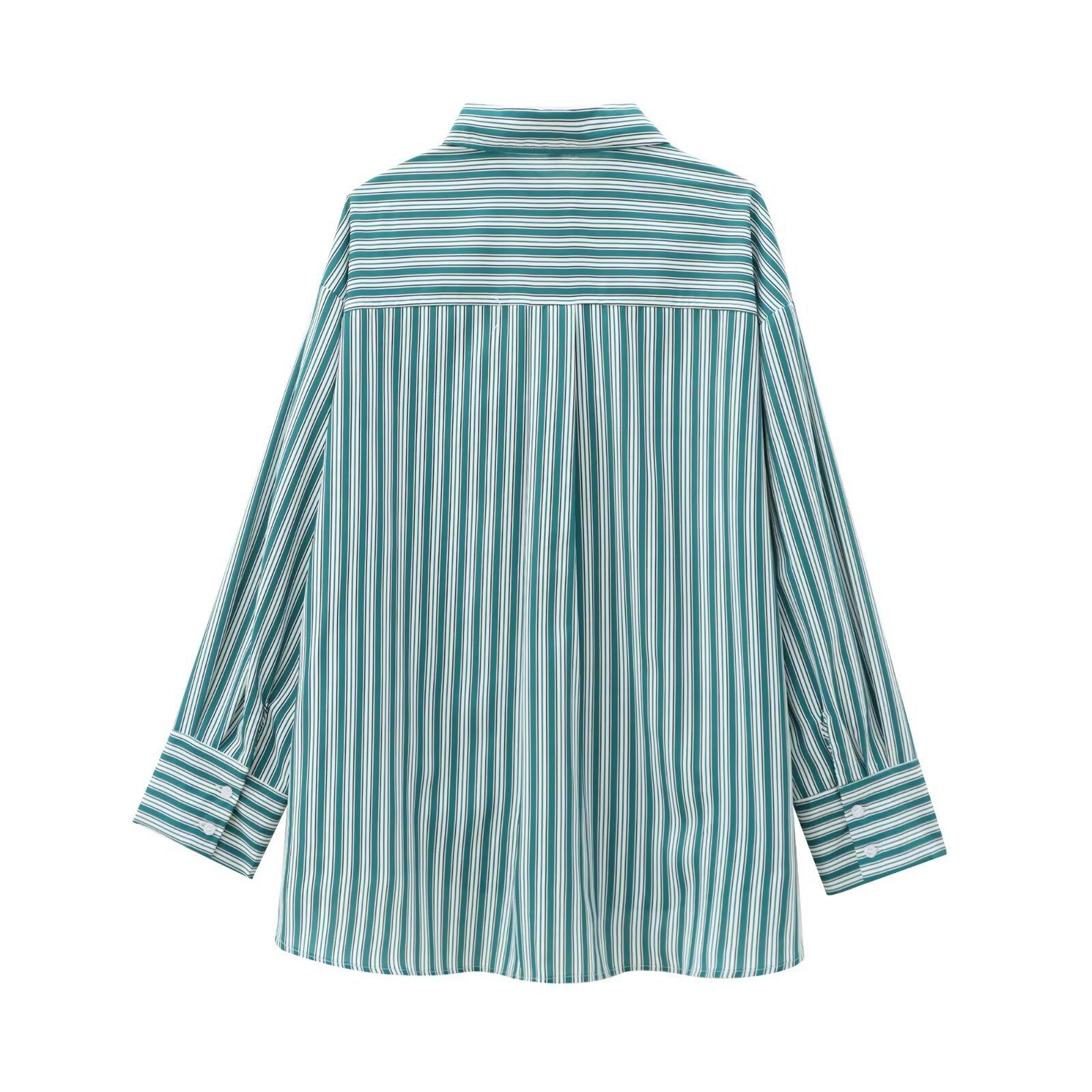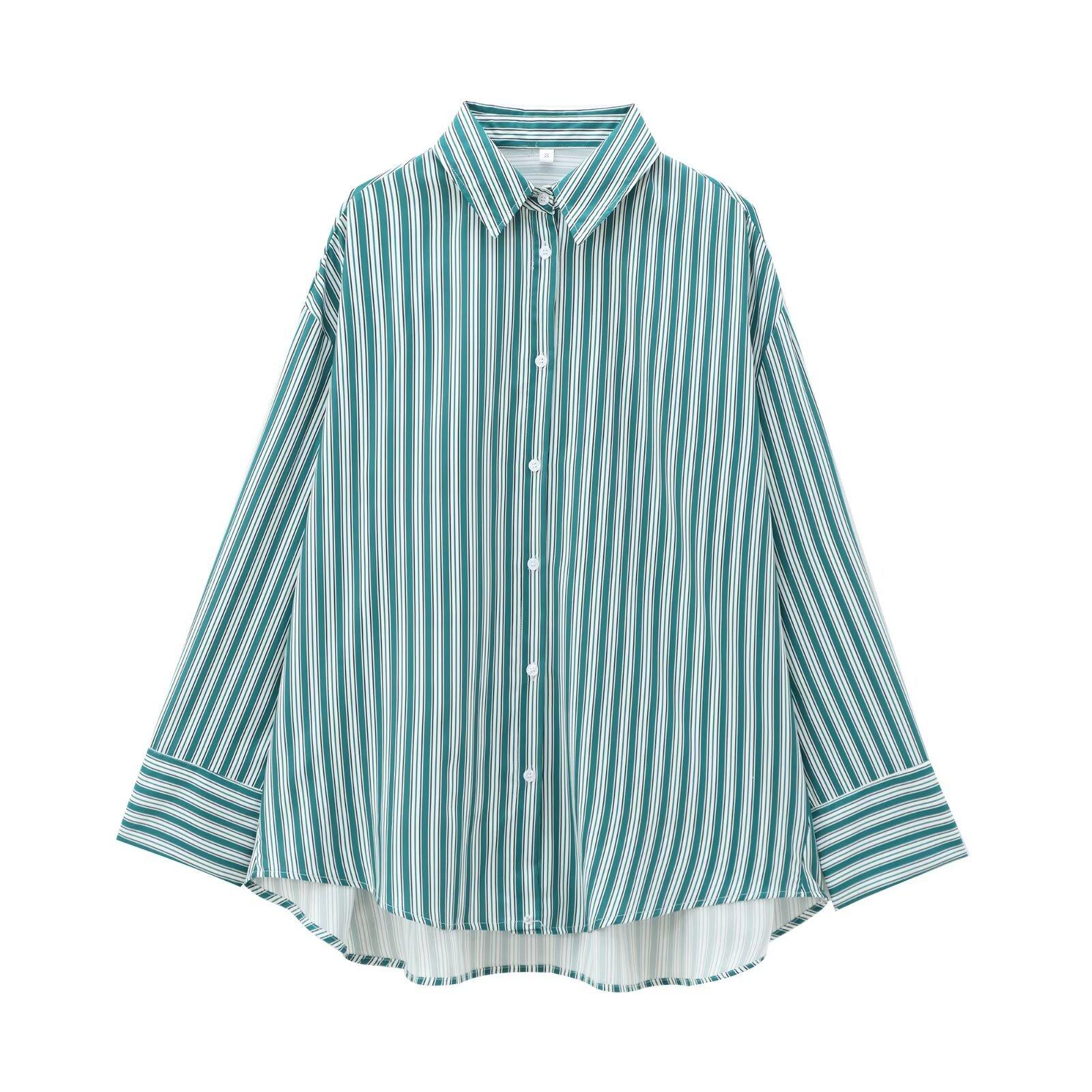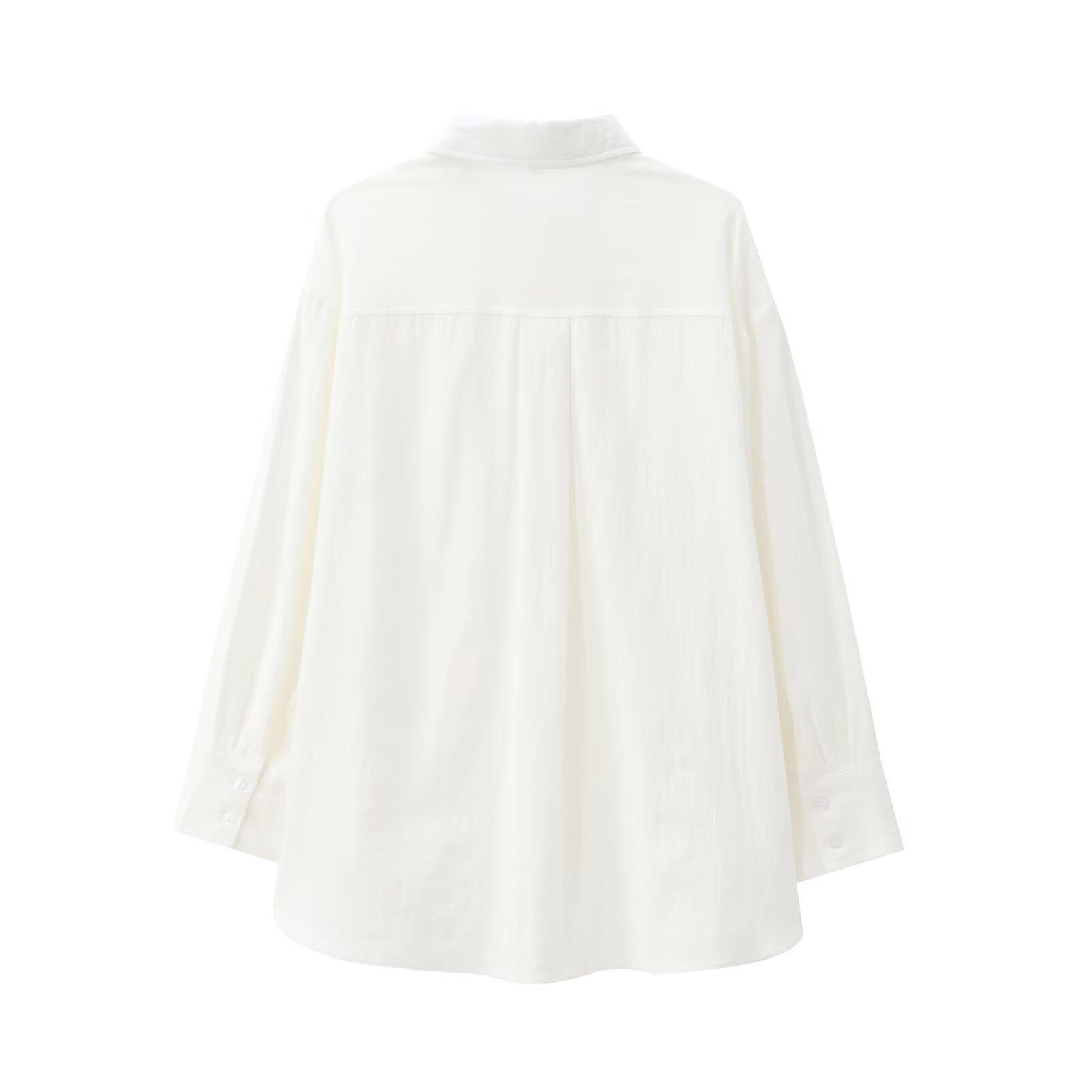 Ropa de Otoño para Mujer Nueva 2024 Estilo Europeo y Americano Moda Simple Tul Algodón Camisa Suelta de Manga Larga 7200001