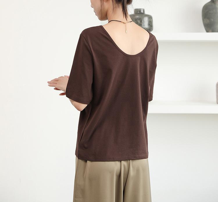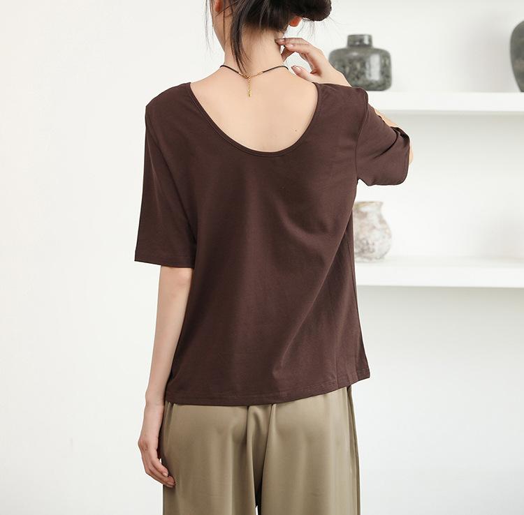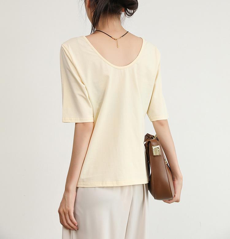 Amazon Verano Caliente Nuevo Diseño de Camiseta de Manga Corta para Mujer Sentido Pequeño Ropa de Hombre Top Grande sin Espalda