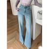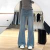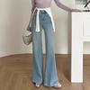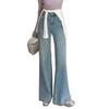 Jeans acampanados micro de cintura alta azul claro para mujer 2025 Verano Nuevo estilo Delgados Sueltos para cuerpo en forma de pera