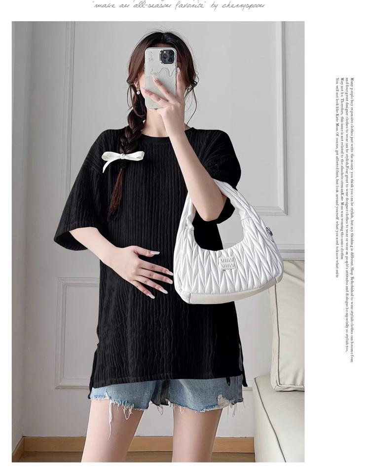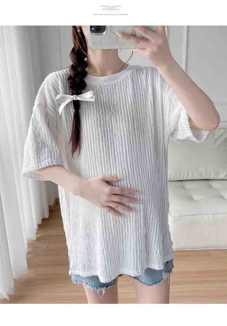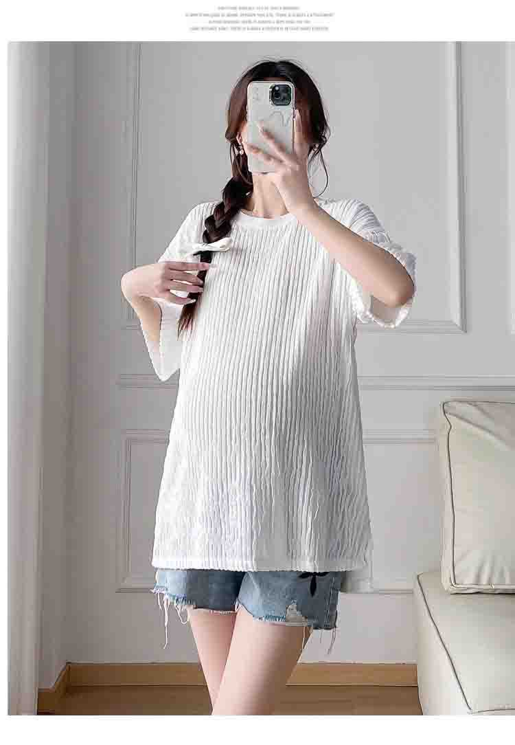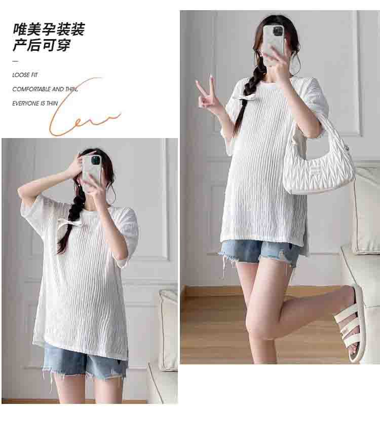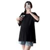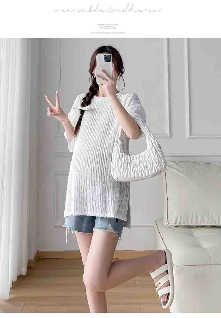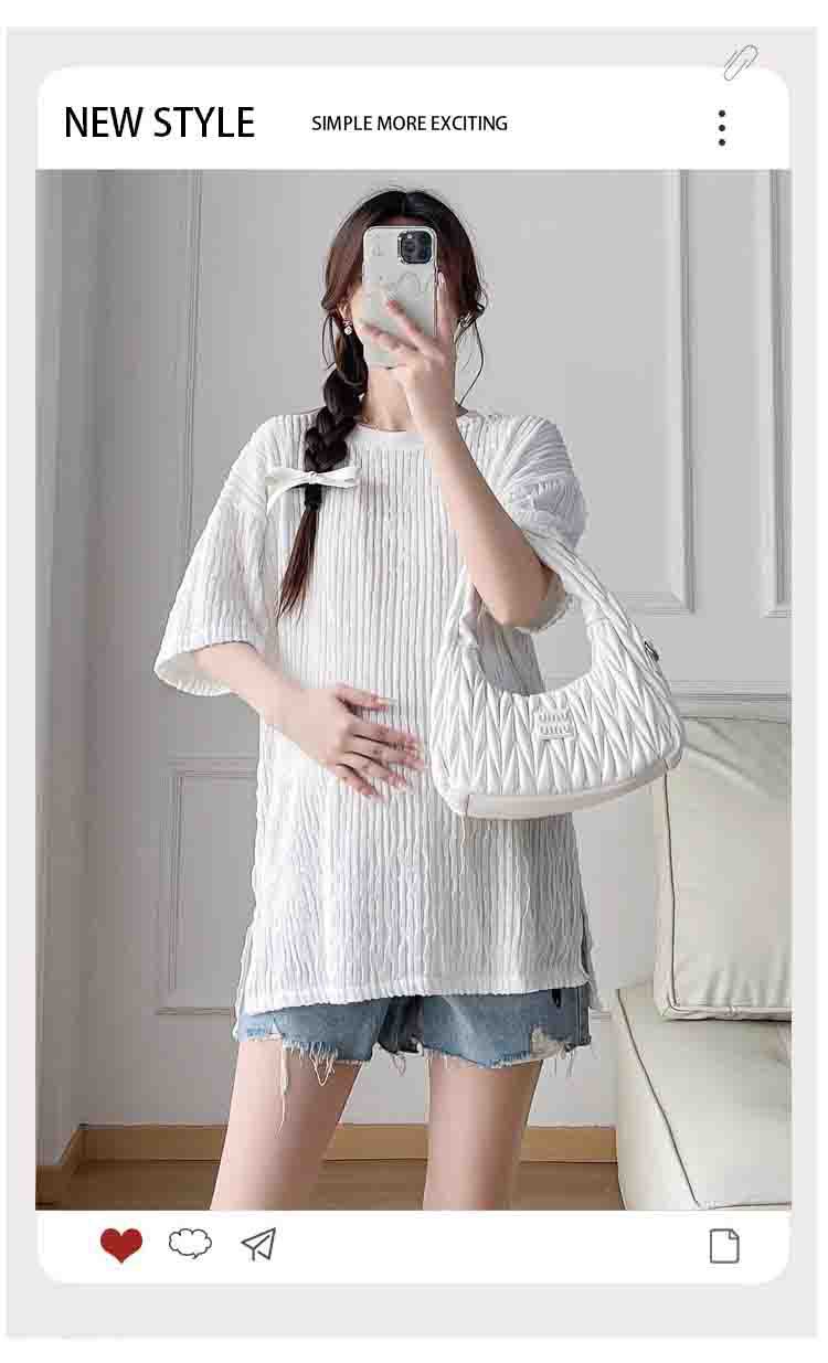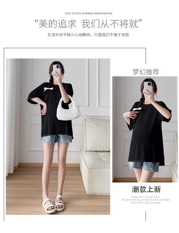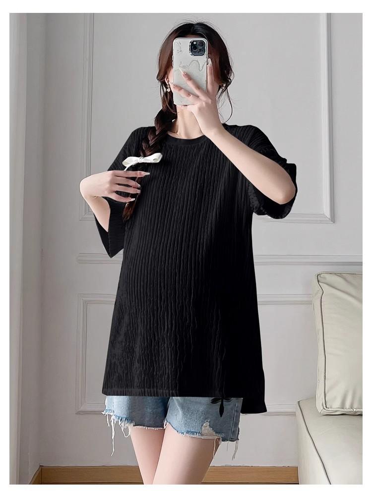 Talla Grande Maternidad Verano Delgada Holgada Manga Corta Camiseta Moda Look Adelgazante Estilo Relajado Color Puro Abertura Top de Maternidad