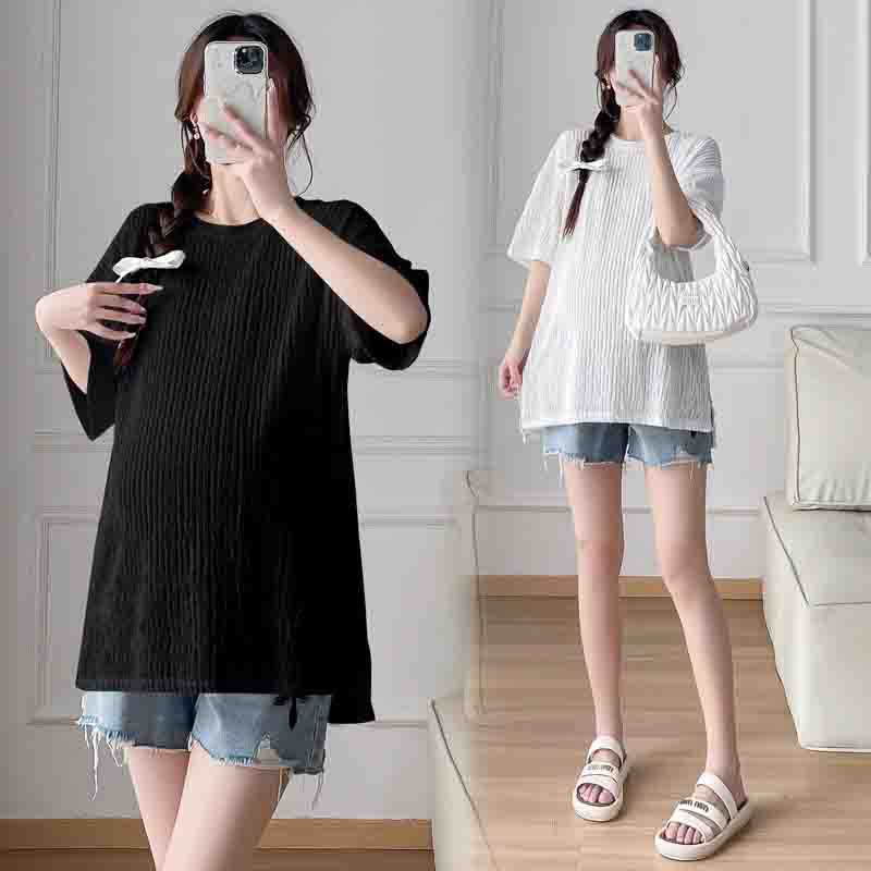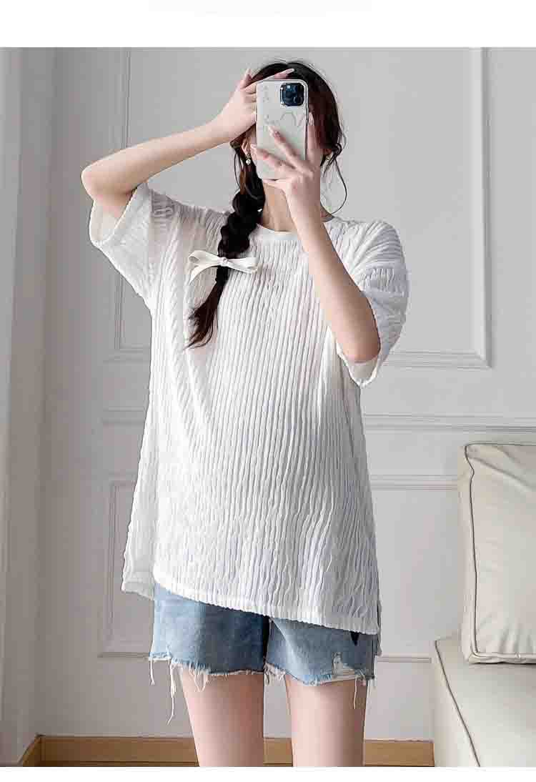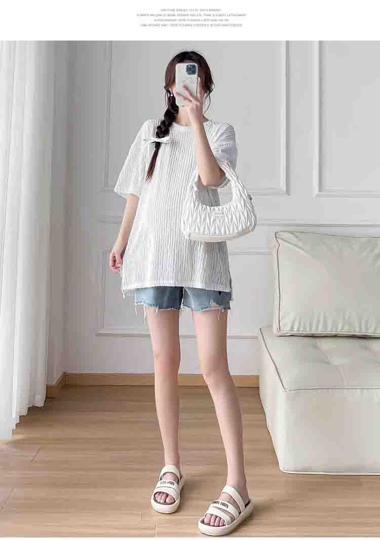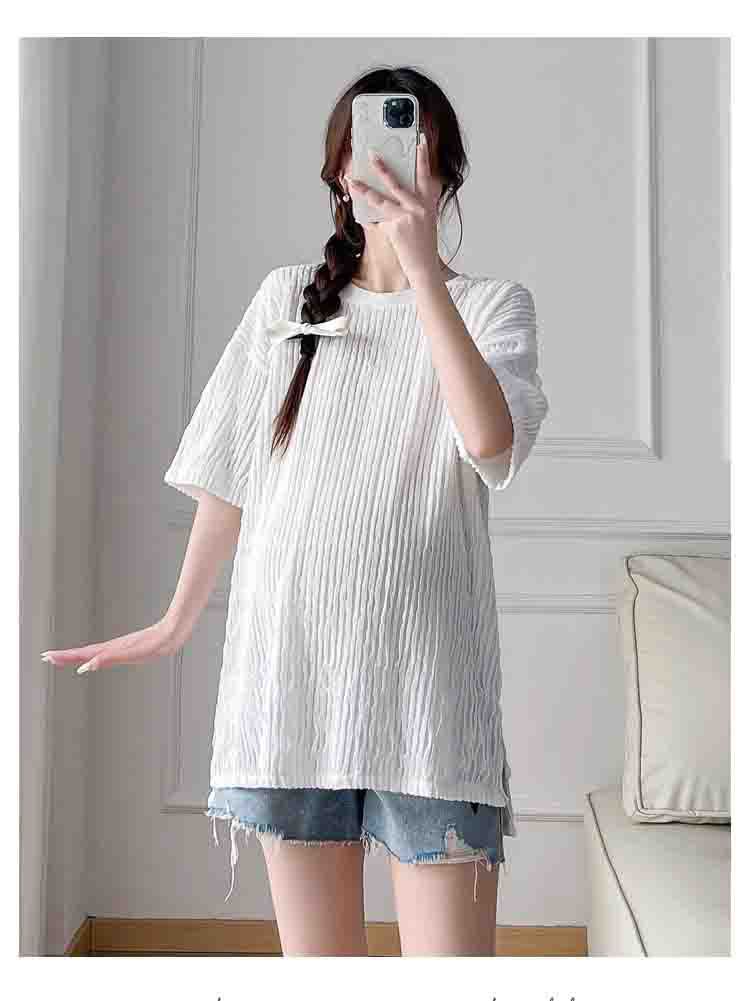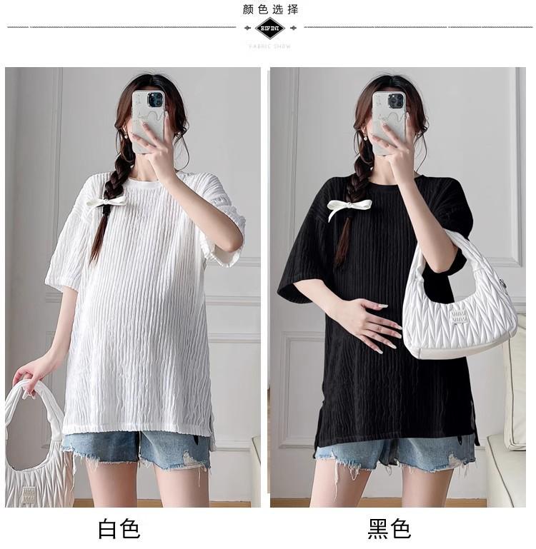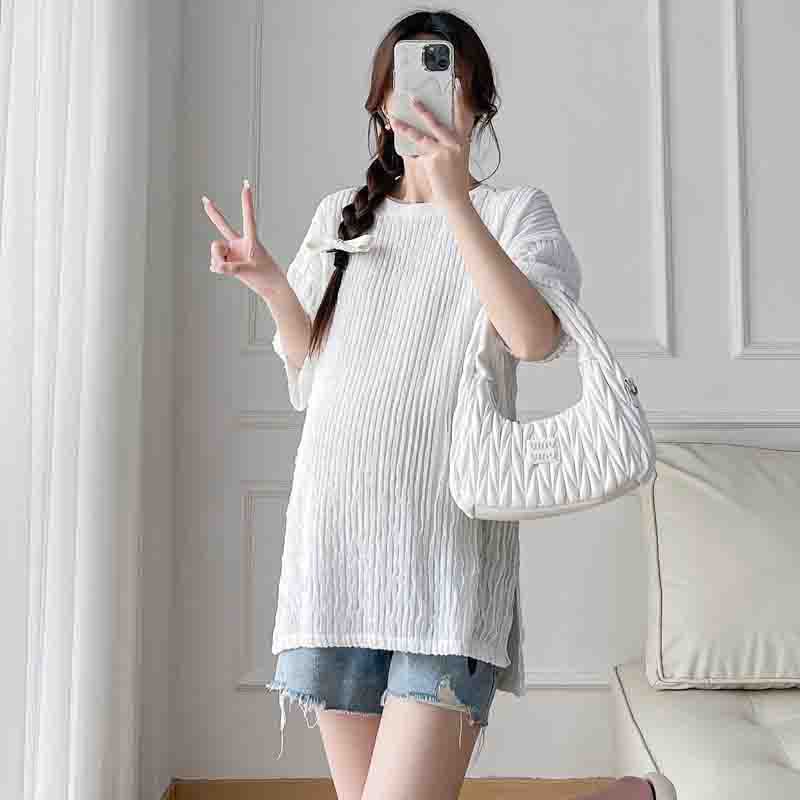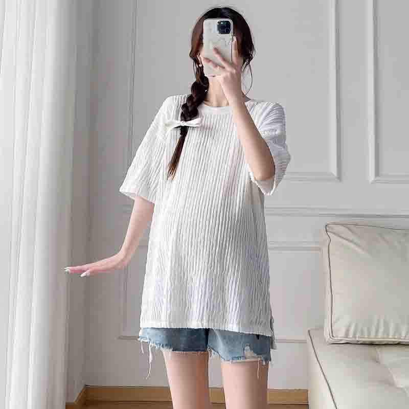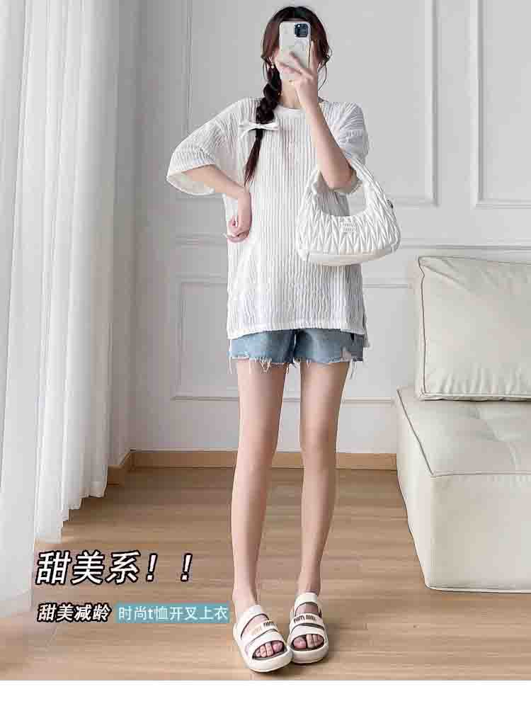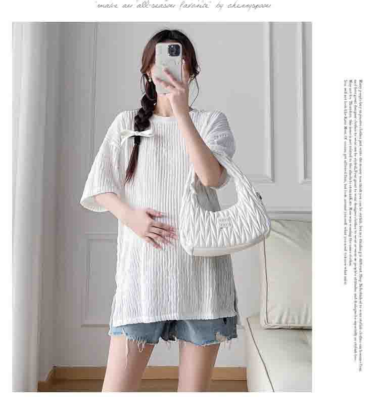 Talla Grande Maternidad Verano Delgada Holgada Manga Corta Camiseta Moda Look Adelgazante Estilo Relajado Color Puro Abertura Top de Maternidad