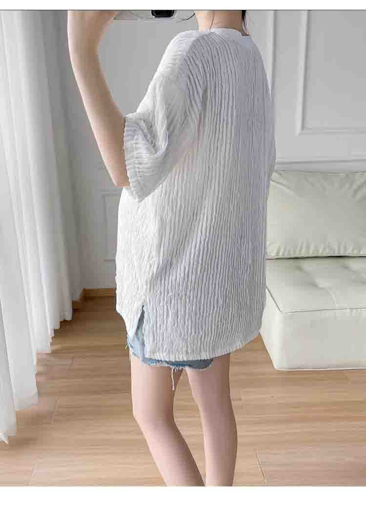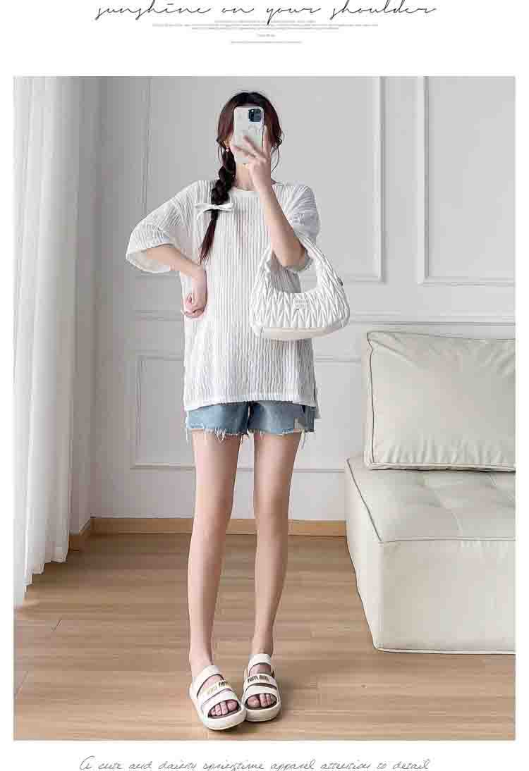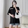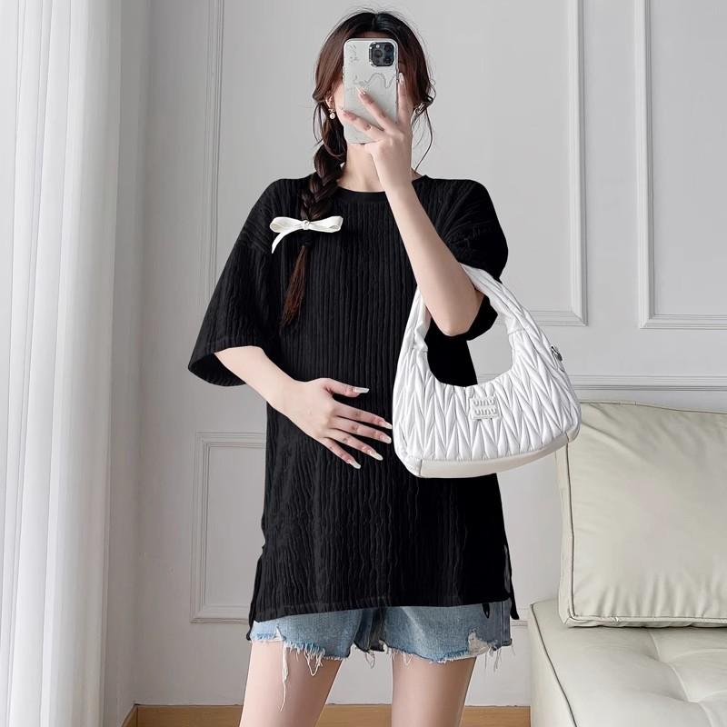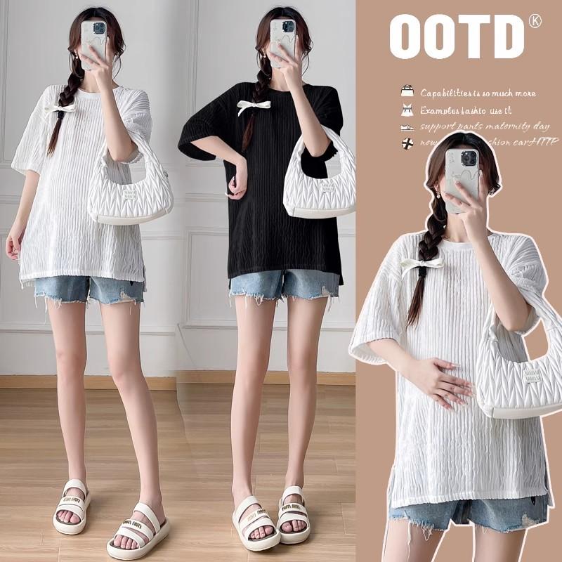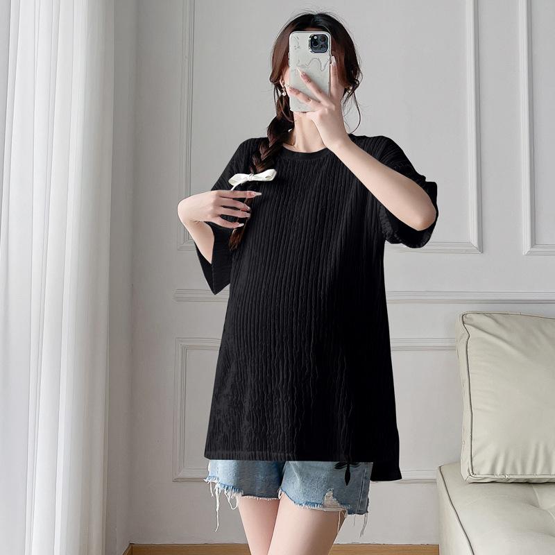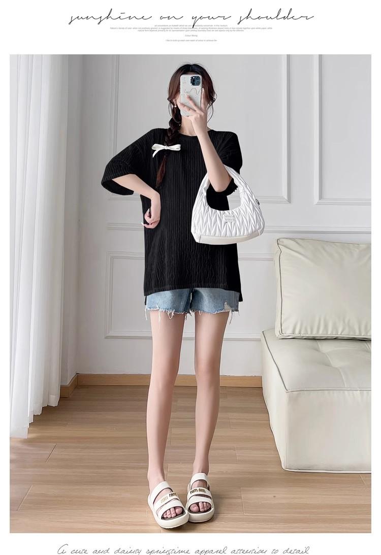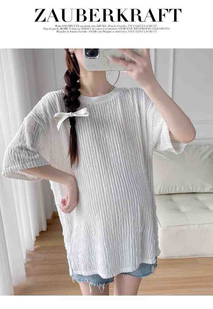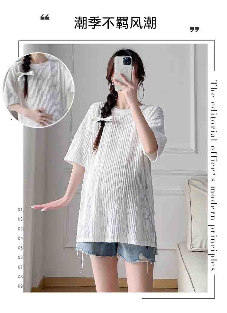 Talla Grande Maternidad Verano Delgada Holgada Manga Corta Camiseta Moda Look Adelgazante Estilo Relajado Color Puro Abertura Top de Maternidad
