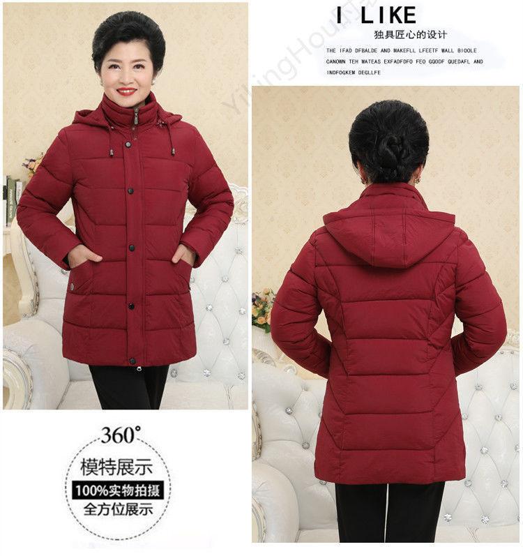 Chamarras de plumón para mujeres de mediana edad y ancianas, Ropa de madre de talla grande, Ropa de longitud media para ancianas, Chamarras de invierno engrosadas para abuela, Chamarras para mujer