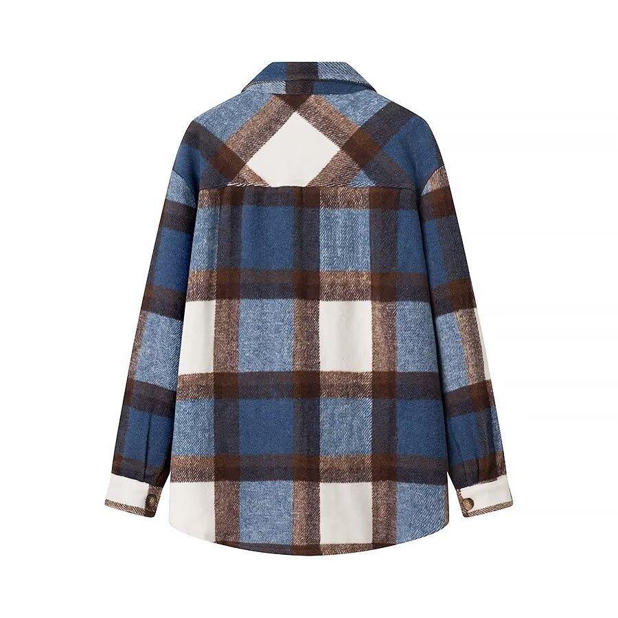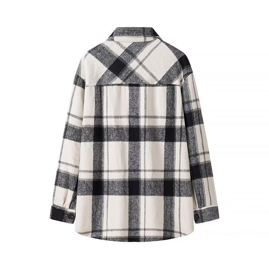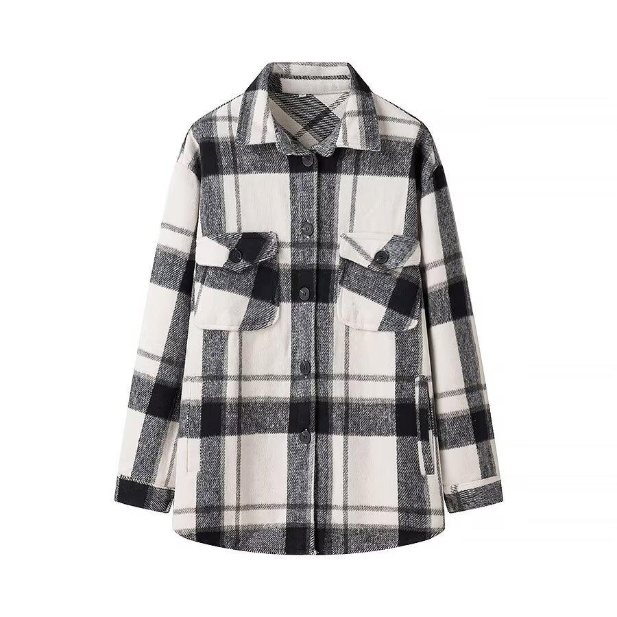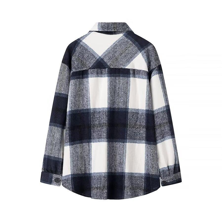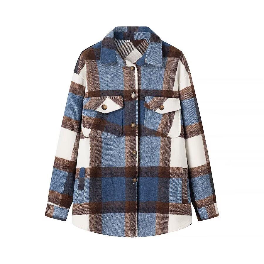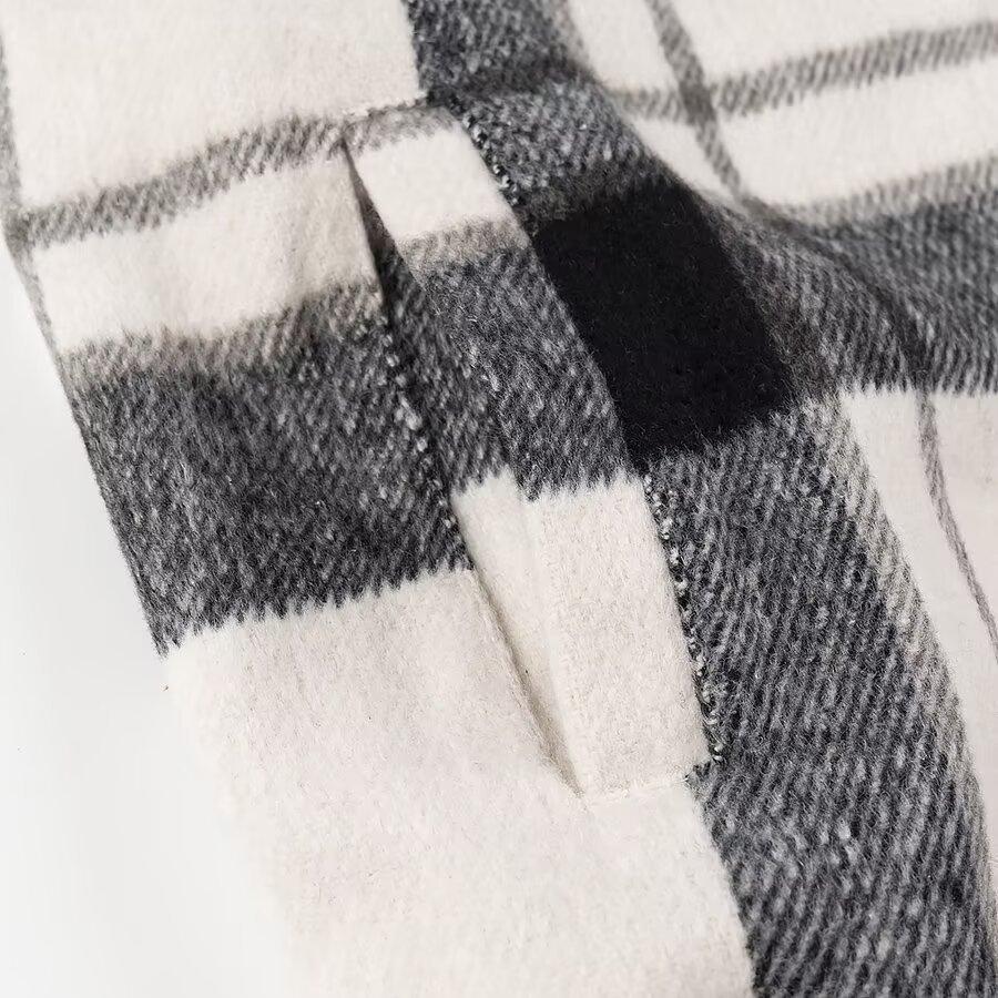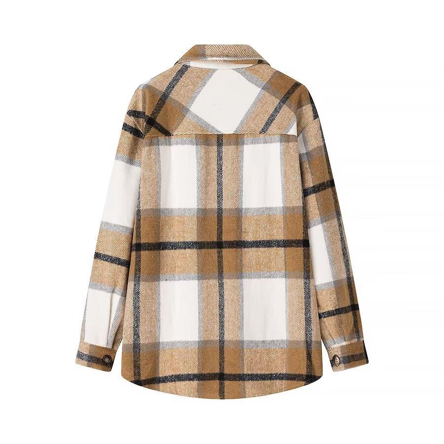 Ropa de Invierno para Mujer 2024 Nueva Estilo Europeo y Americano Moda Sencilla Versátil Suelta Chaqueta de Lana a Cuadros
