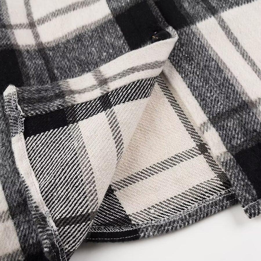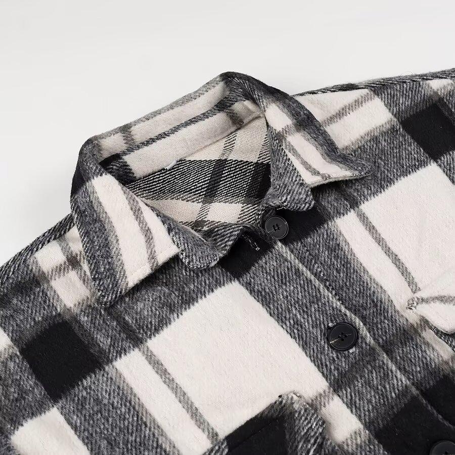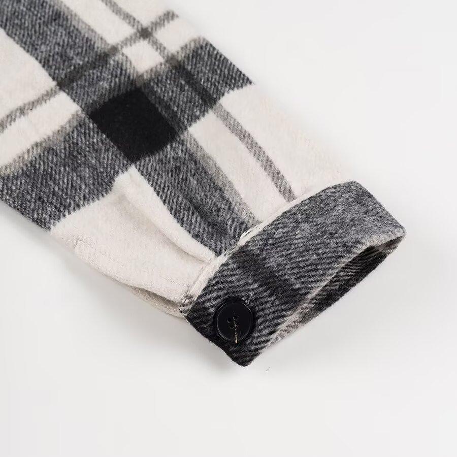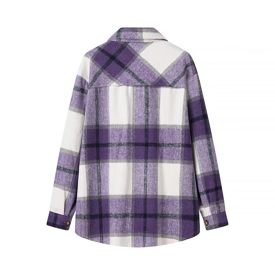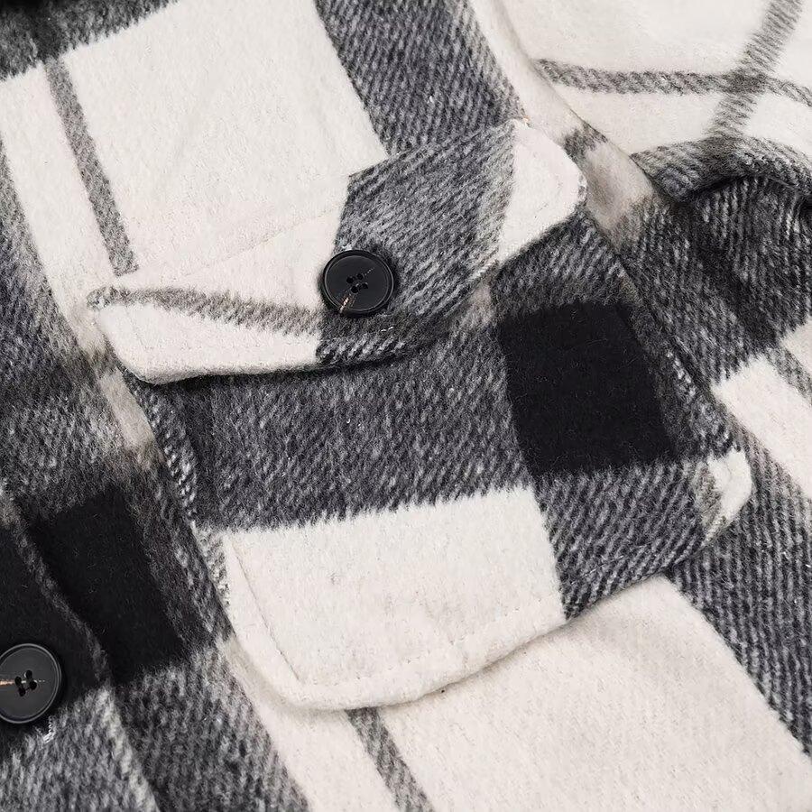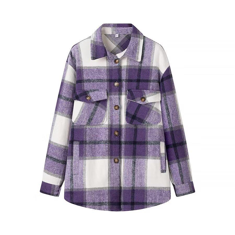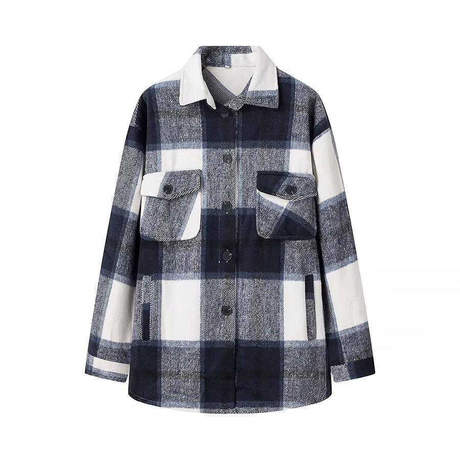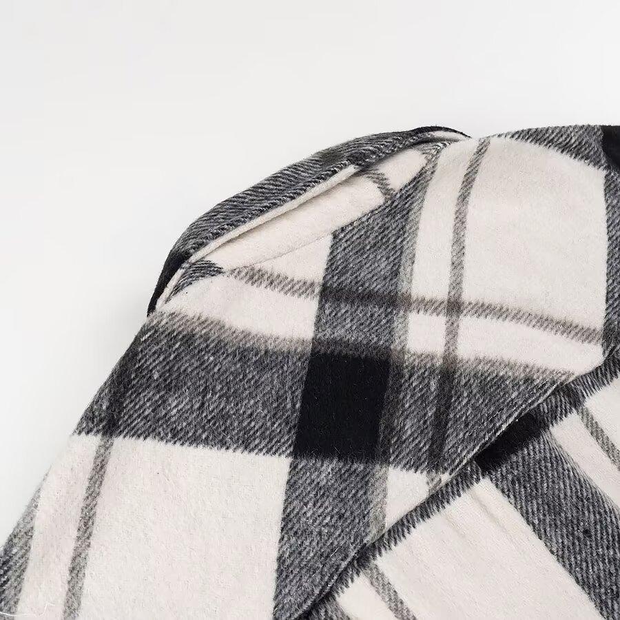 Ropa de Invierno para Mujer 2024 Nueva Estilo Europeo y Americano Moda Sencilla Versátil Suelta Chaqueta de Lana a Cuadros