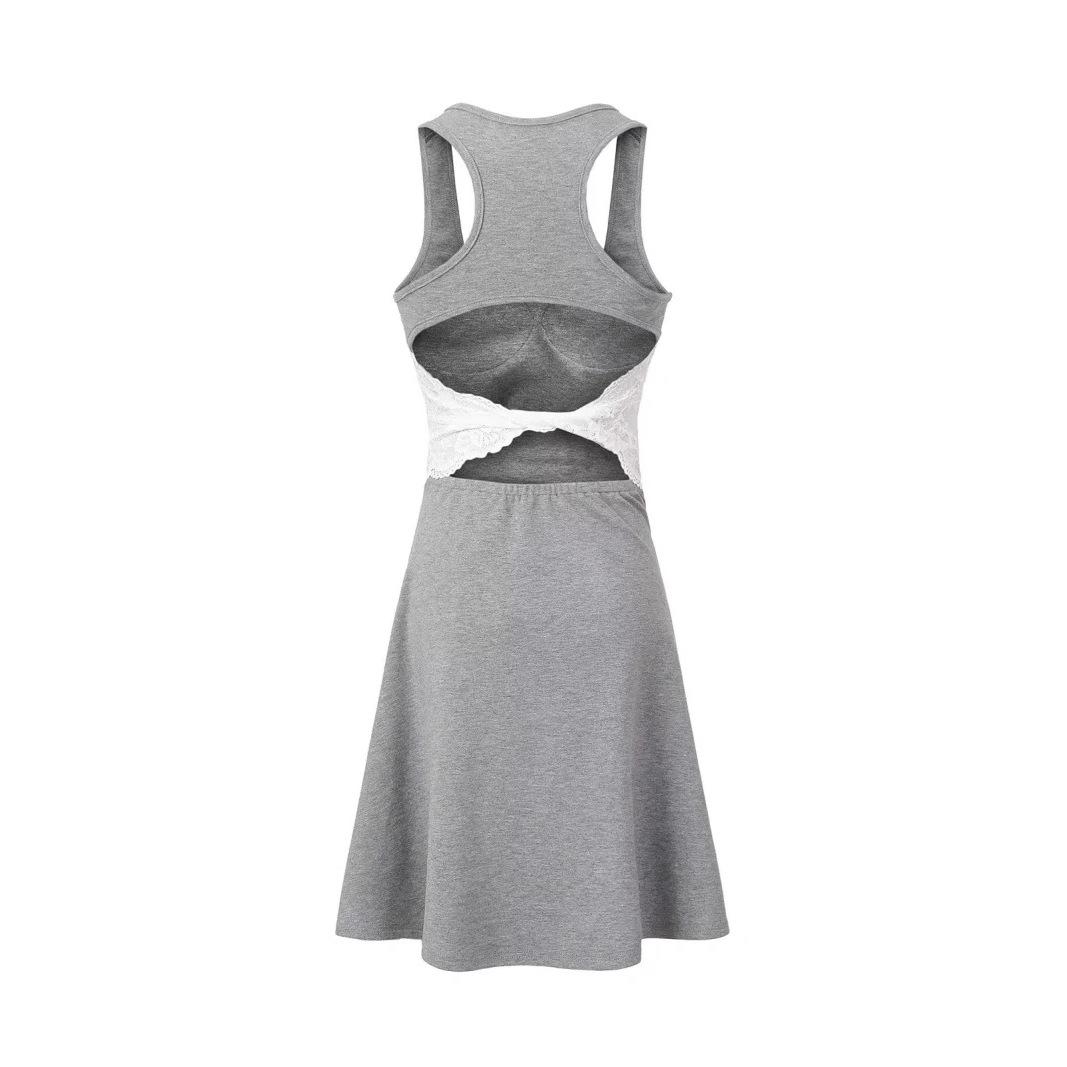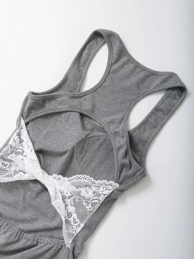 Vestido de verano sin mangas con cuello cuadrado, espalda descubierta y costuras de encaje calado sexy de Spice Girl, vestido corto ajustado con relleno y almohadilla para el pecho
