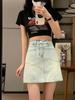 Falda de mezclilla de color claro para chica guapa para mujer 2025 verano nuevo estilo cintura alta adelgazante versátil falda corta ceñida a las caderas