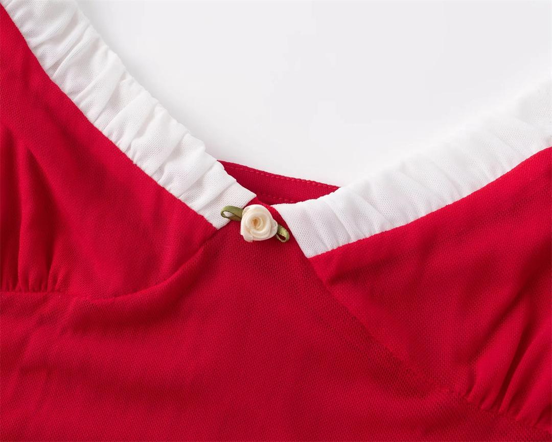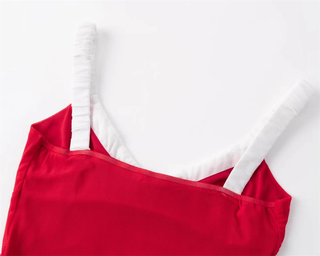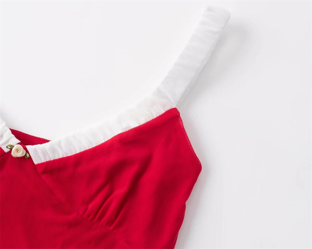 Diseño cuello en V combinación de colores pecho vestido de flores pequeñas sexy cintura delgada cadera cola de pez vestido de tirantes