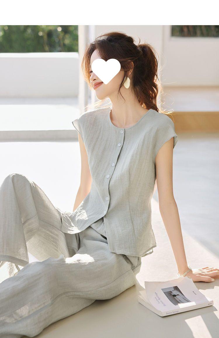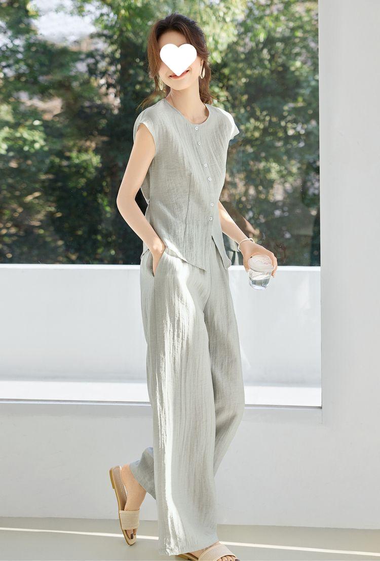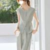 2025 Nuevo Verano Estilo Coreano Moda Camiseta sin Mangas Top Traje Pantalones Casuales Holgados Conjunto de Dos Piezas para Mujer