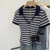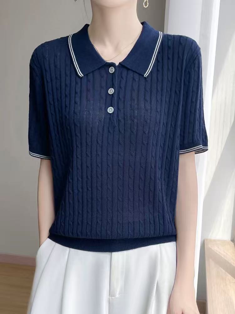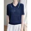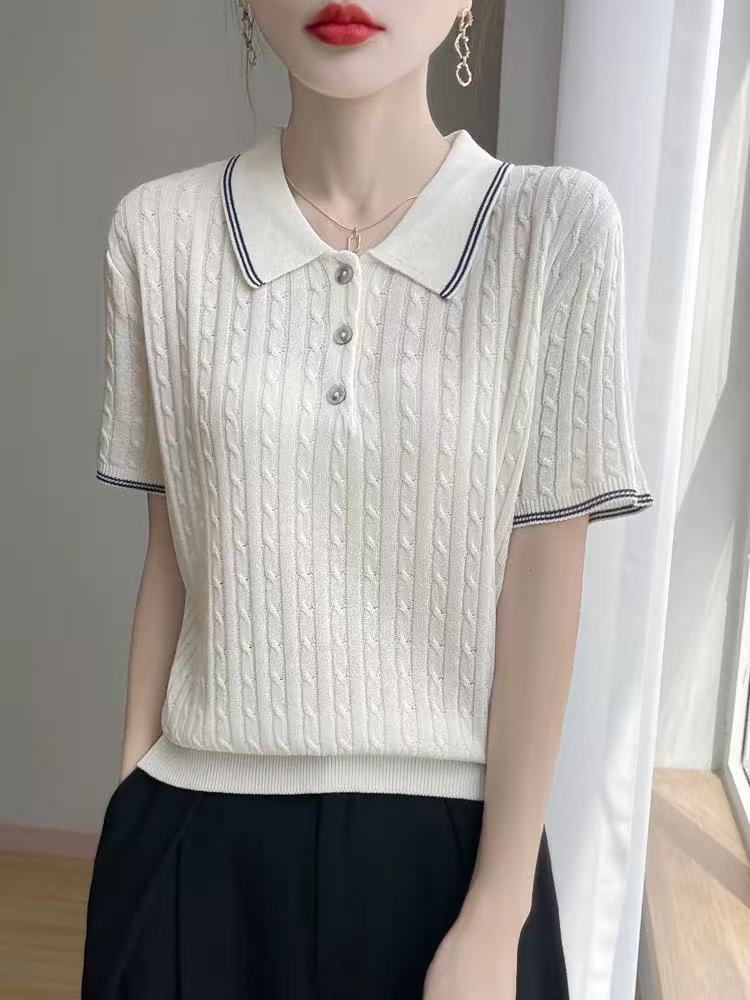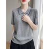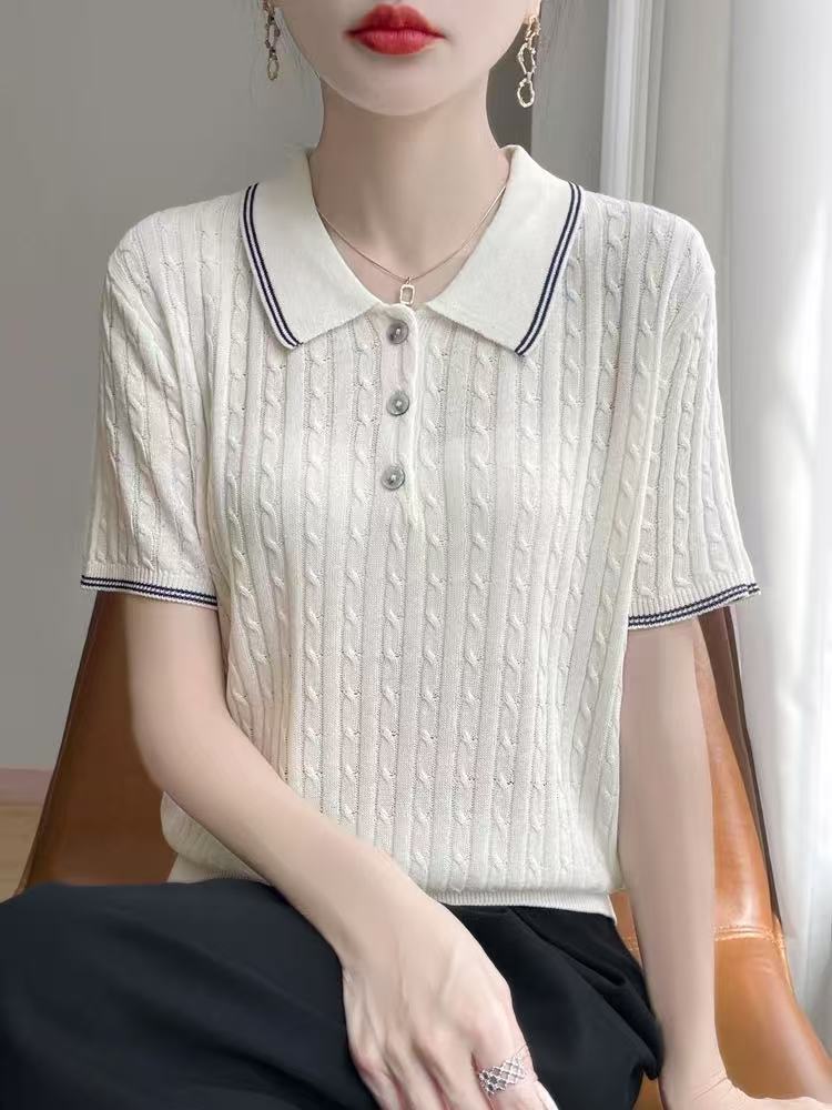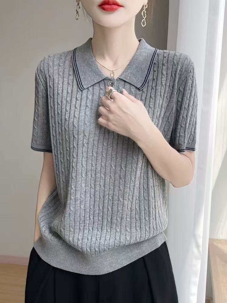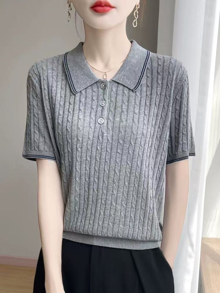 Moda de Verano 2025 Camiseta Versátil de Manga Corta con Cuello Mao para Mujer Diseño Casual Adelgazante Tencel Cuello Polo Top Delgado