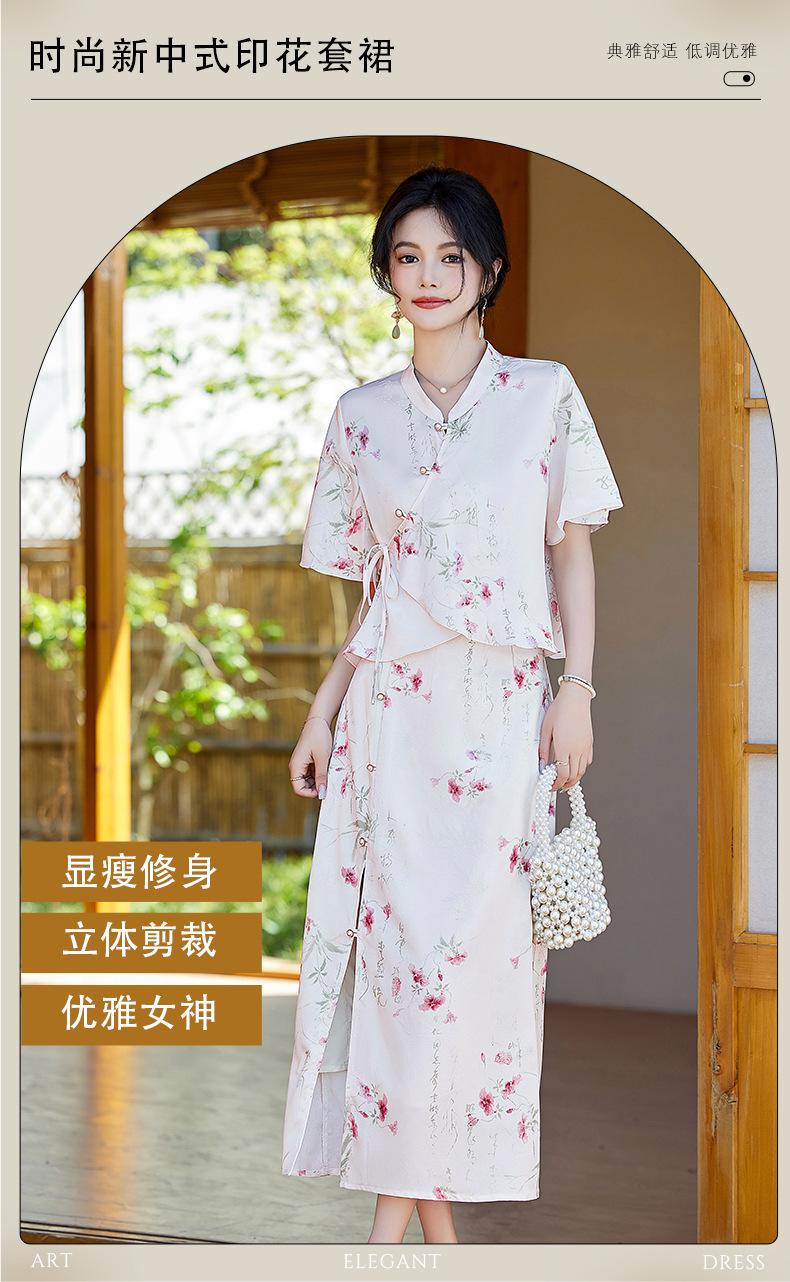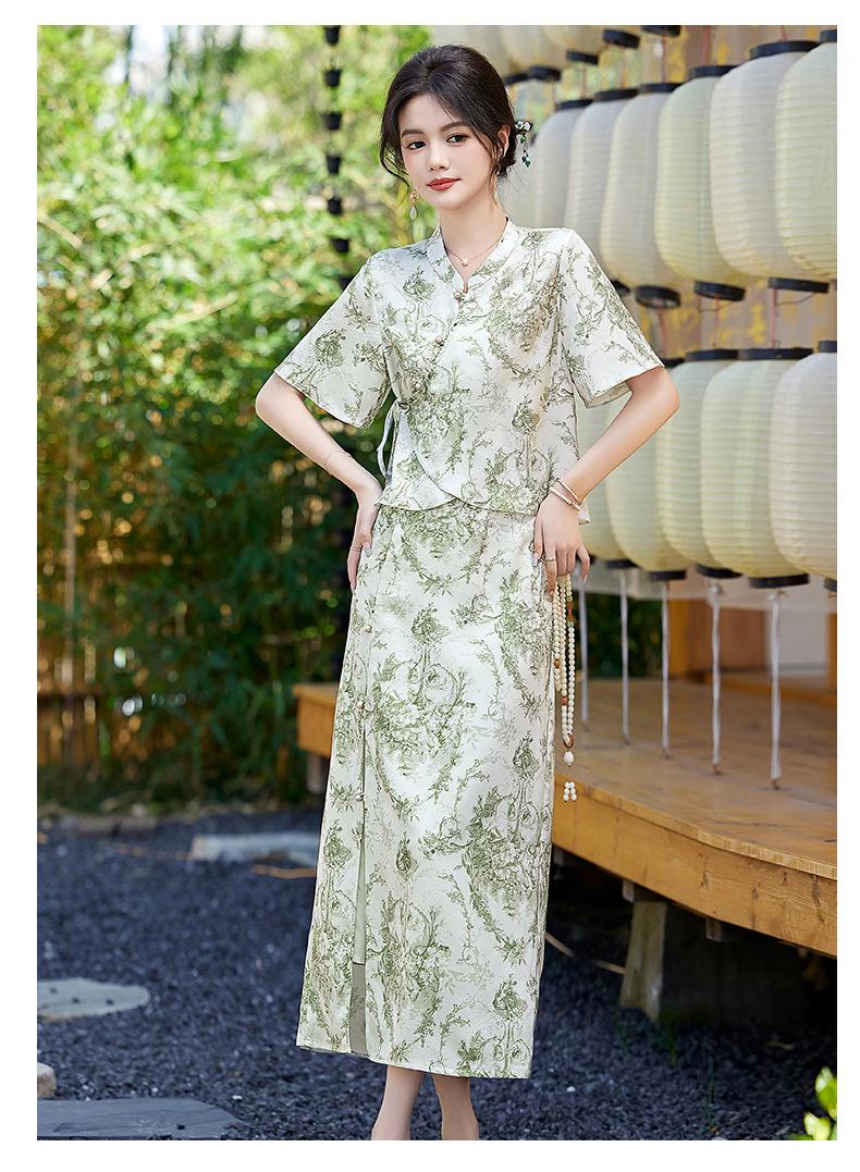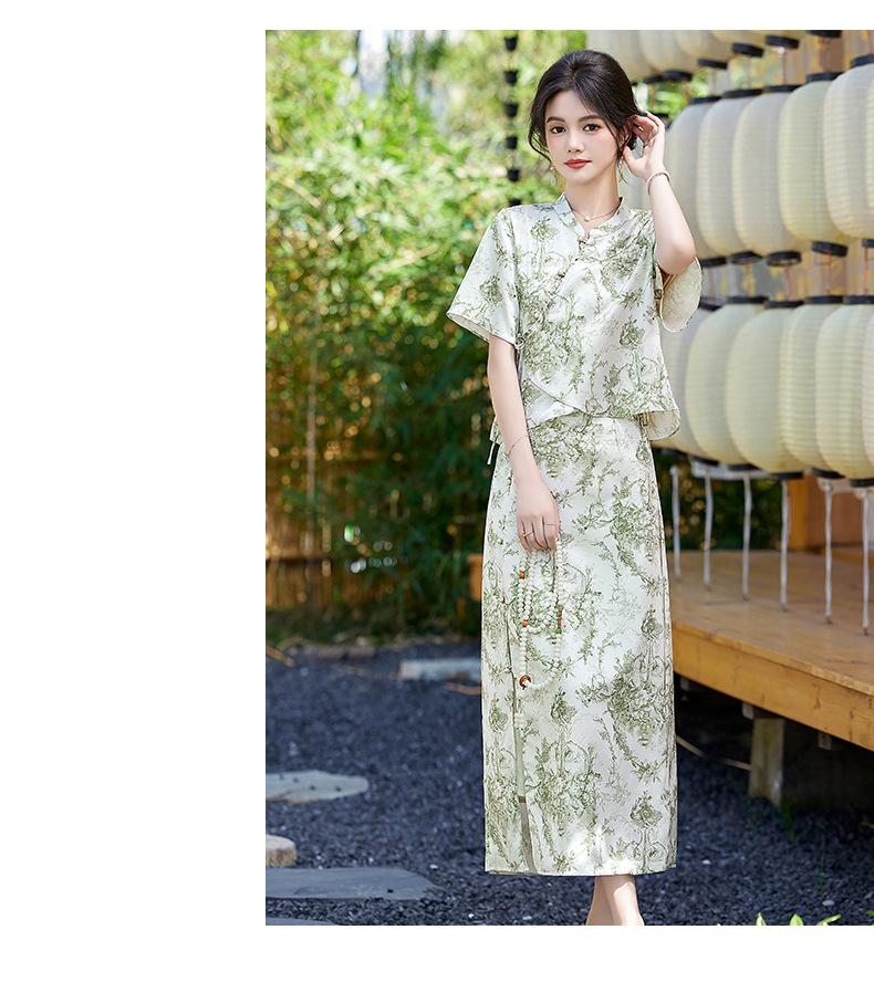 Traje Falda de Estilo Chino Nuevo de Verano para Mujer 2025 Verano Nuevo Reductor de Edad Cómodo Moda Ligero Conjunto de Dos Piezas
