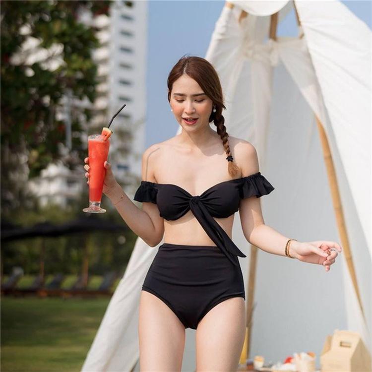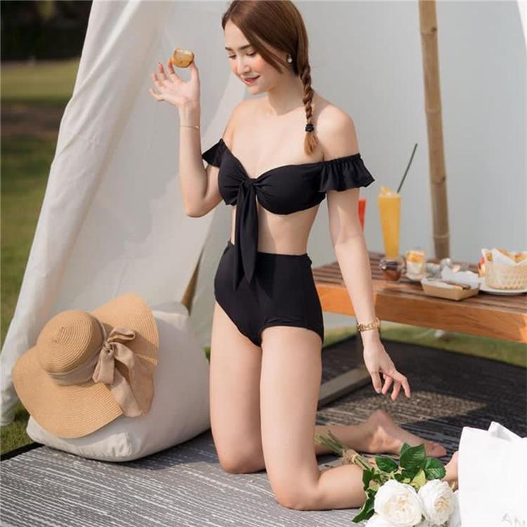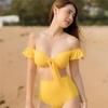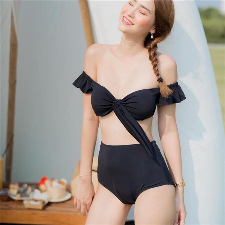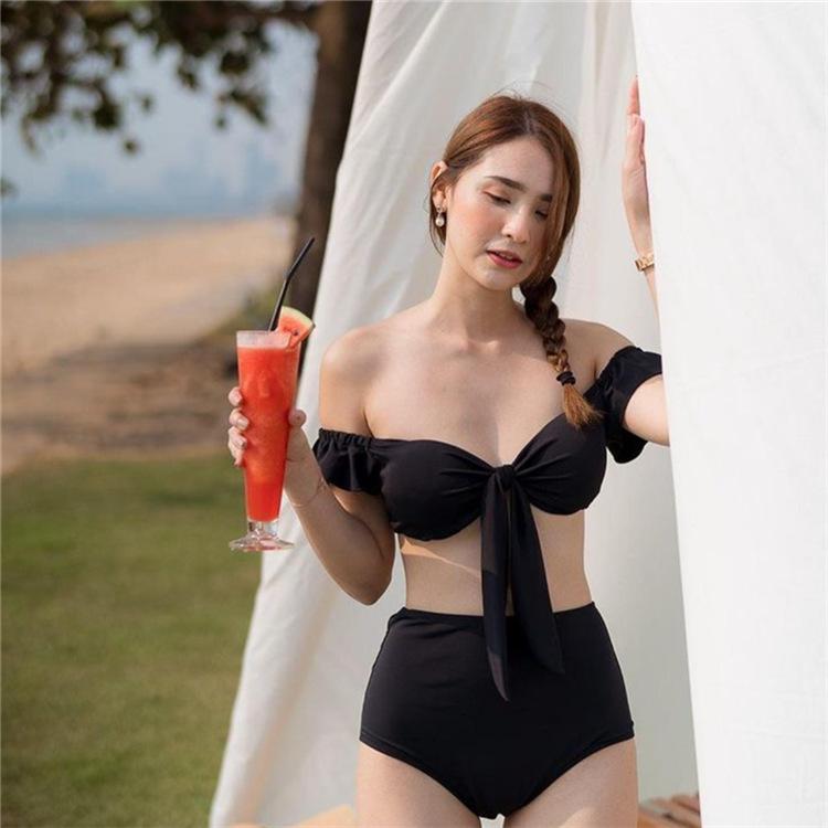 Traje de baño cintura alta bikini sexy traje de baño cubre vientre delgado viento ins coreano pequeño fresco color sólido traje de baño al por mayor