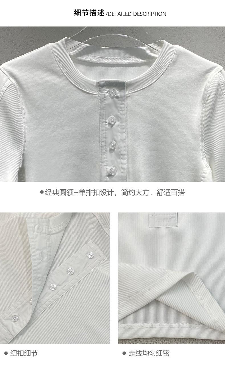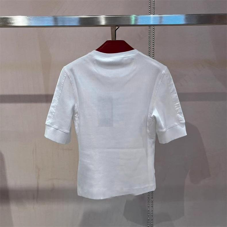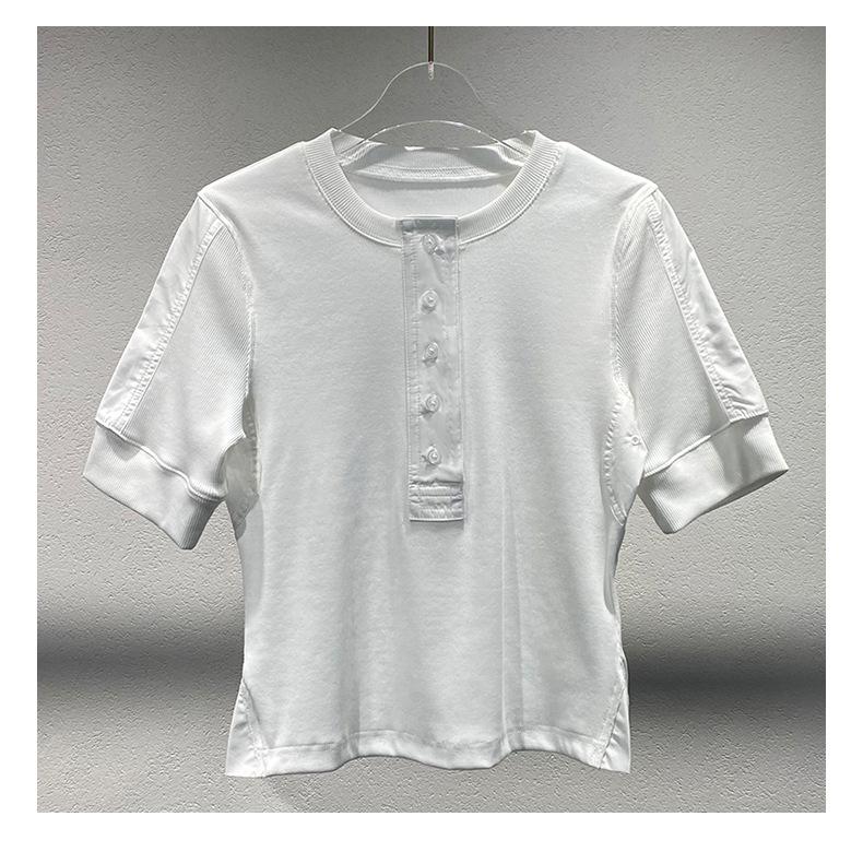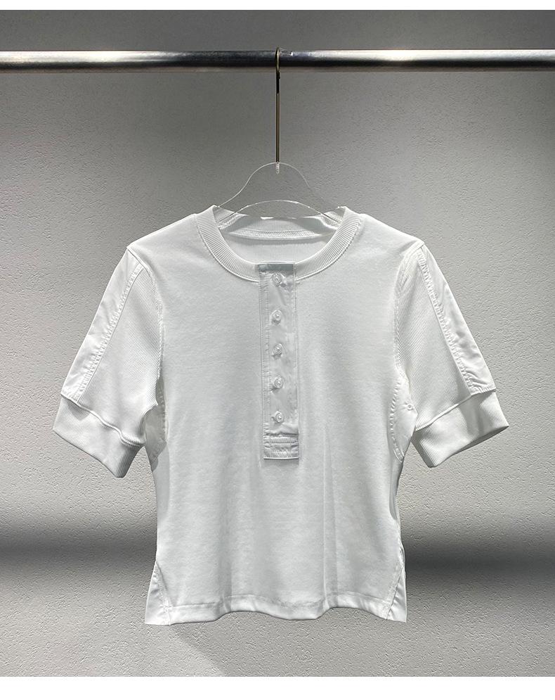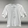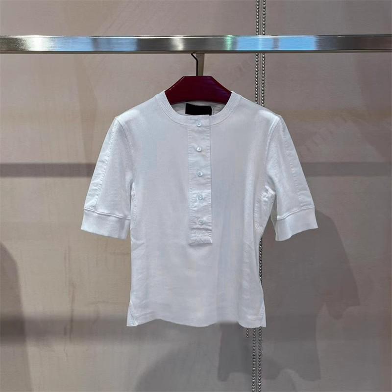 Ahora 2025 Nuevo Estilo de Verano Blanco de Punto de Manga Corta con Botonadura Sencilla Cuello Redondo Slim Versátil Top para Mujer