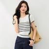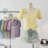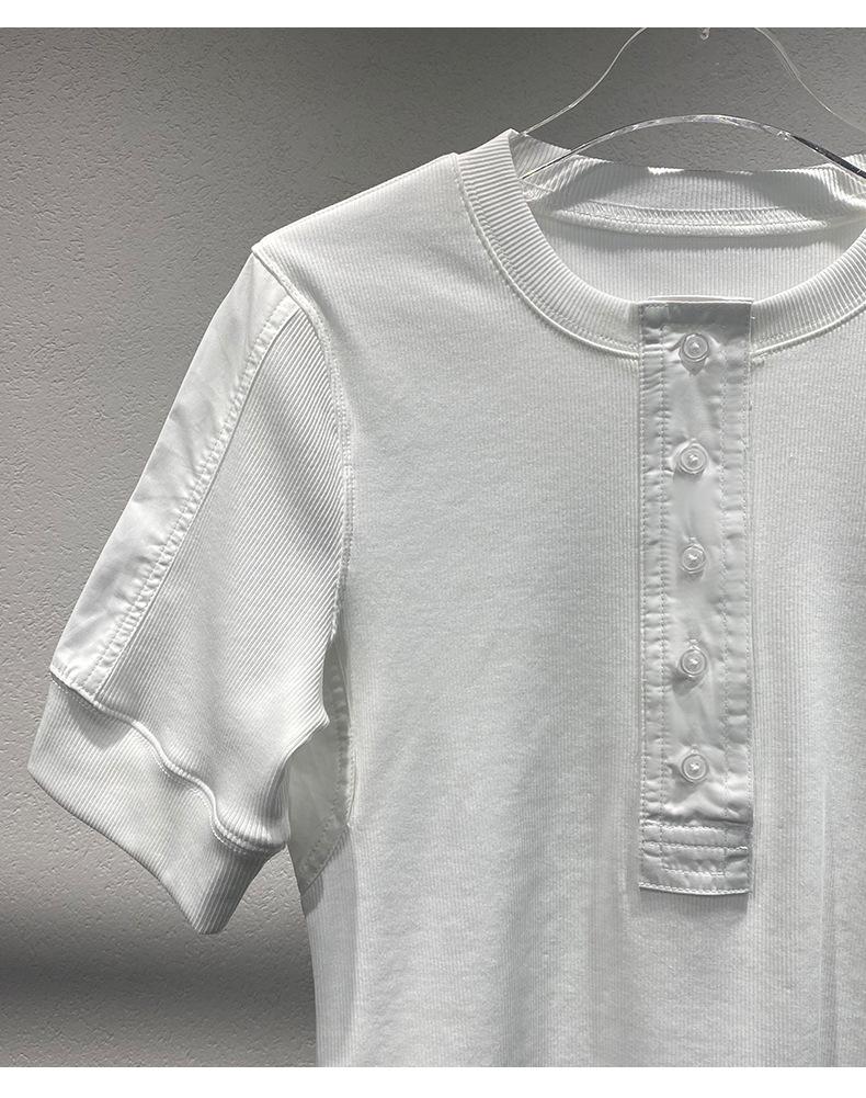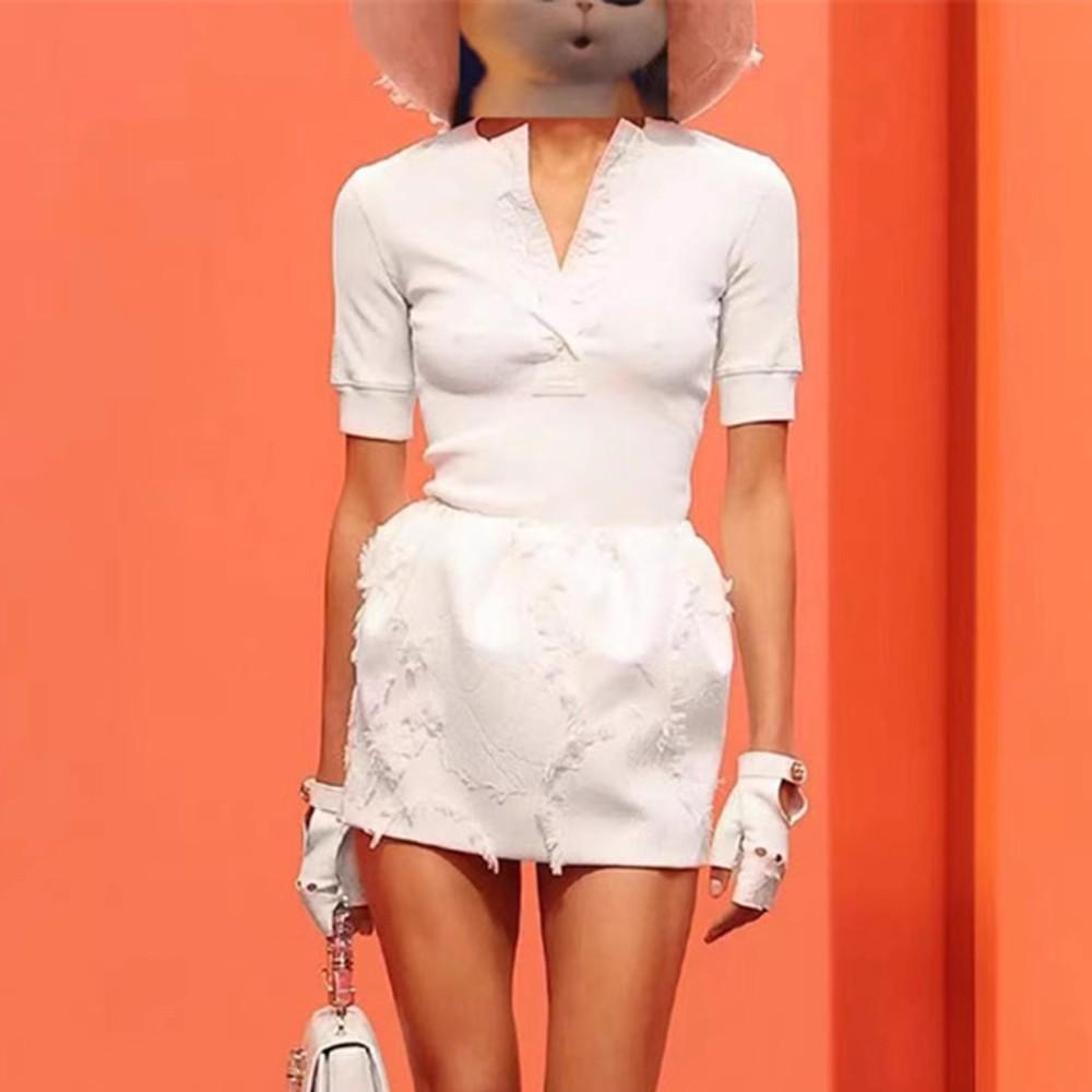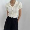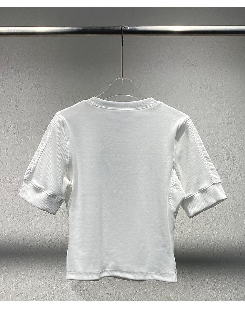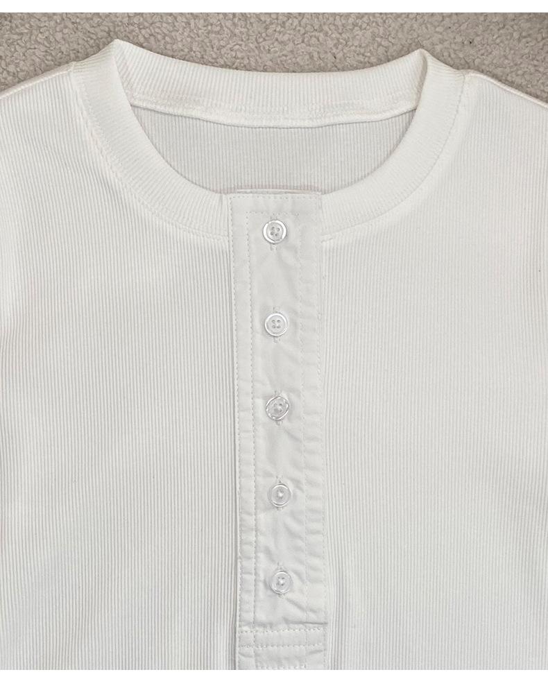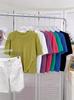 Ahora 2025 Nuevo Estilo de Verano Blanco de Punto de Manga Corta con Botonadura Sencilla Cuello Redondo Slim Versátil Top para Mujer