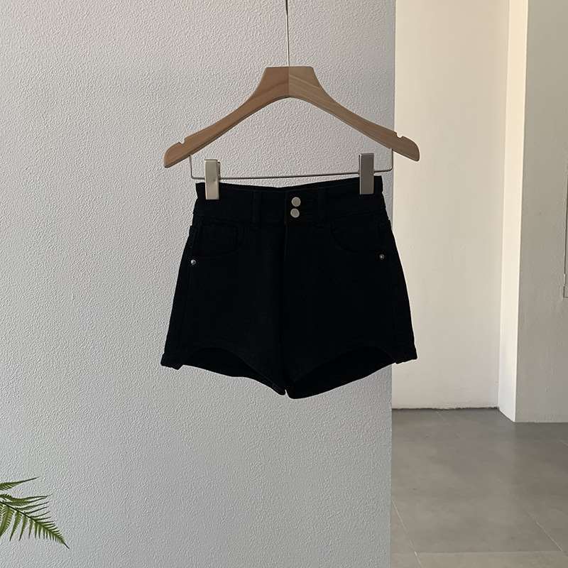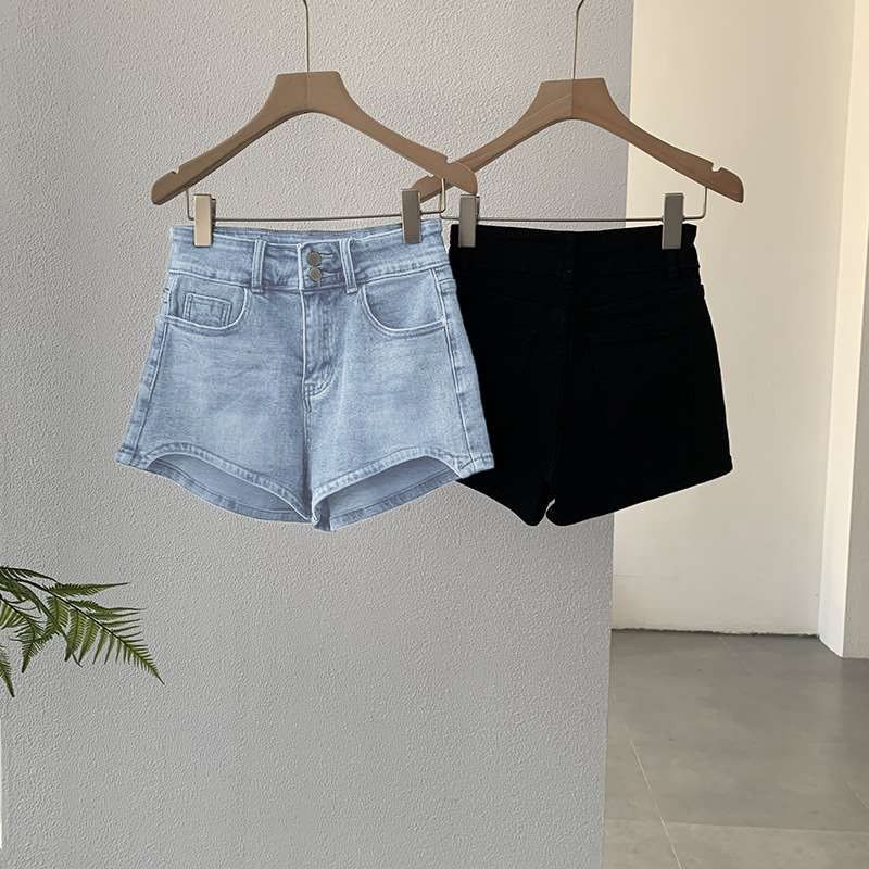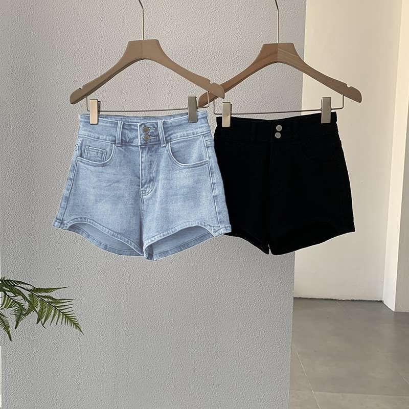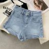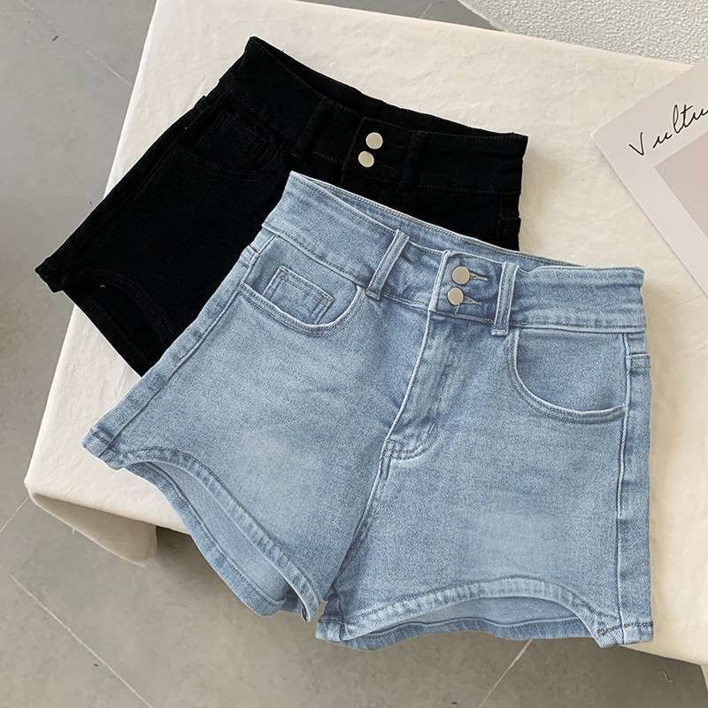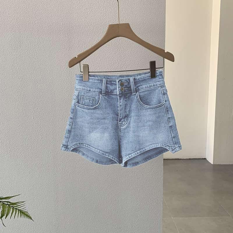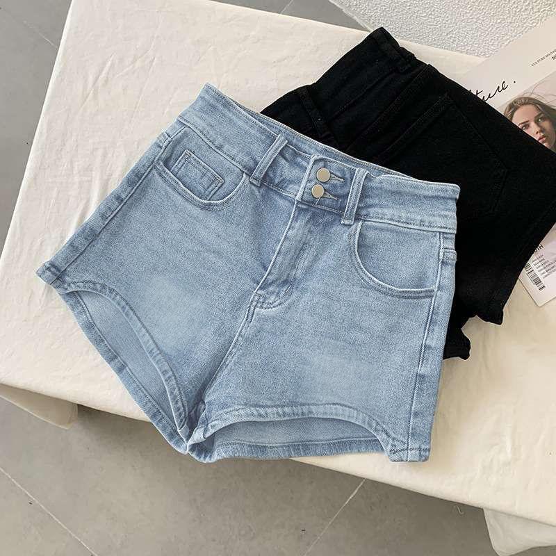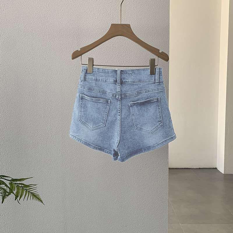 Shorts de Mezclilla Slim de Cintura Alta Curvos para Mujer 2025 Azul Claro Alargadores de Piernas Hot Girl Delgados Verano Pantalones Cortos Elásticos