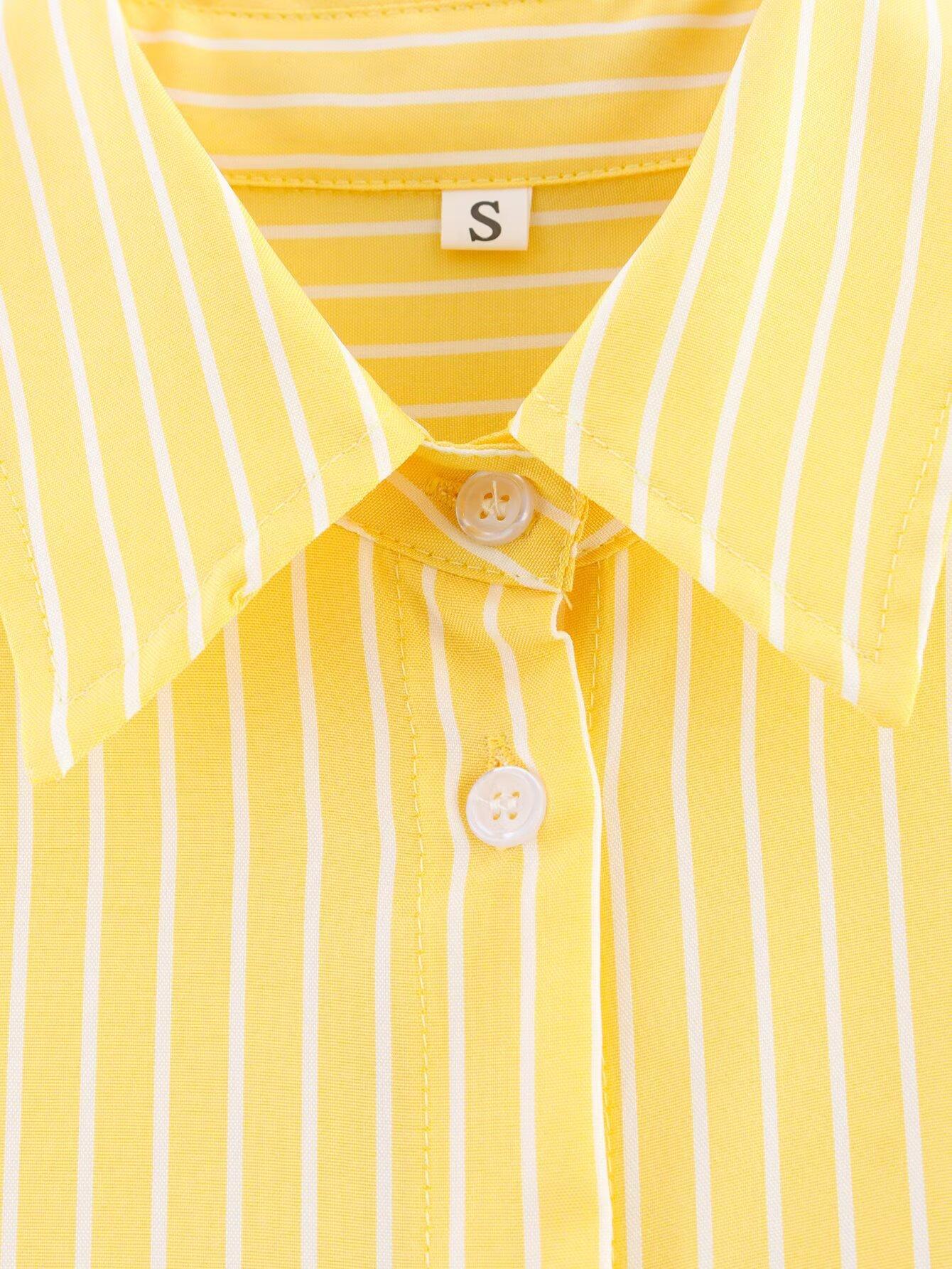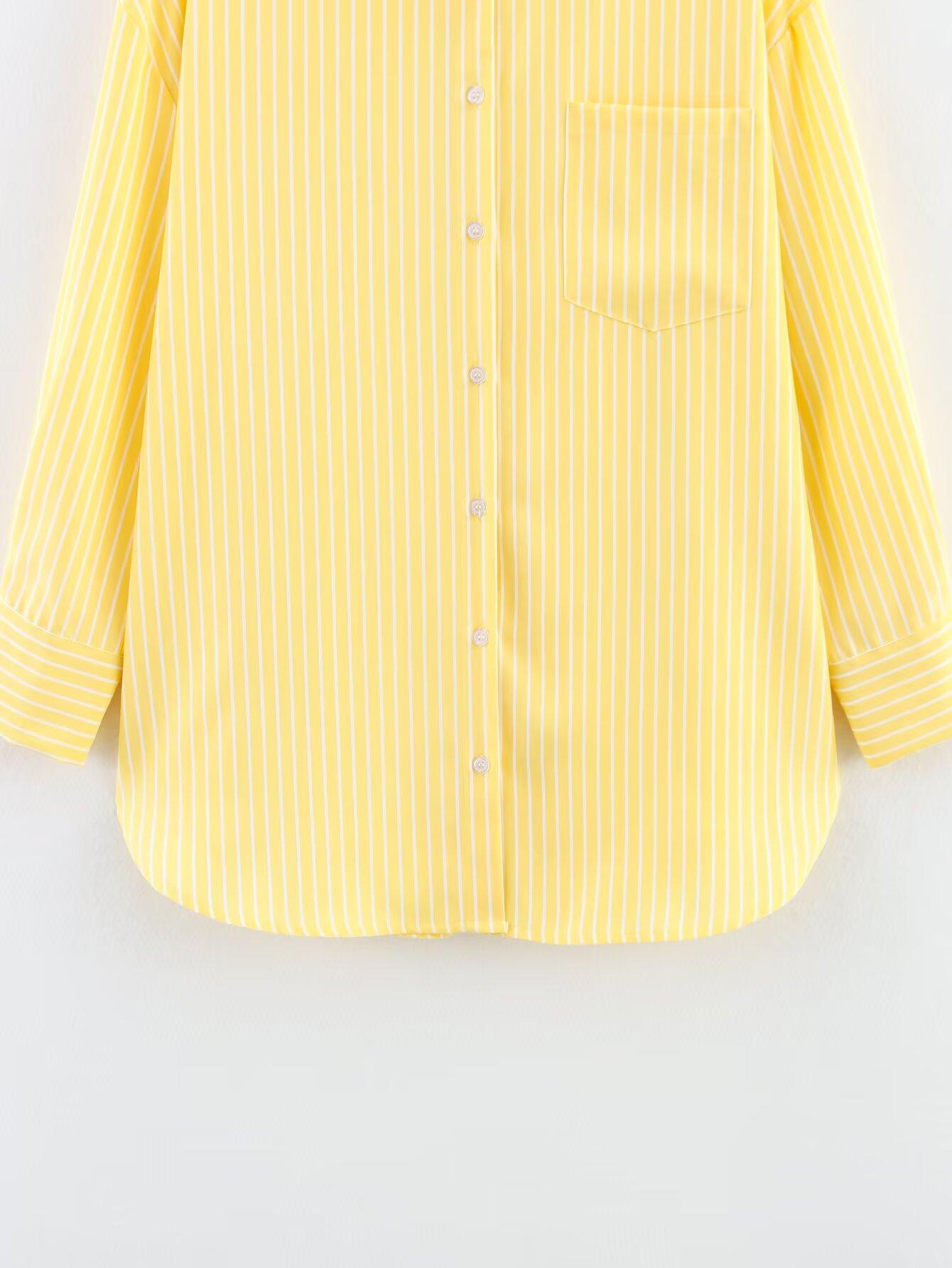 Z Venta al por Mayor Transfronteriza Verano 2025 Nueva Camisa Casual de Rayas Holgada con Solapa de Estilo Europeo y Americano de Manga Larga