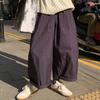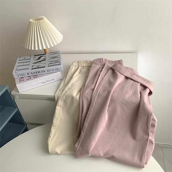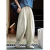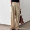 Pantalones de pierna ancha de leche con cintura alta y abullonados