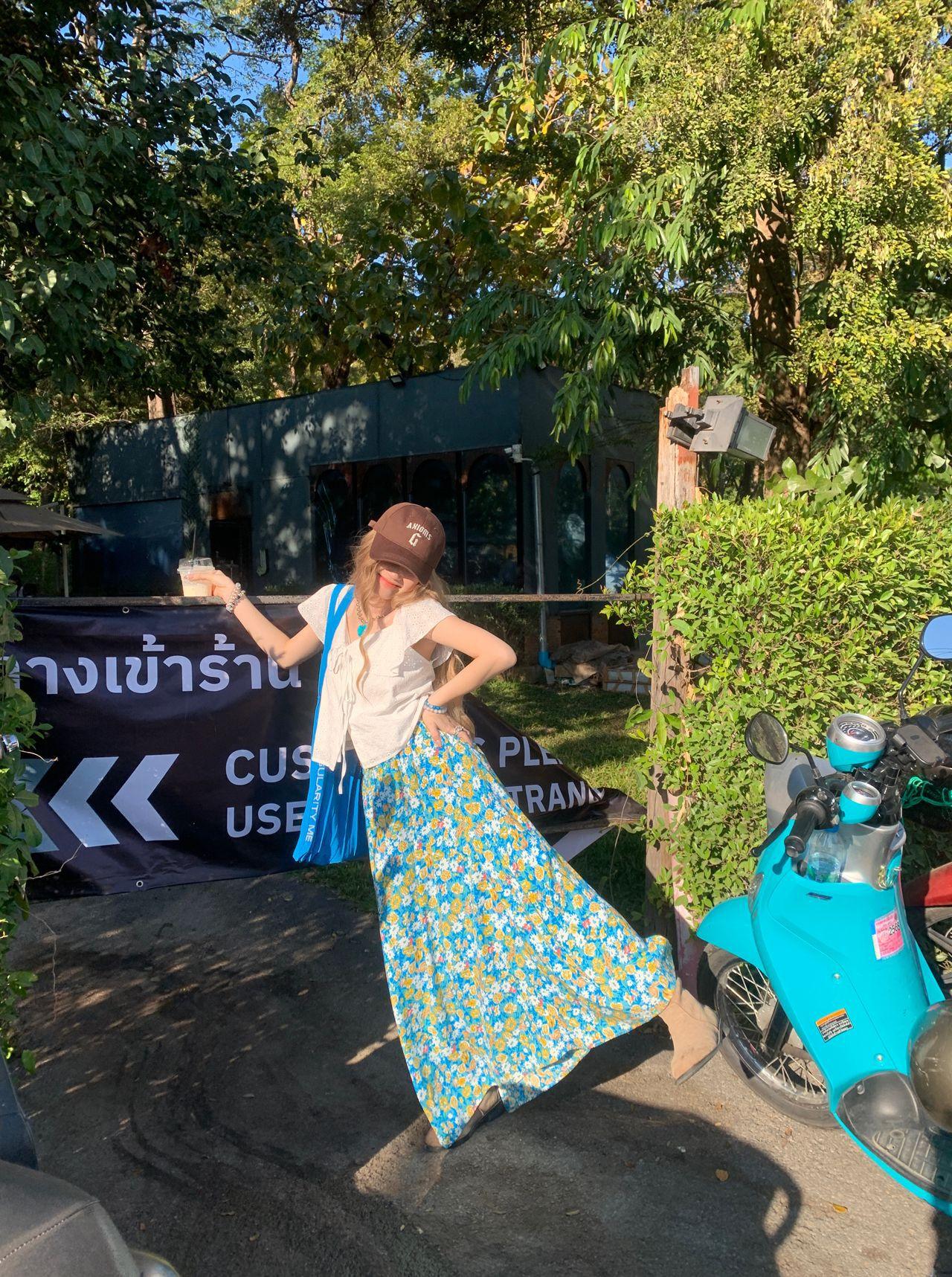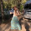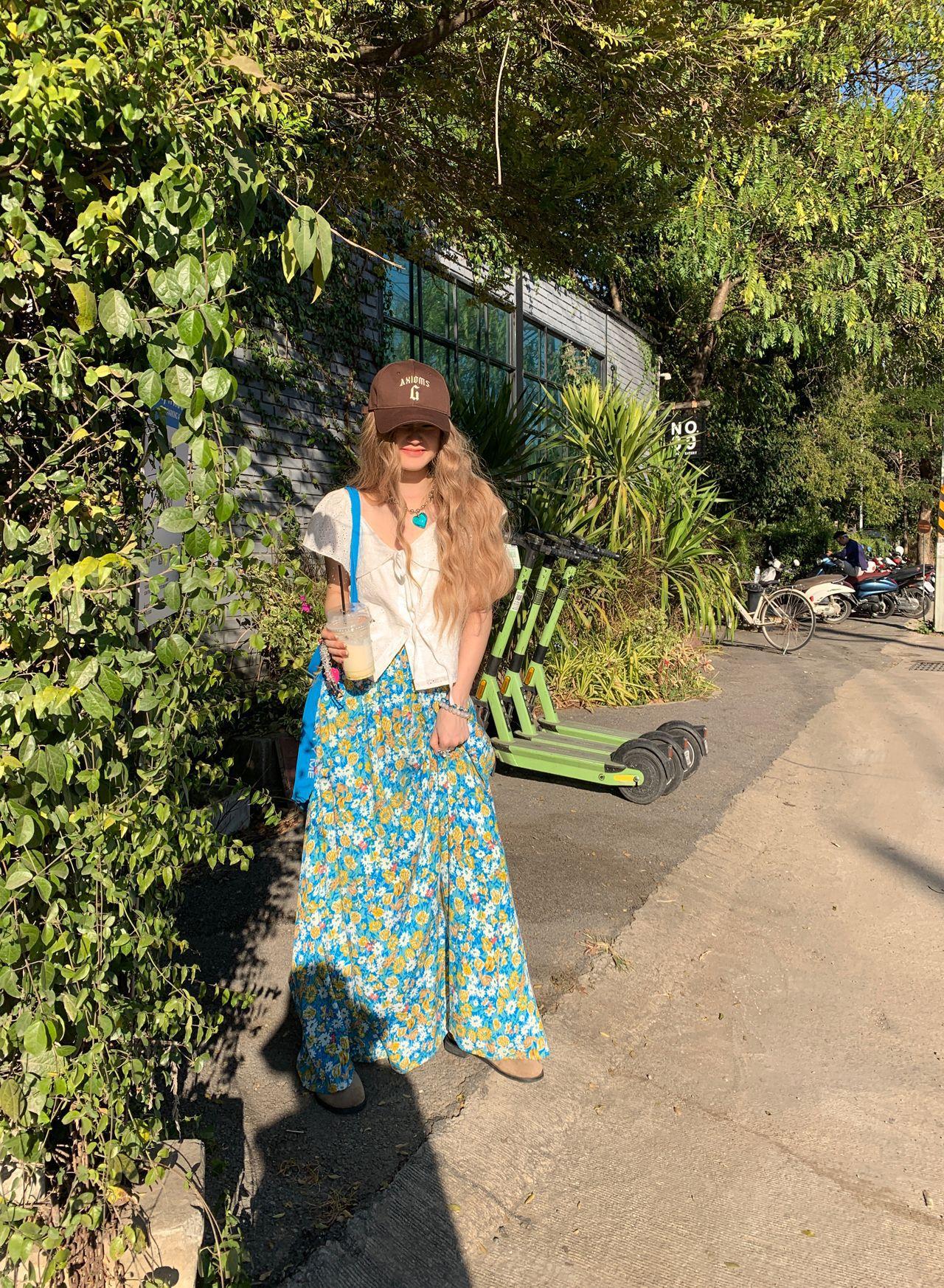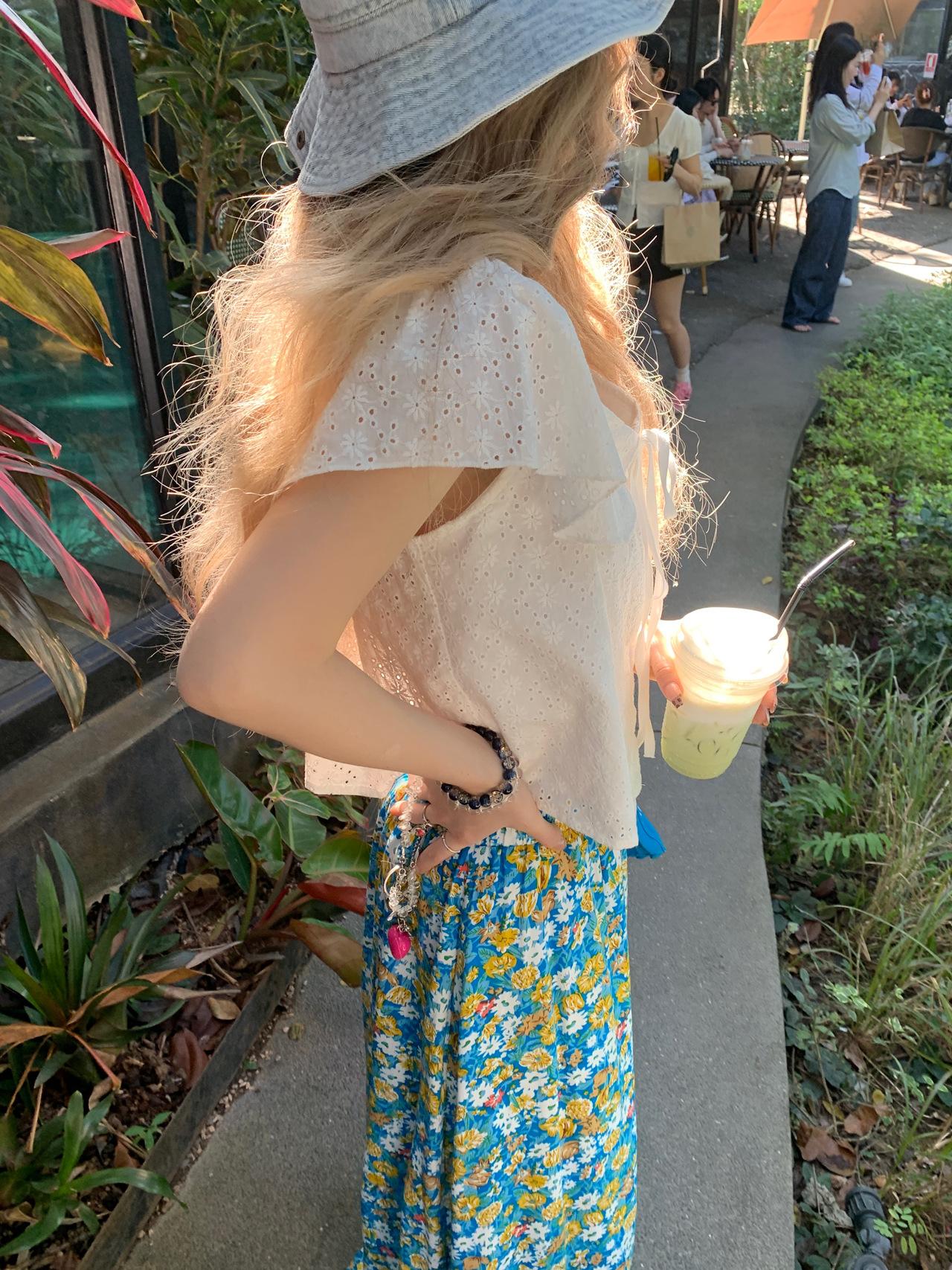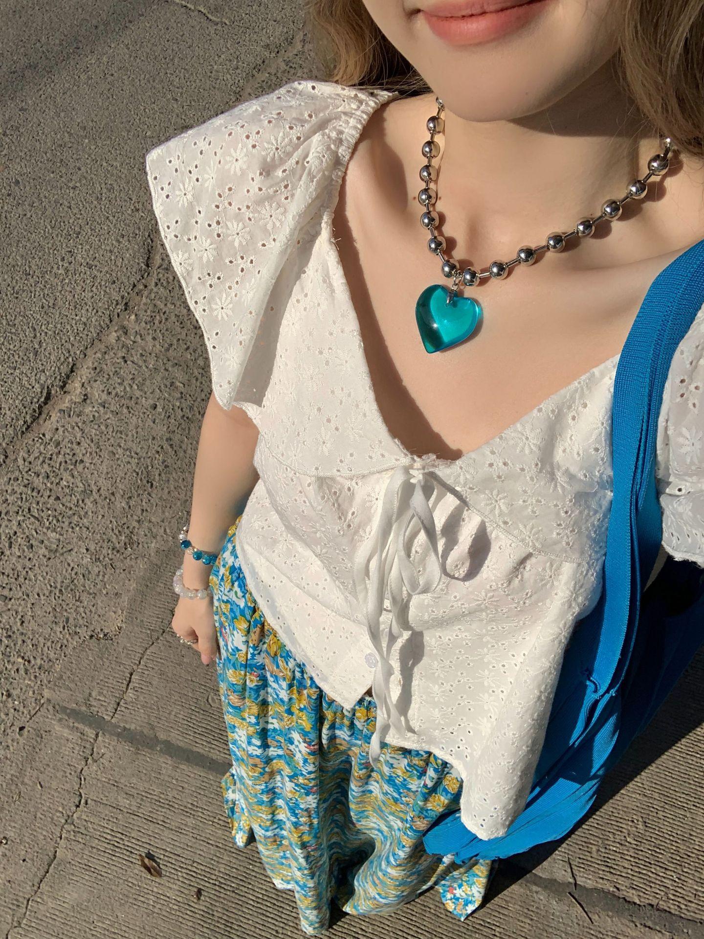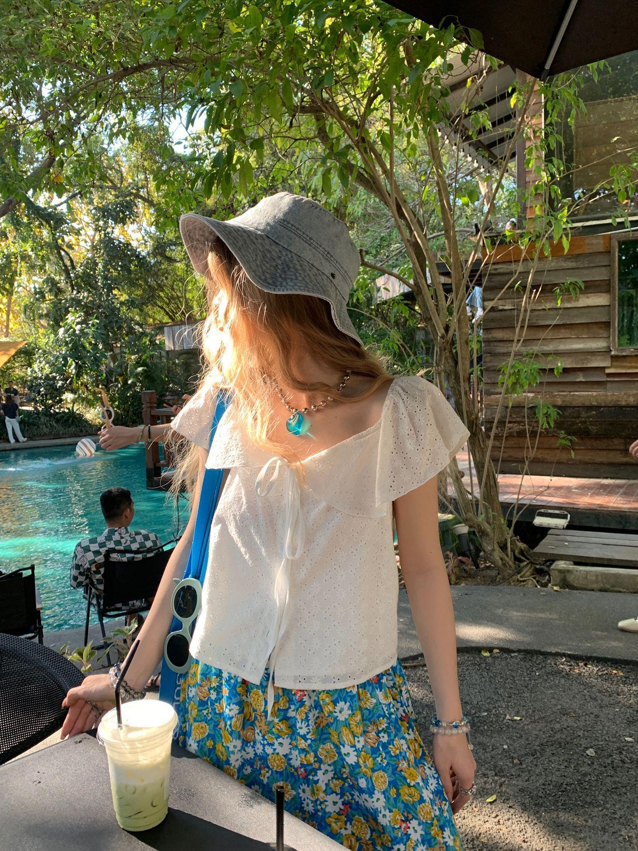 Talla Grande Dulce y Fresca Blusa Blanca de Manga Corta + Falda Grande Floral Estilo Pastoral Falda Larga Floral
