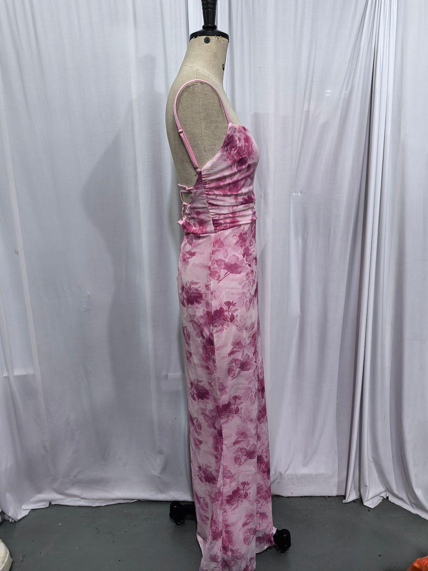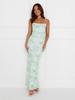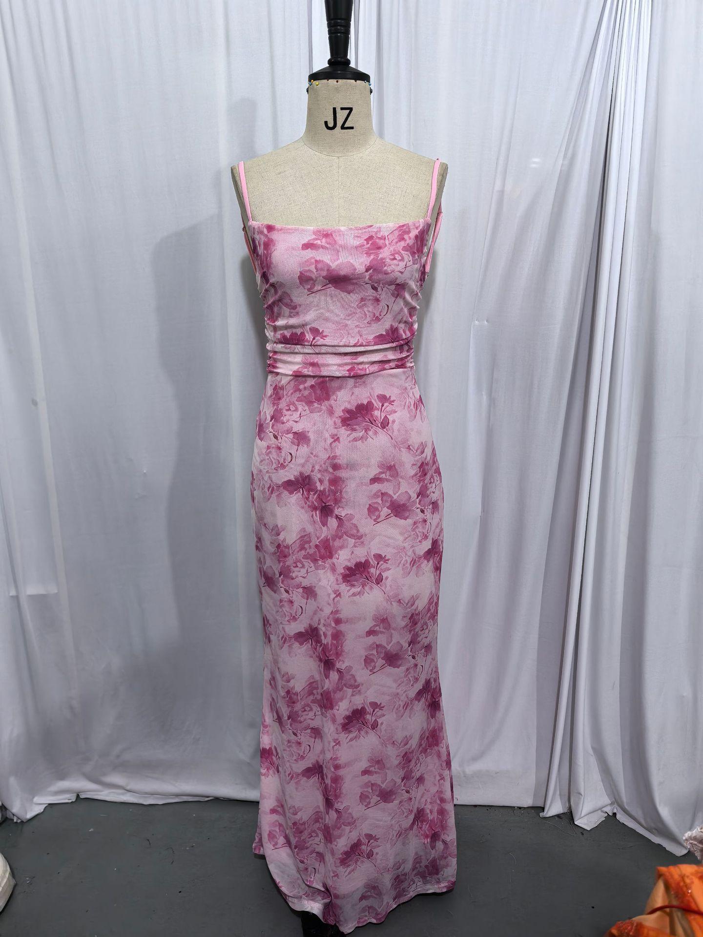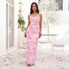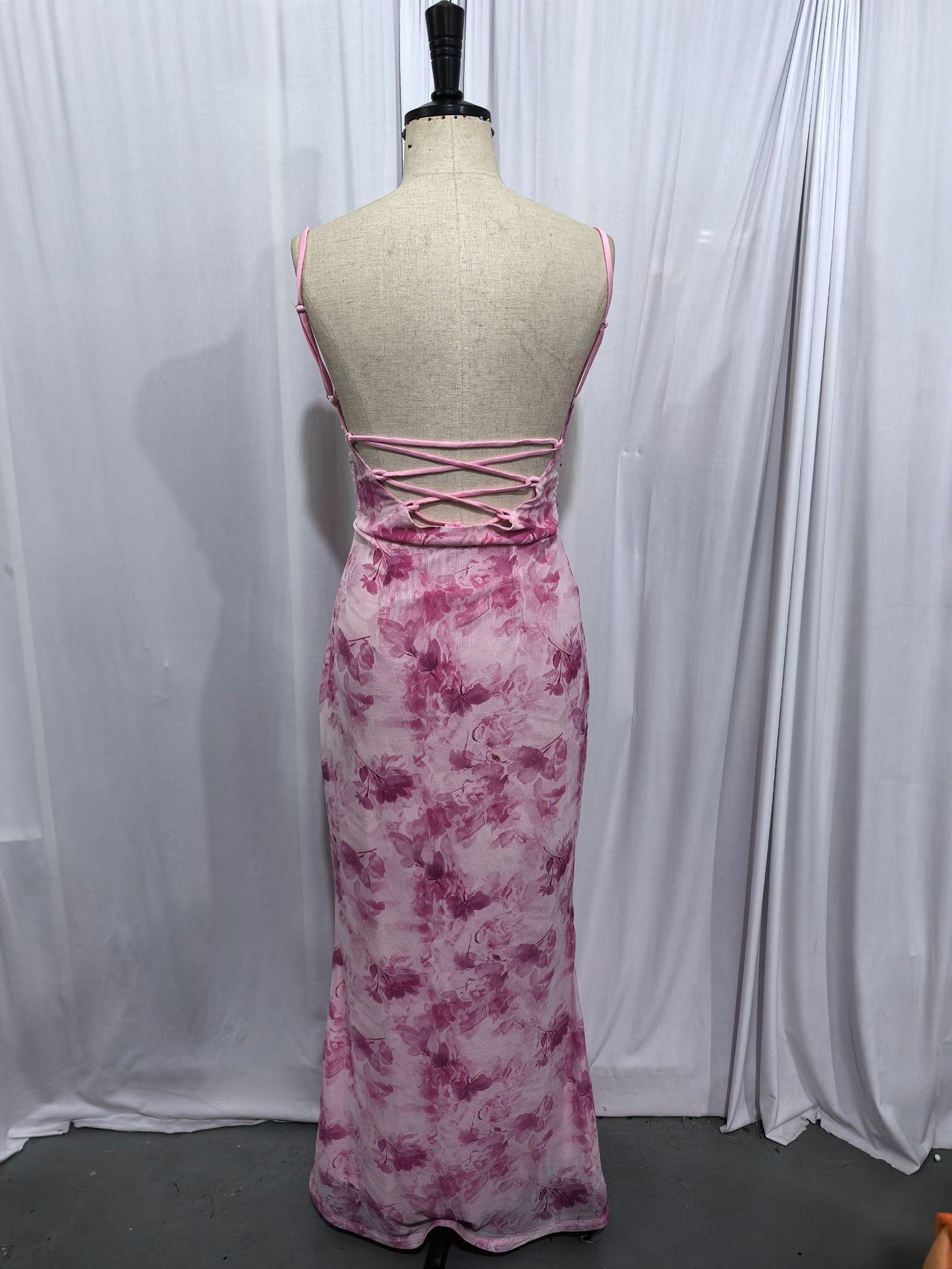 Europeo y Americano 2025 Nuevo Verano Sexy Espalda Descubierta con Cordones Falda Larga Estampado Personalizado de Moda Vestido Sexy Ajustado de Cuello Bajo