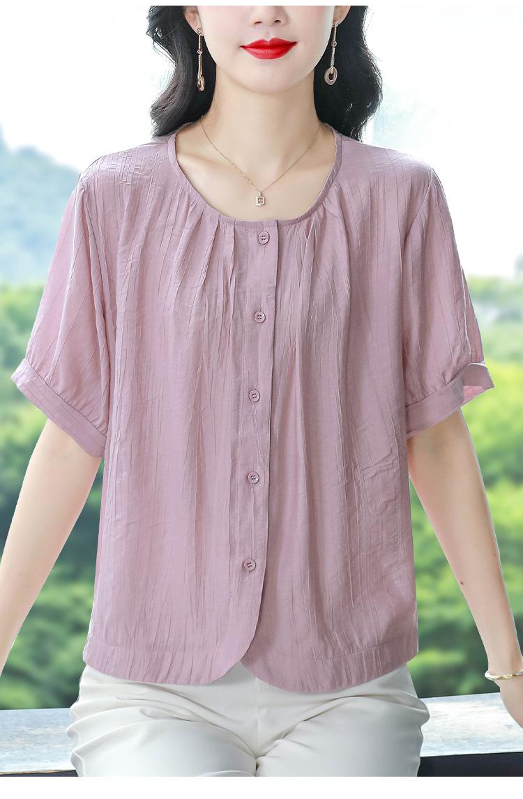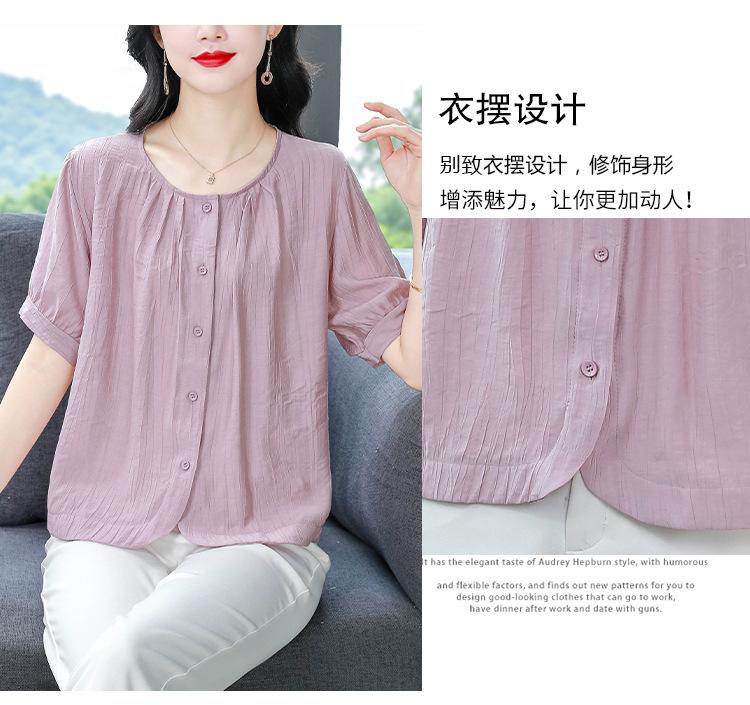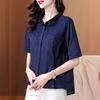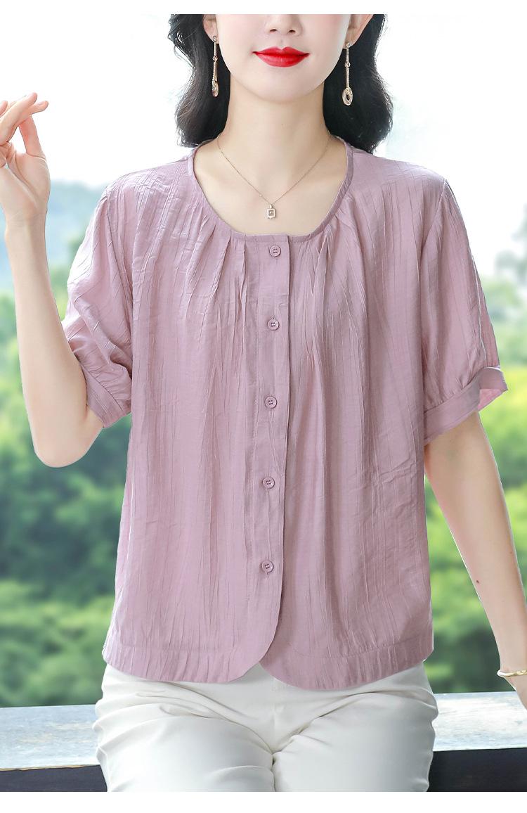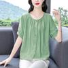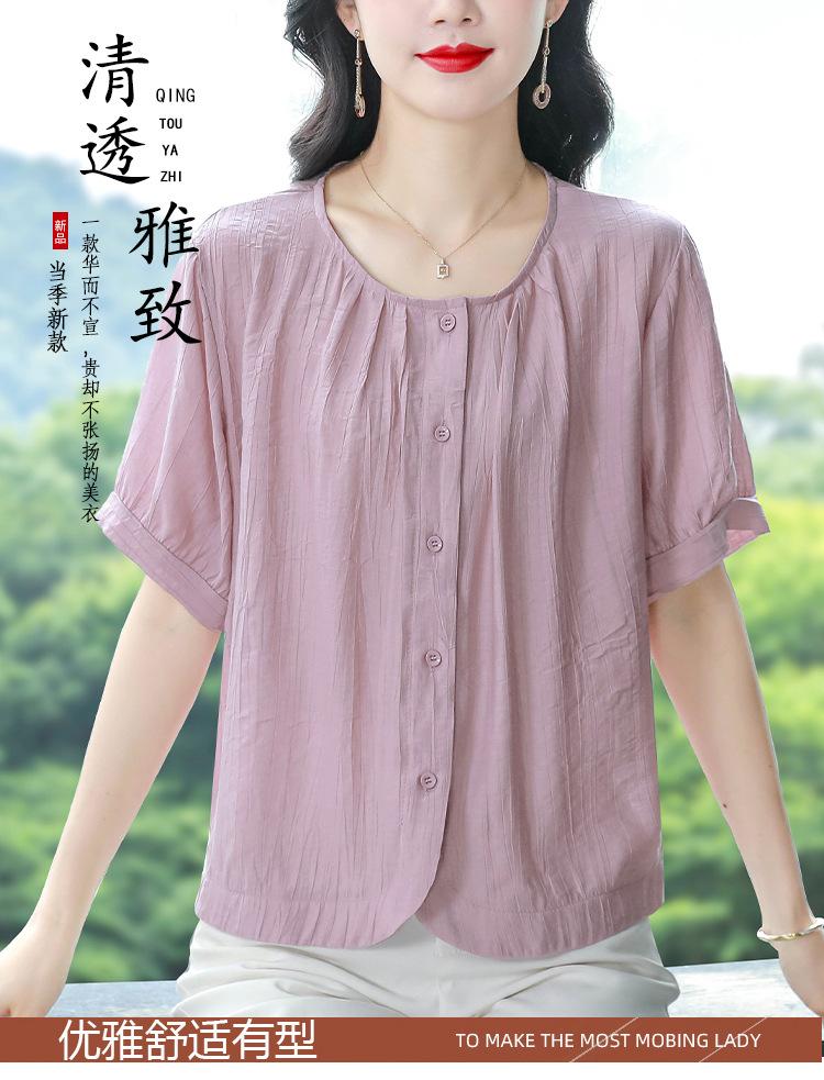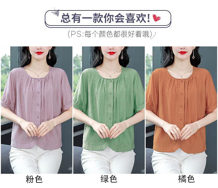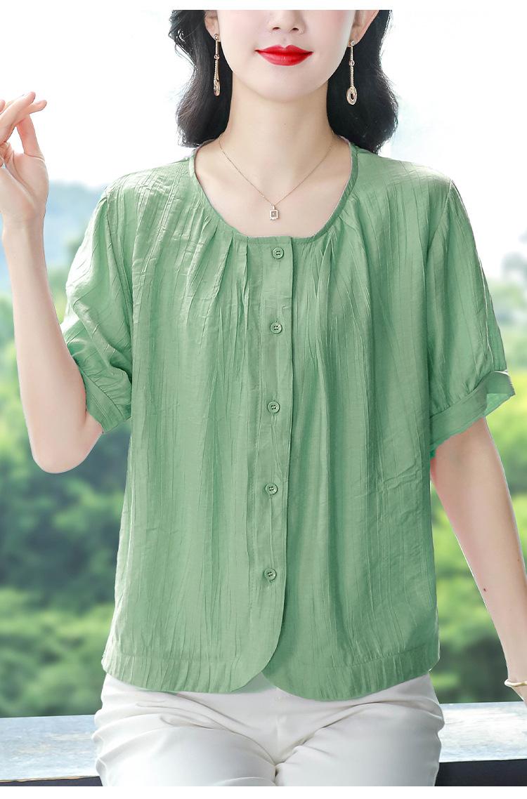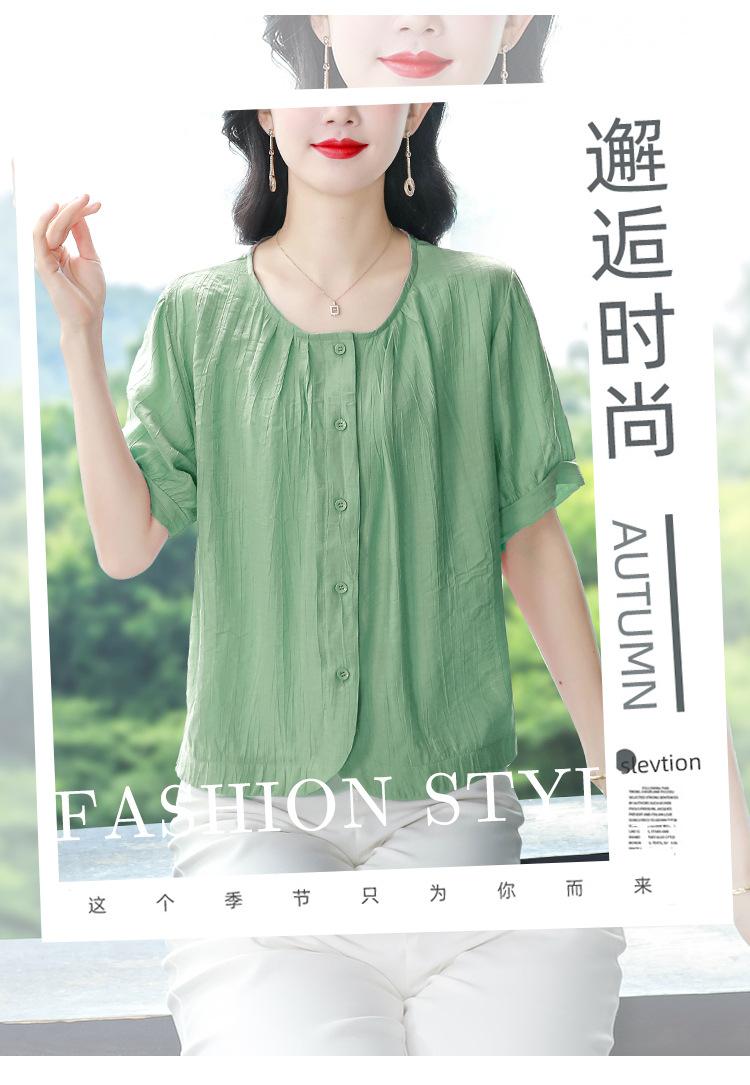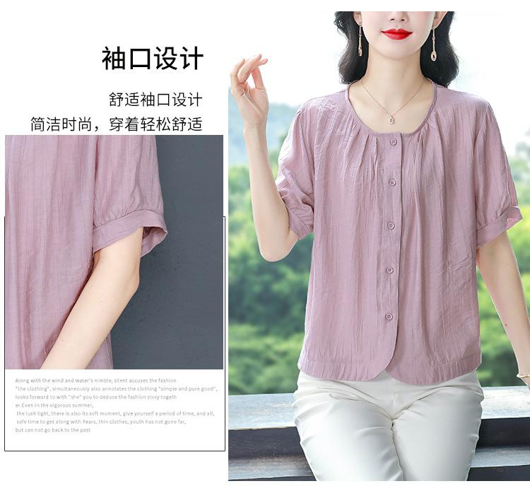 Camisas de Algodón y Lino de Manga Corta para Mujer Verano 2025 Reductoras de Edad Cubre-Barriga Camisas Holgadas Nuevo Estilo Tops Estilo para Madres de Mediana Edad y Mayores