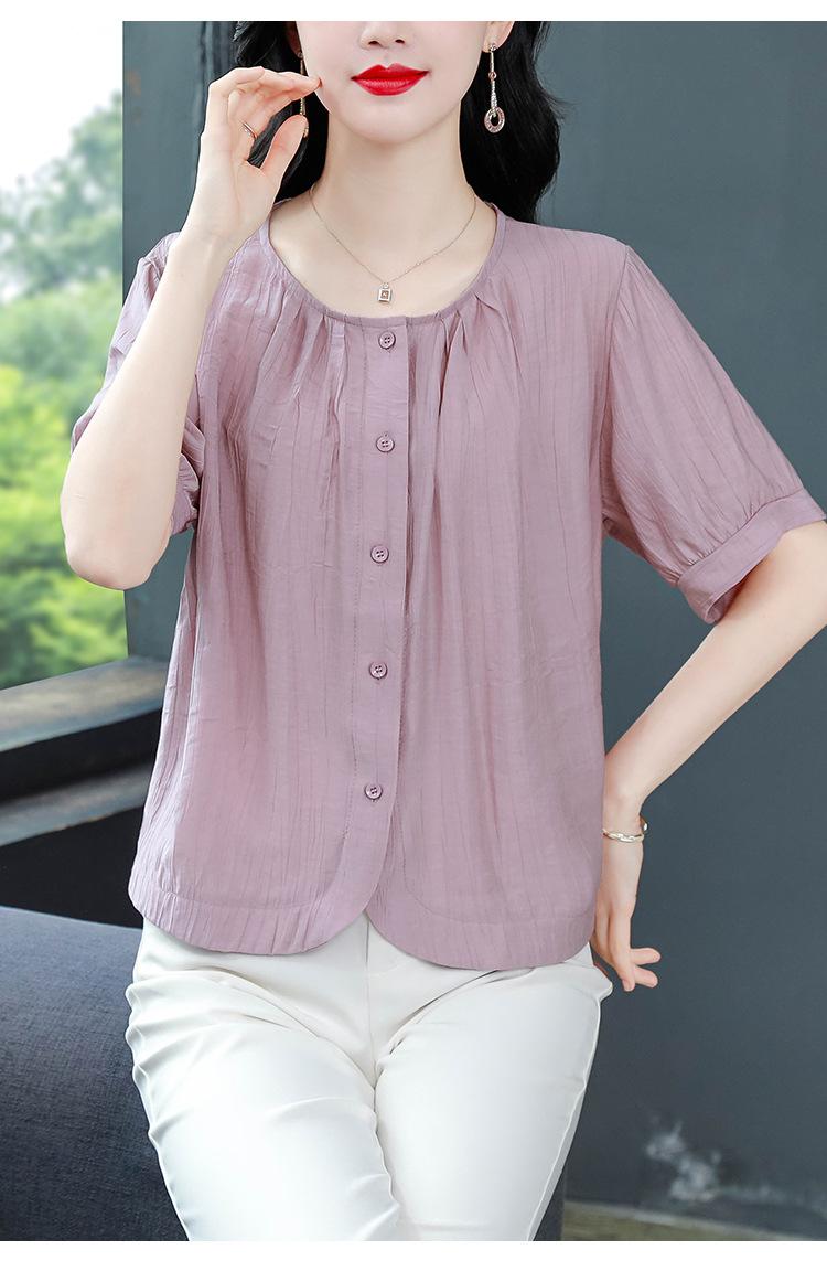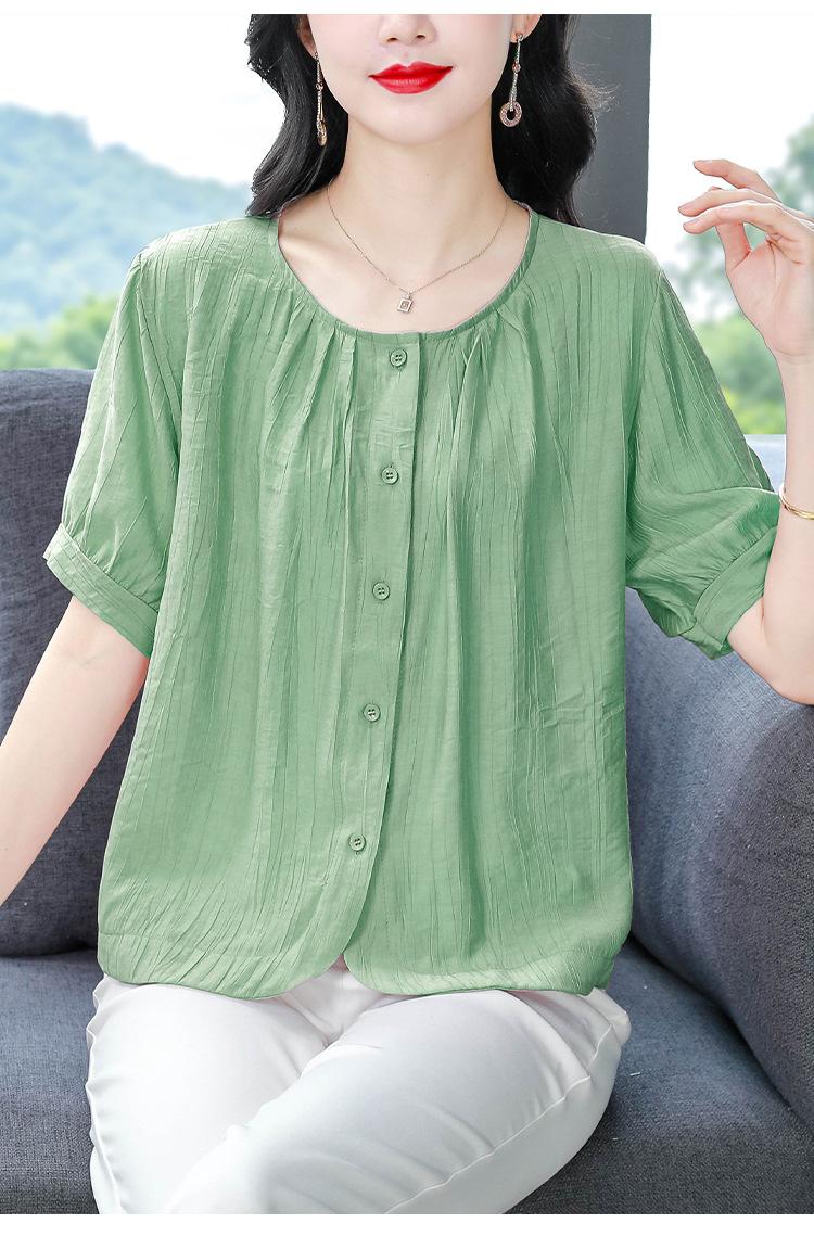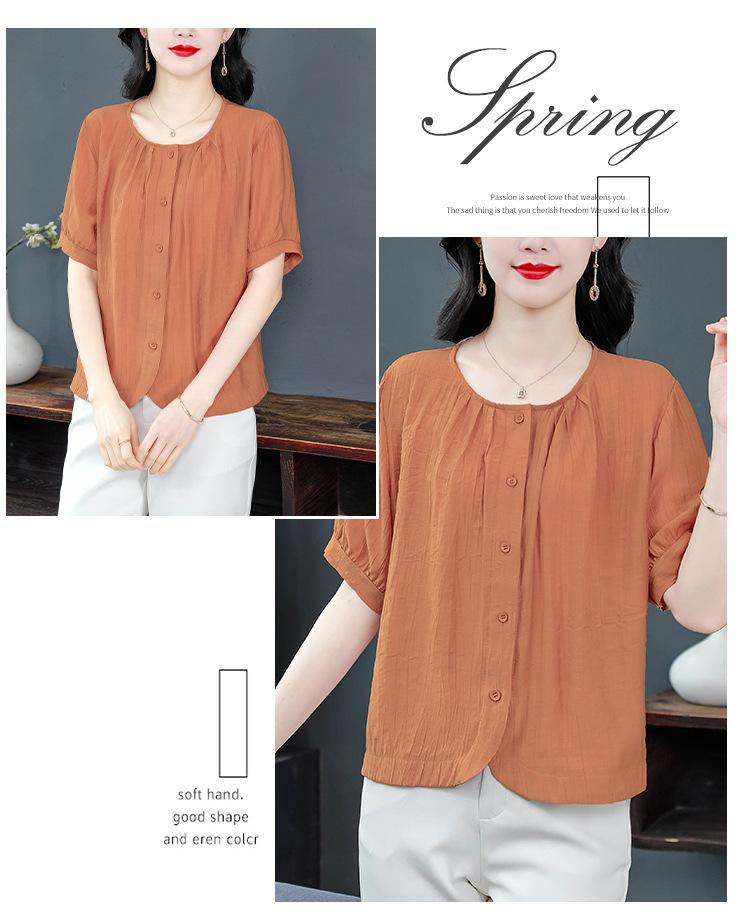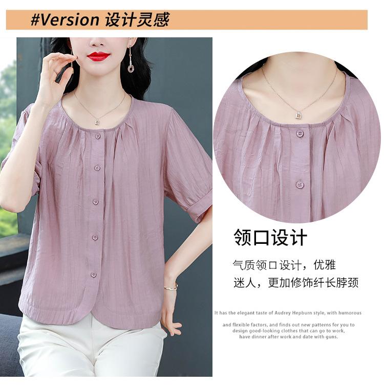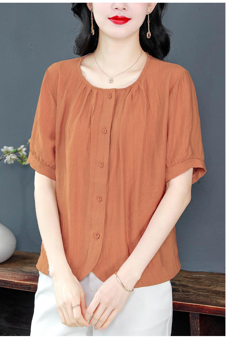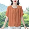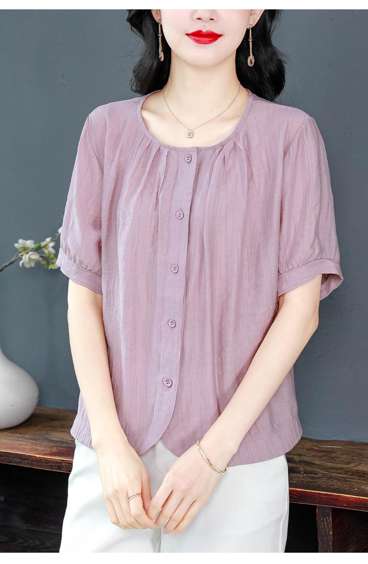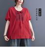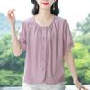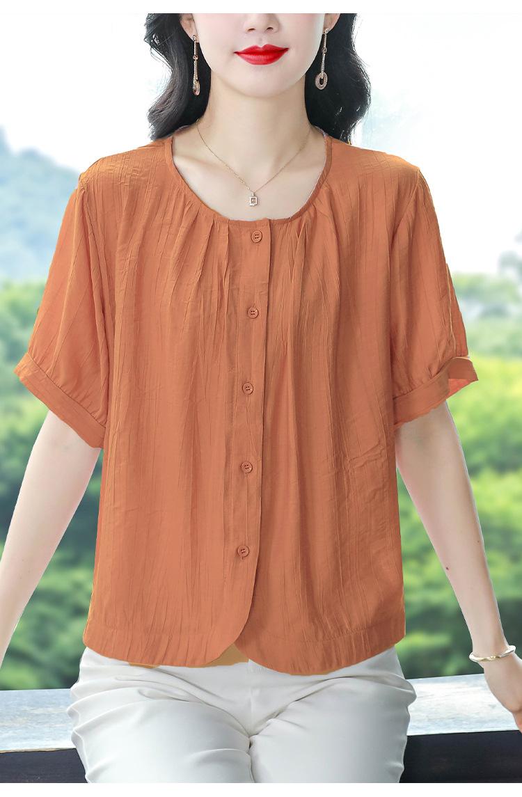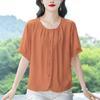 Camisas de Algodón y Lino de Manga Corta para Mujer Verano 2025 Reductoras de Edad Cubre-Barriga Camisas Holgadas Nuevo Estilo Tops Estilo para Madres de Mediana Edad y Mayores