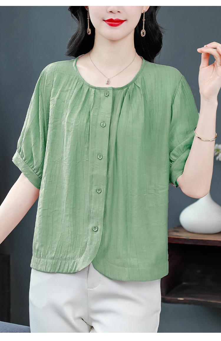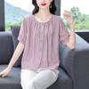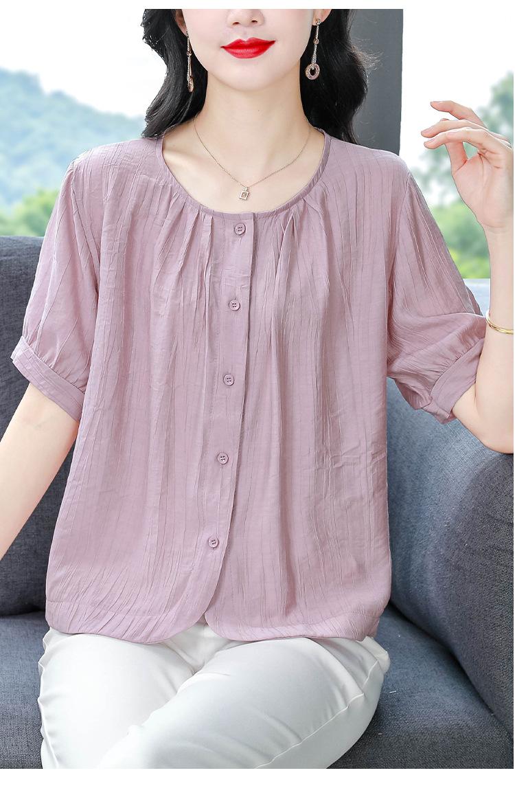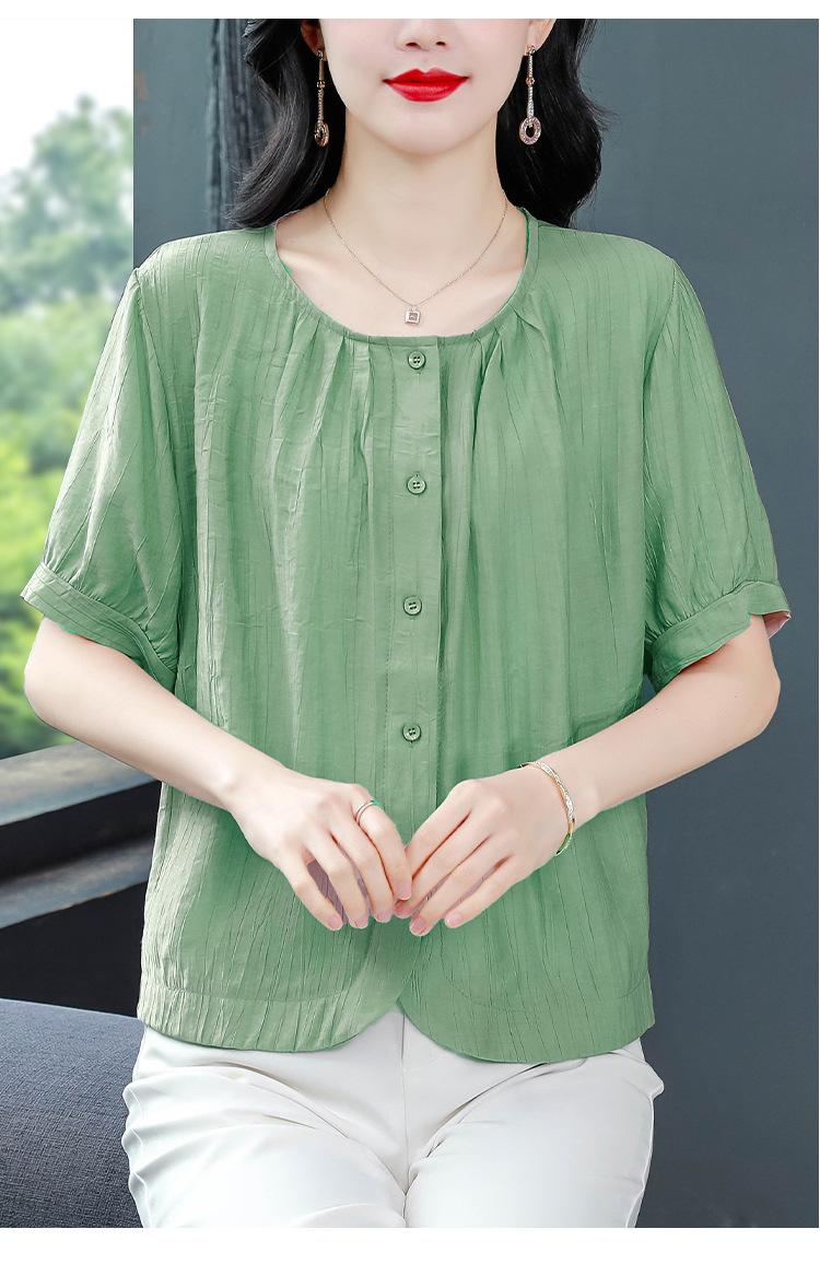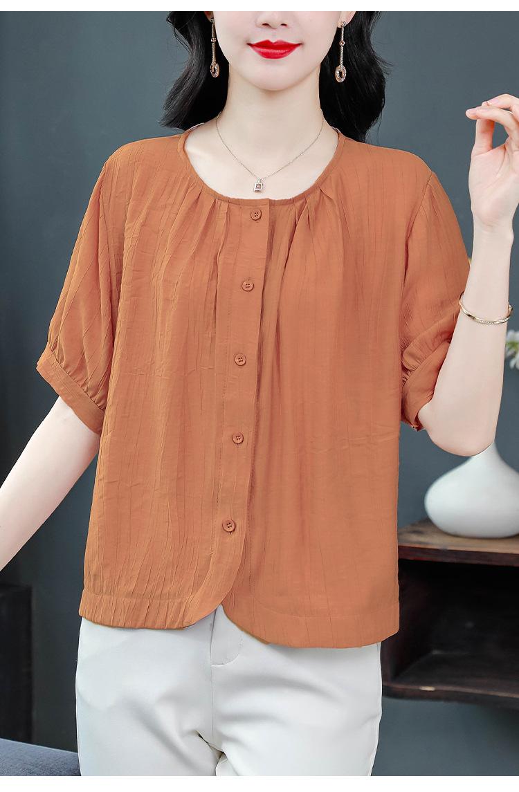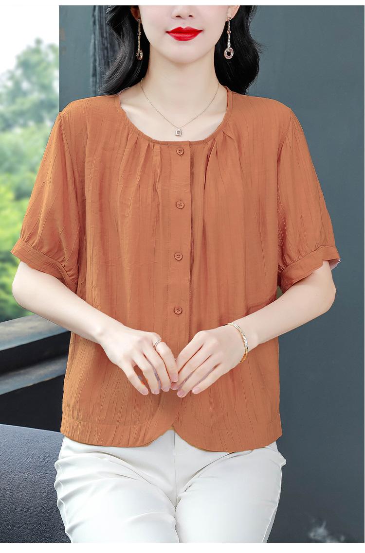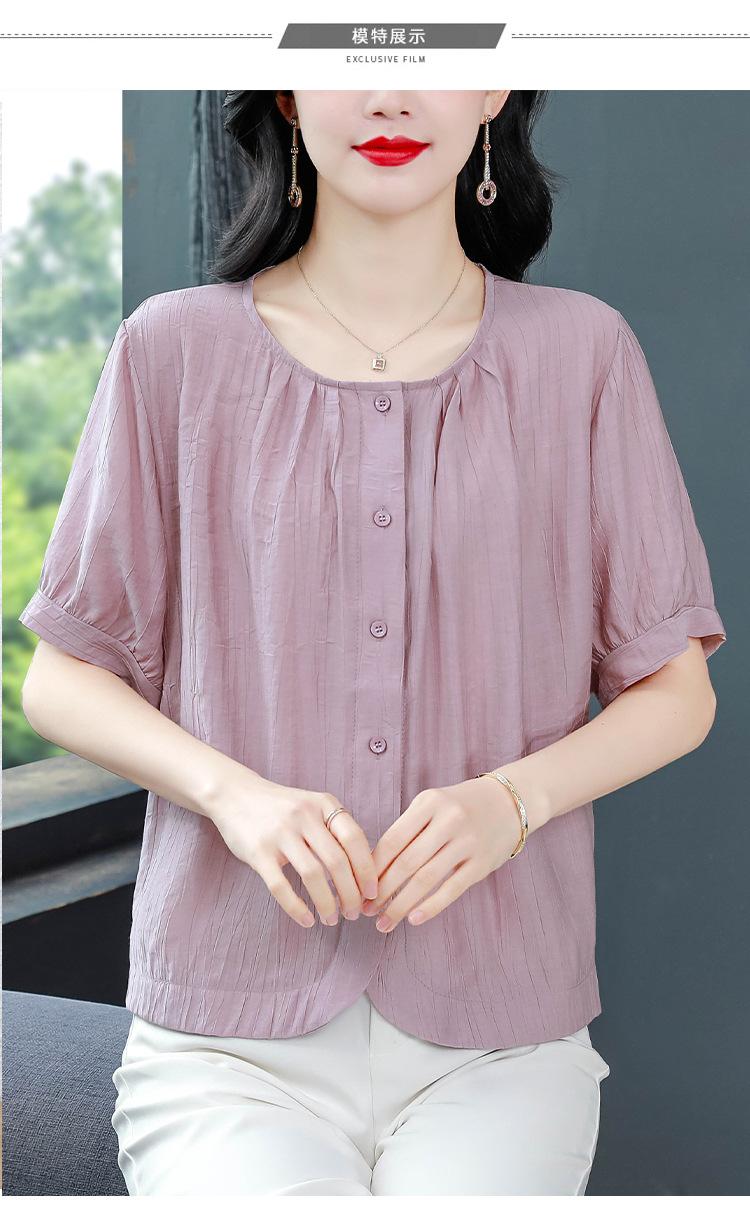 Camisas de Algodón y Lino de Manga Corta para Mujer Verano 2025 Reductoras de Edad Cubre-Barriga Camisas Holgadas Nuevo Estilo Tops Estilo para Madres de Mediana Edad y Mayores