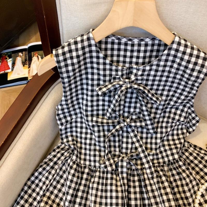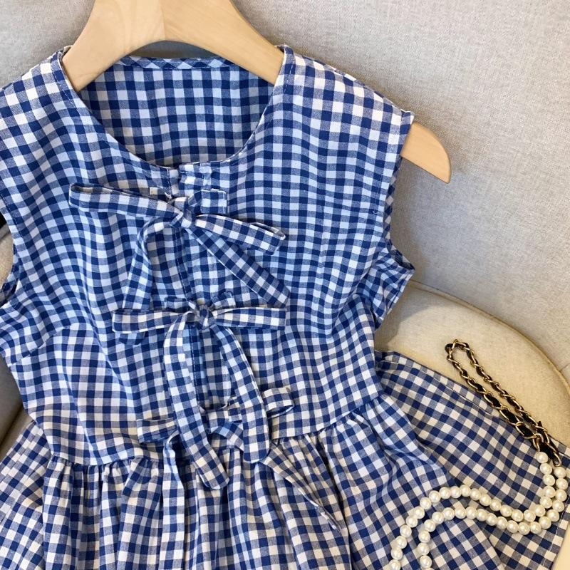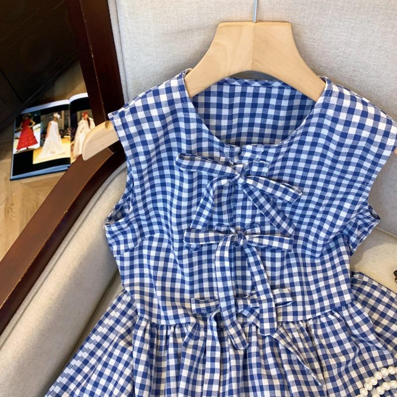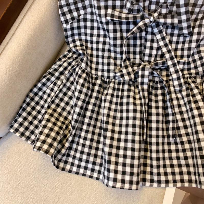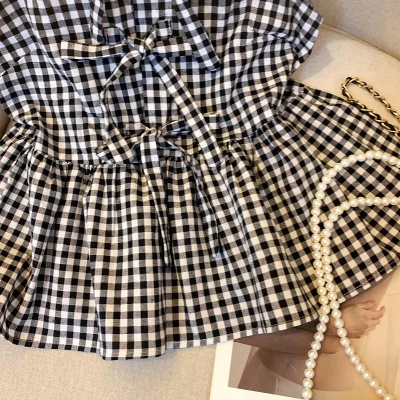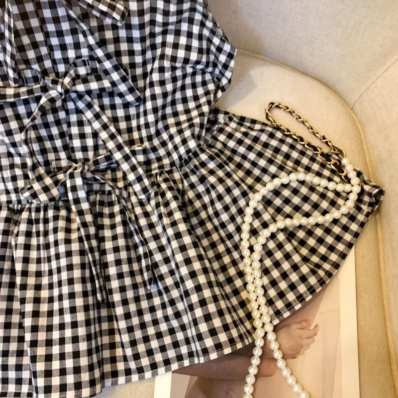 Foto real Camisa sin mangas a cuadros con lazo francés para mujer para salir, de alta gama, única, bonita, exquisita, top, blusa