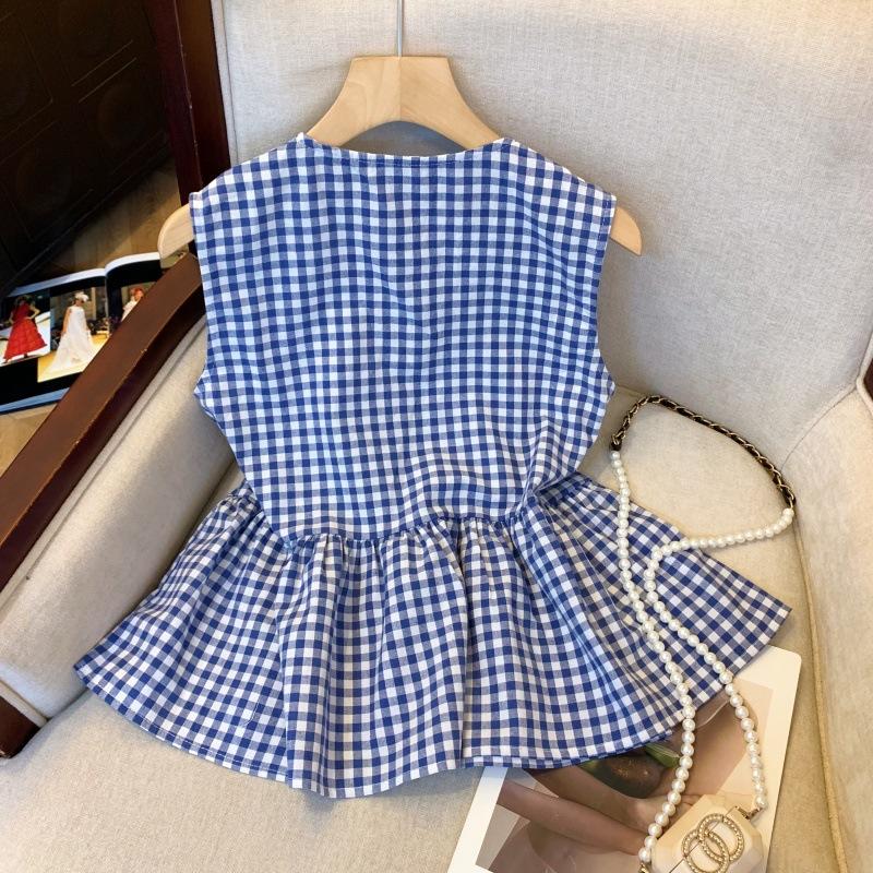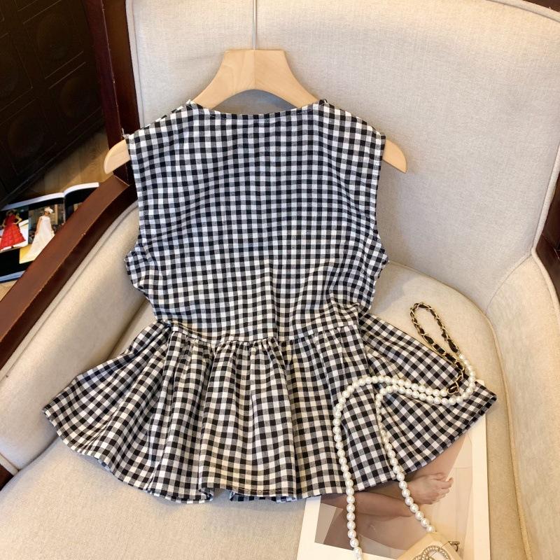 Compra Foto Real Moño Francés Cuadros Camiseta sin Mangas Ropa Exterior para Mujer Top Exquisito Hermoso Único de Alta Gama Camisa Pequeña al por mayor en Joom.pro