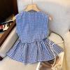 Foto Real Moño Francés Cuadros Camiseta sin Mangas Ropa Exterior para Mujer Top Exquisito Hermoso Único de Alta Gama Camisa Pequeña