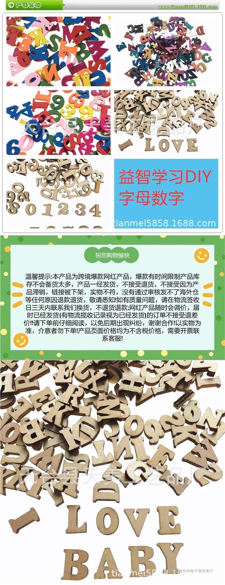 Natural wood color english letters fixed 104 pieces per pack about 27 grams