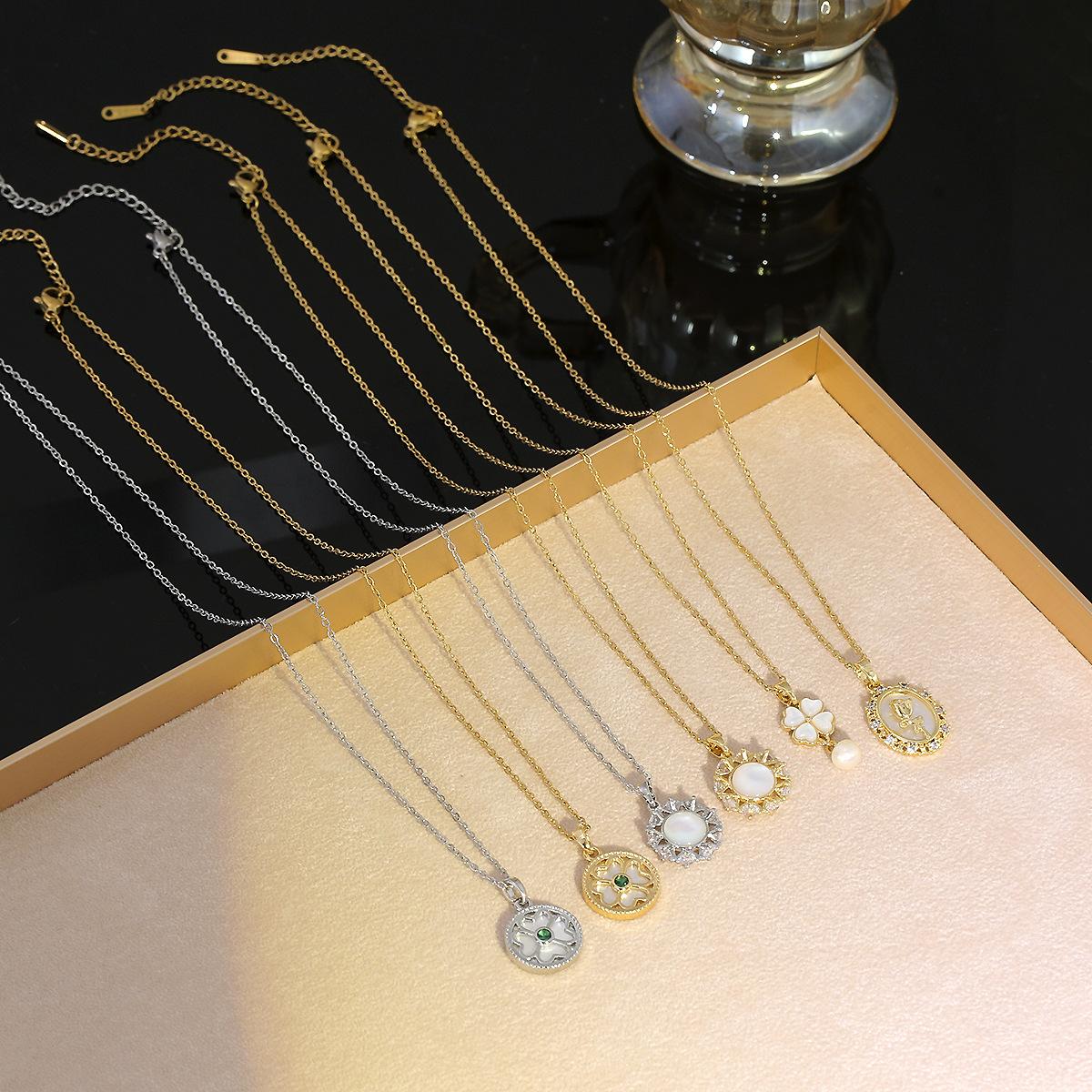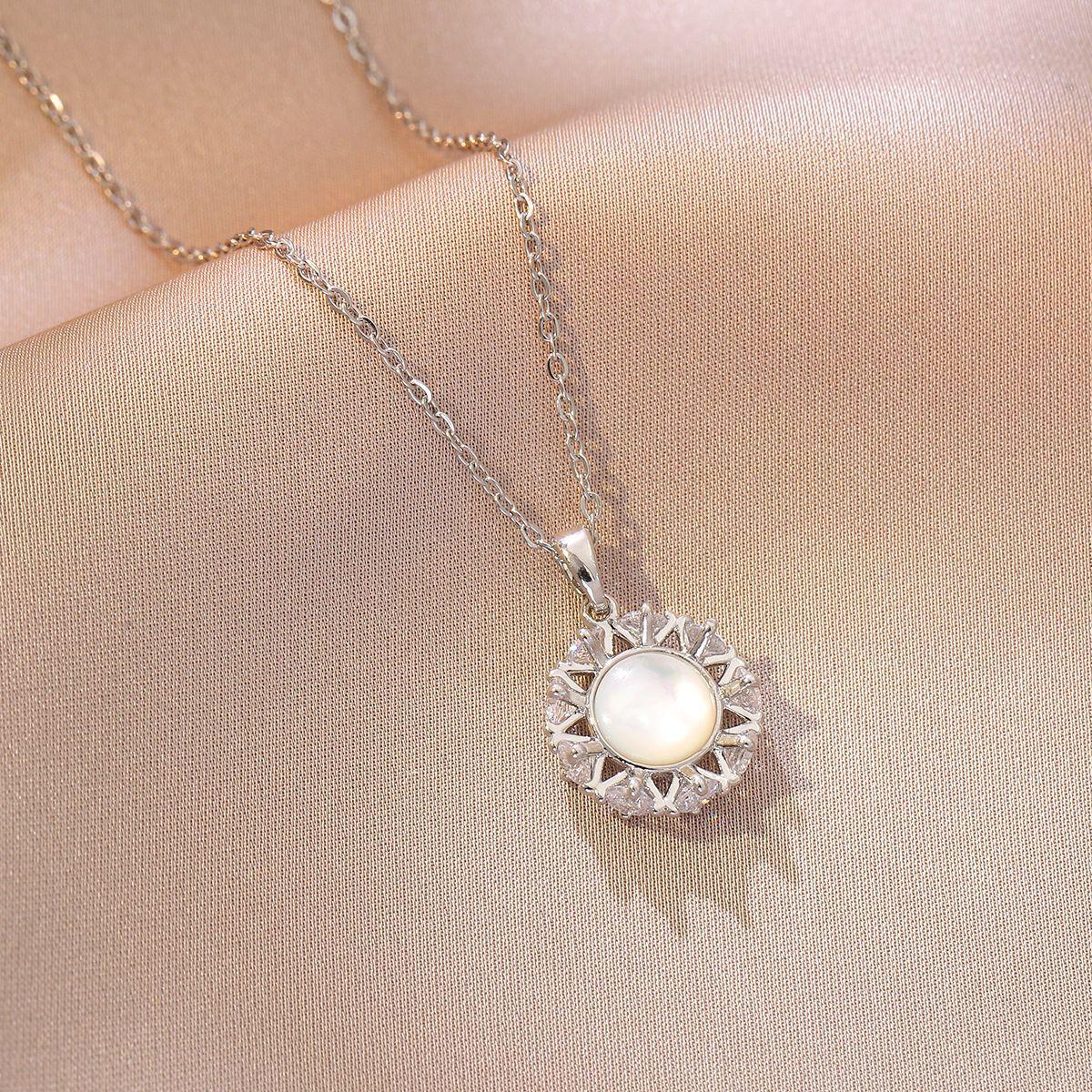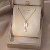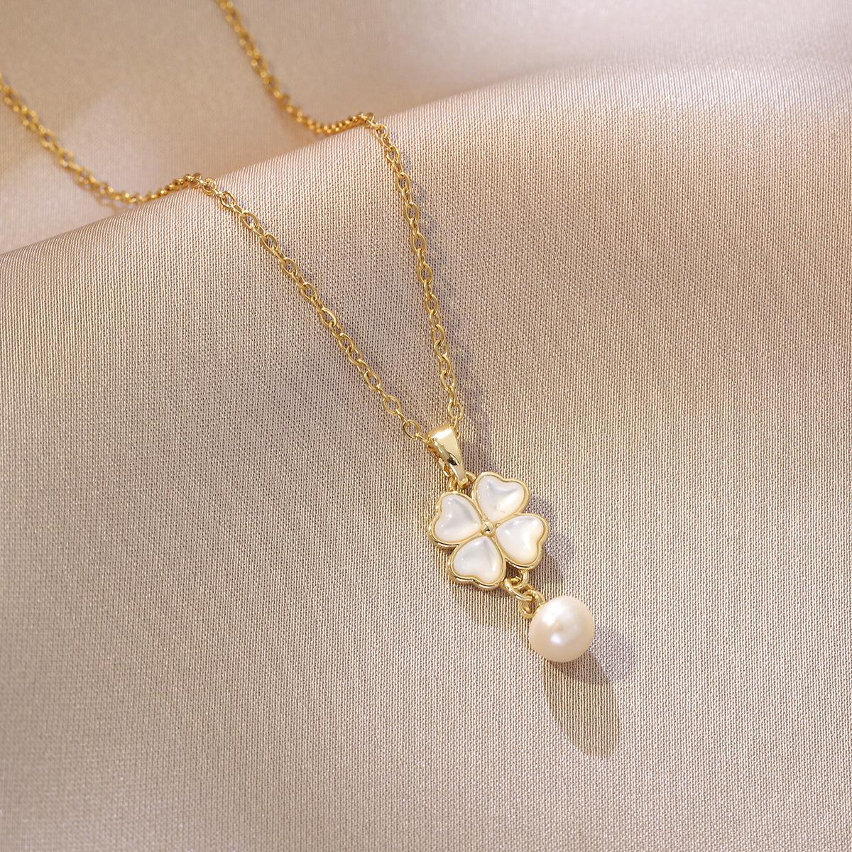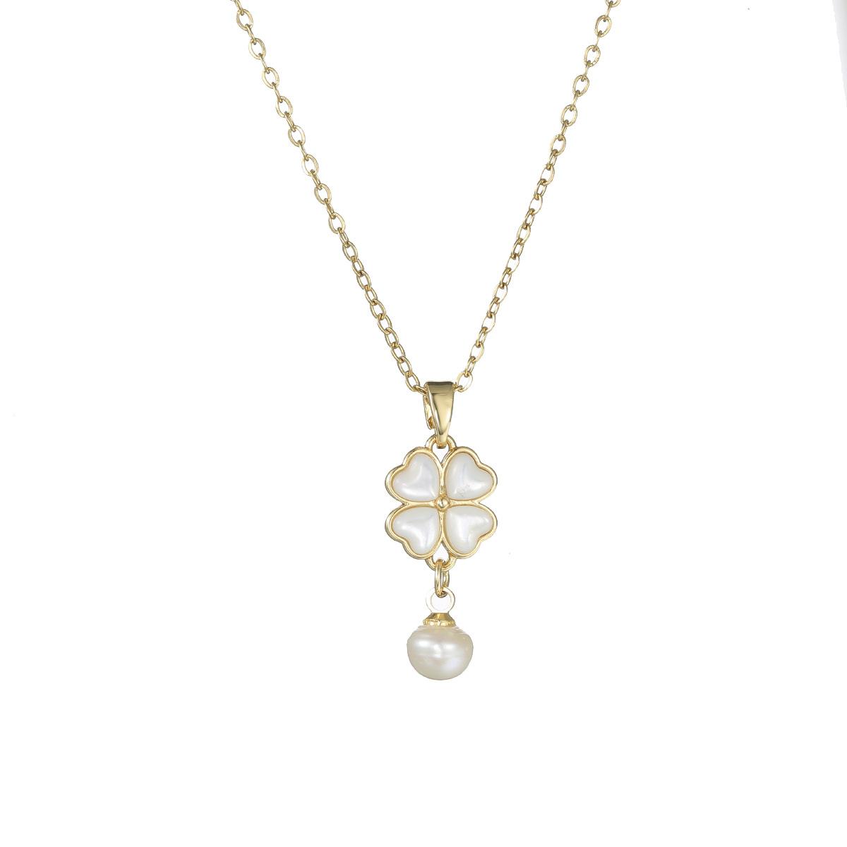 Collar para Mujer Celebridad de Internet Transfronteriza Amor Concha Perla de Agua Dulce Flor Nicho Diseño Simple Temperamento Acero Titanio Cadena Clavícula