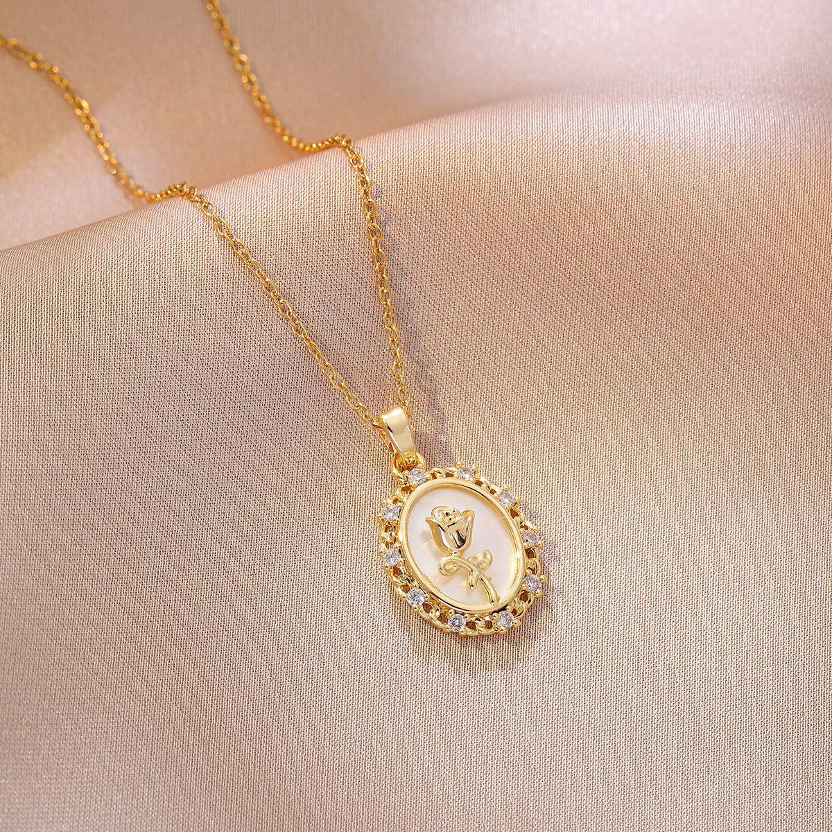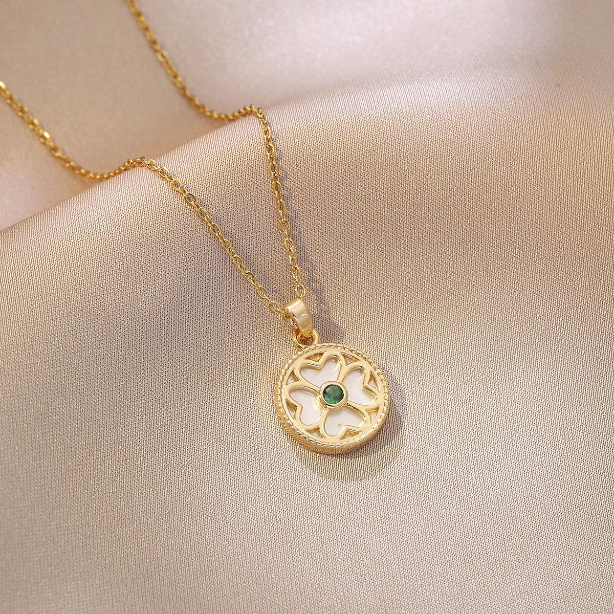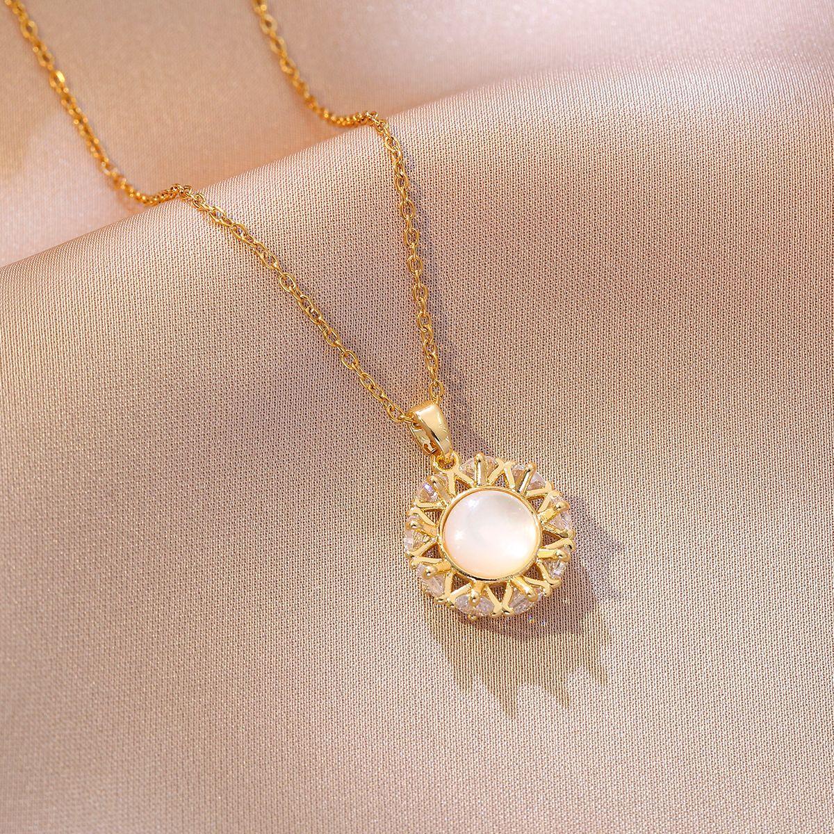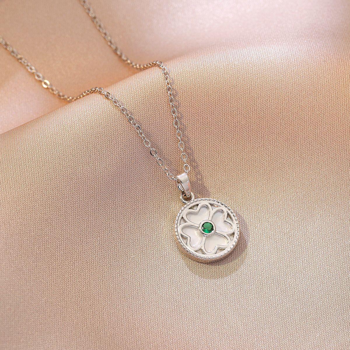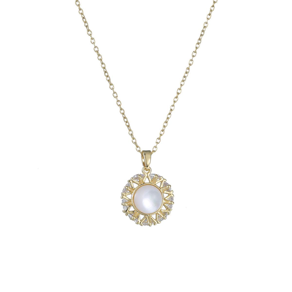Collar para Mujer Celebridad de Internet Transfronteriza Amor Concha Perla de Agua Dulce Flor Nicho Diseño Simple Temperamento Acero Titanio Cadena Clavícula