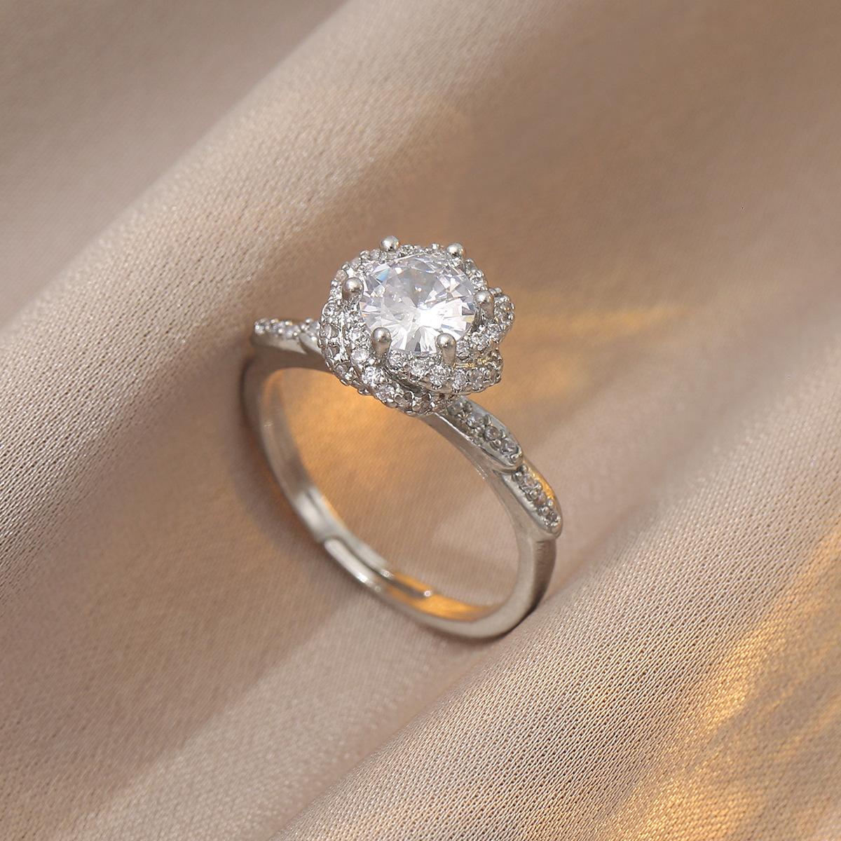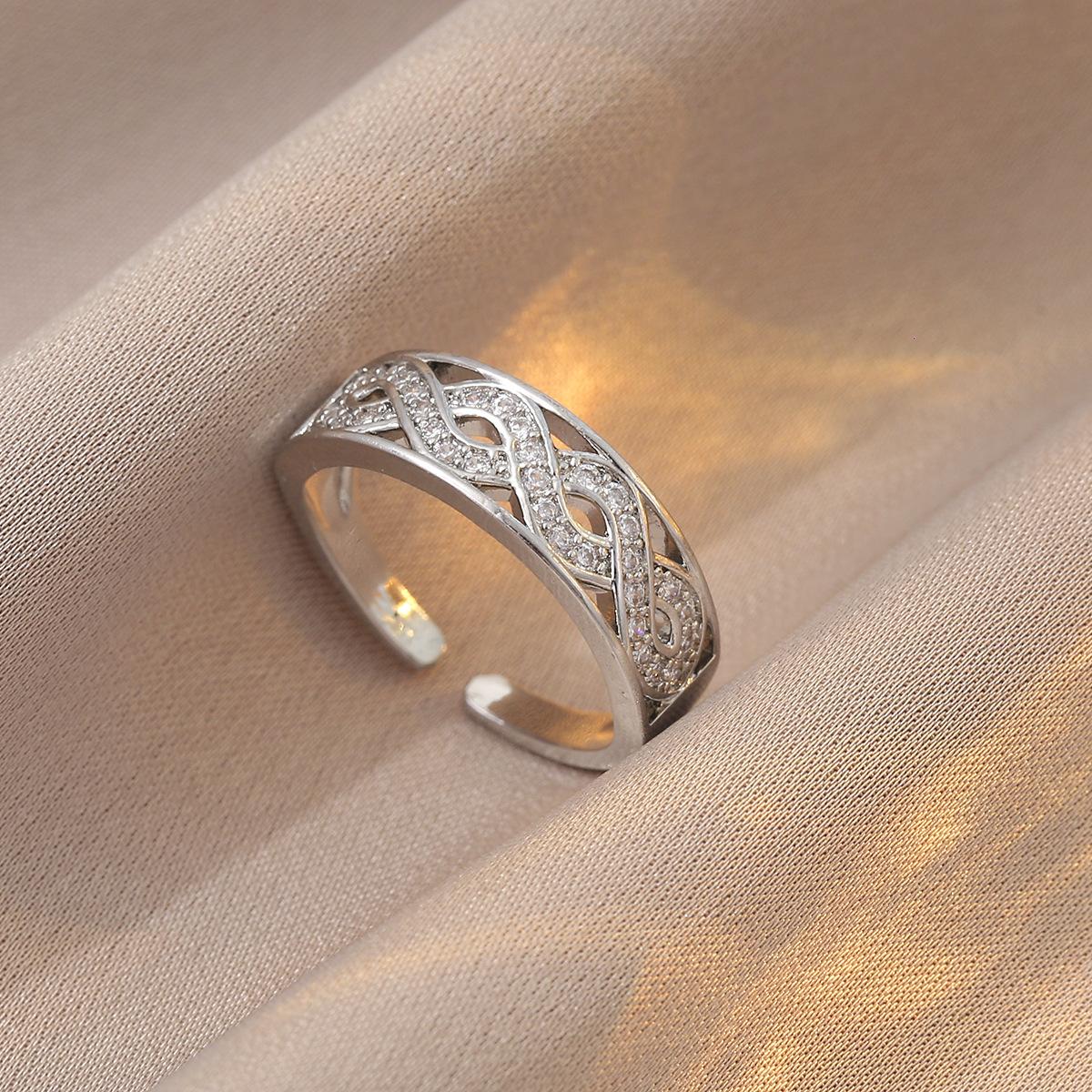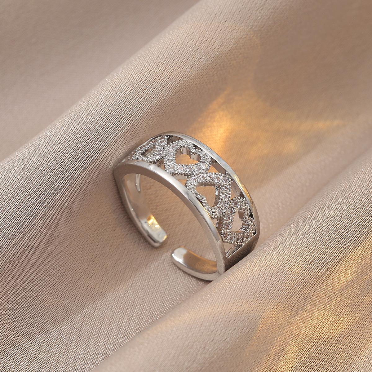 Anillo para Mujer Dulce Nicho Joyería de Alta Gama Anillo para Dedo Popular en Internet Amor Zircón Anillo de Abertura Ajustable Joyería