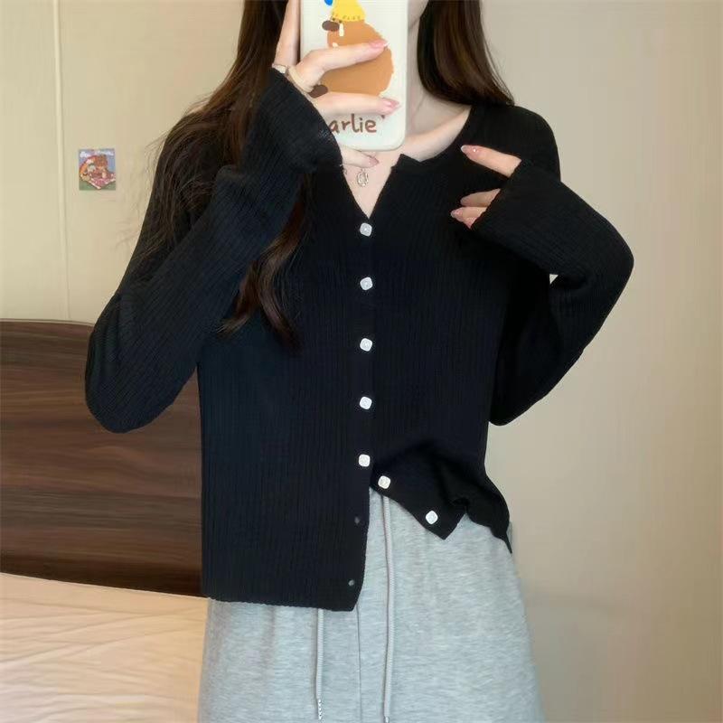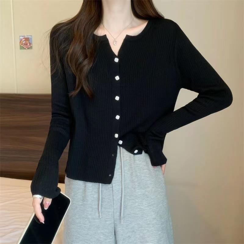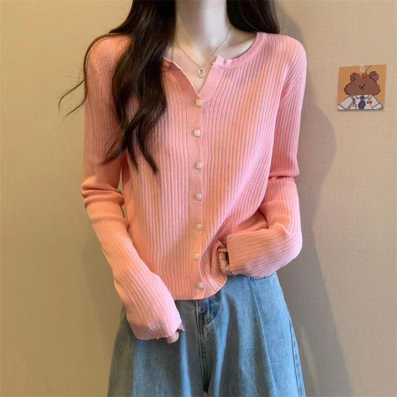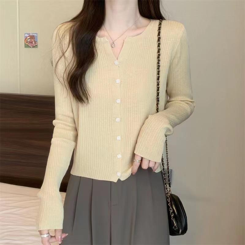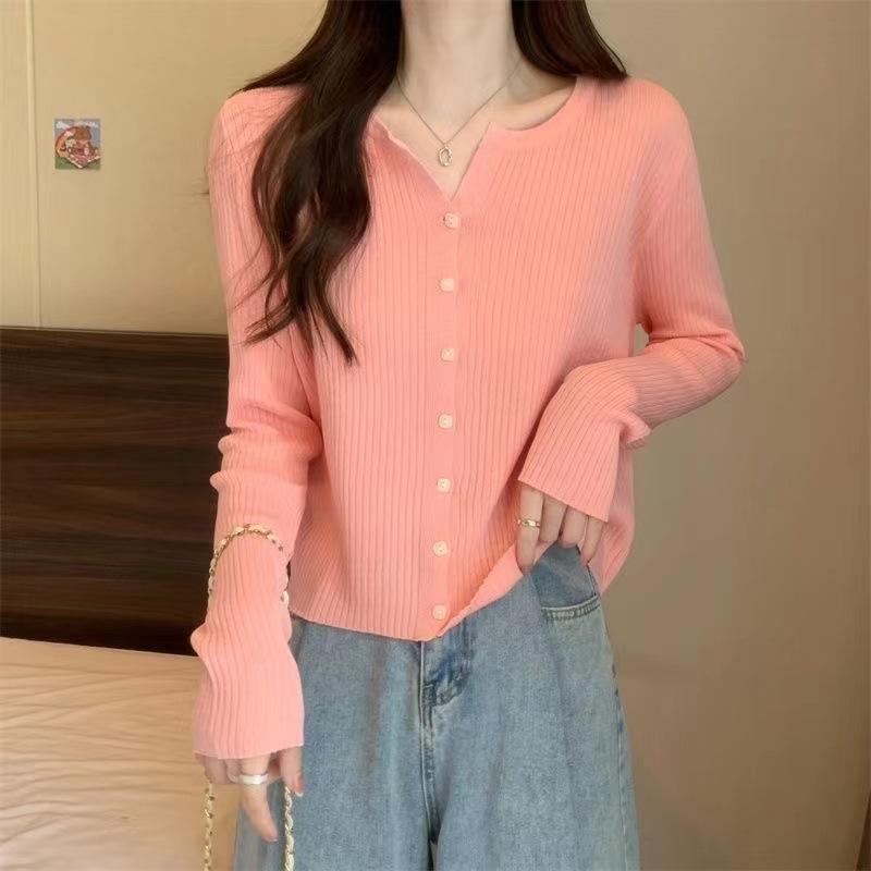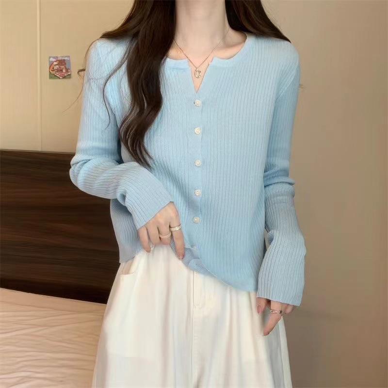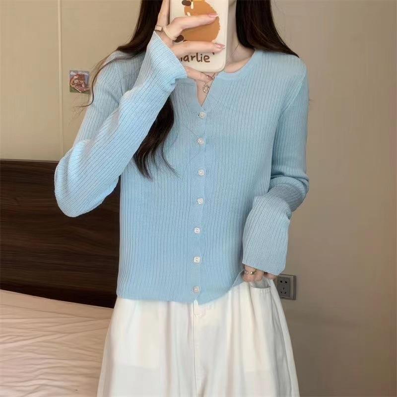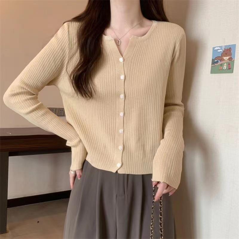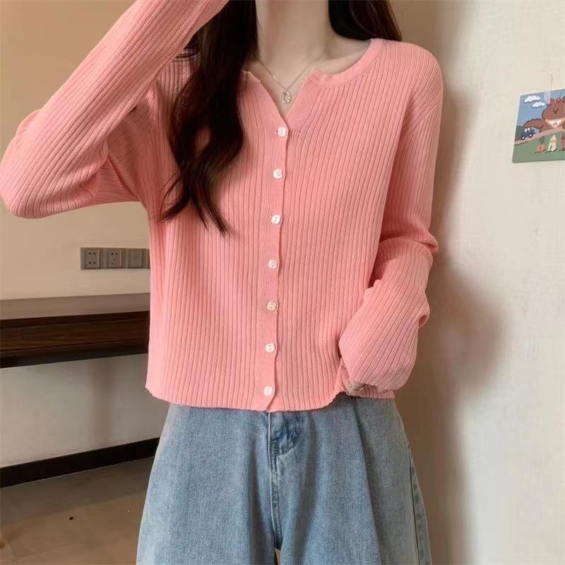 Primavera y Otoño 2022 Nuevo Estilo Coreano Estilo Suave Suéter para Mujer Manga Larga Suéter de Punto Cárdigan Top Corto