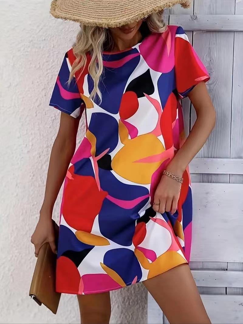 2024 AliExpress Amazon manga corta cuello redondo nuevo vestido