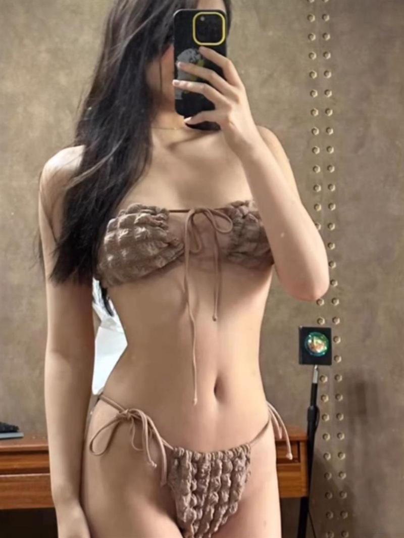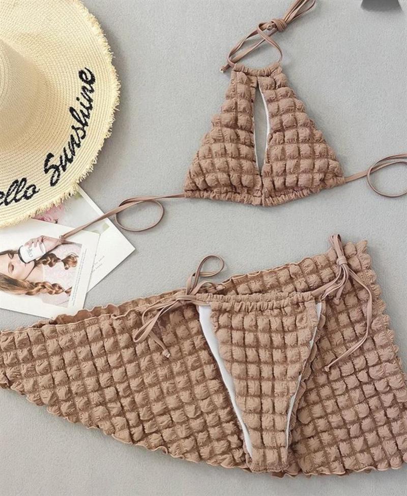 Traje de Baño Bikini Adelgazante Cintura Alta Dividido Fruncido Sexy Traje de Baño de Playa para Mujer Traje de Baño de Tres Piezas Spice Girls Venta al por Mayor
