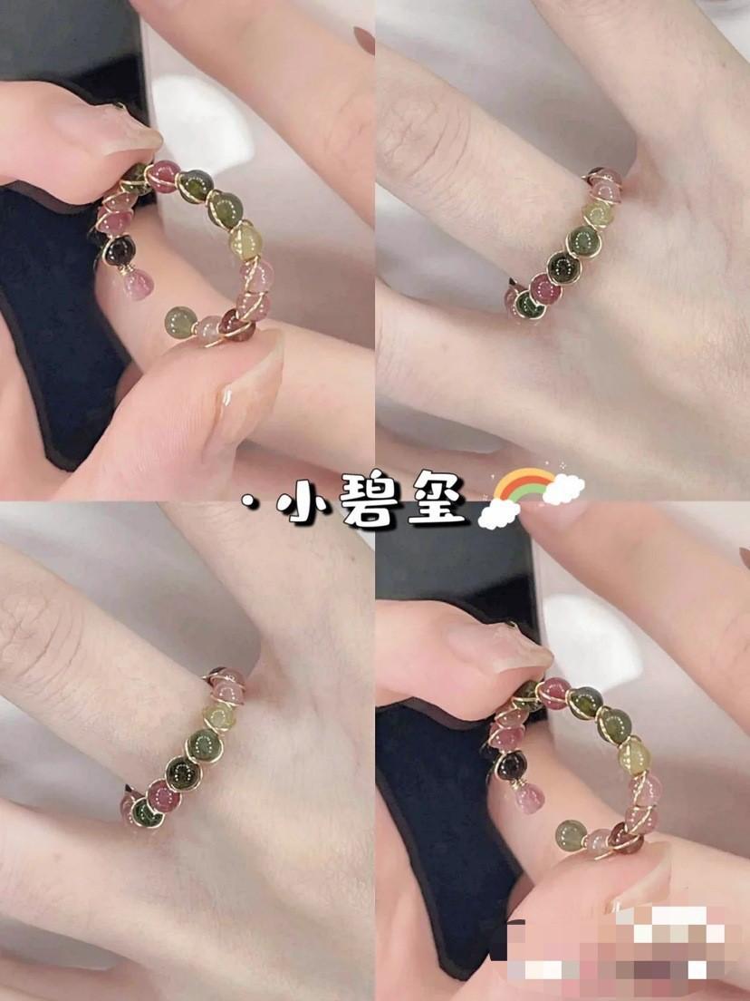 Anillo de Turmalina Arcoíris Diseño 2023 Moda Temperamento Nicho Multi-Cuentas Estilo Ins Anillo para Dedo Índice