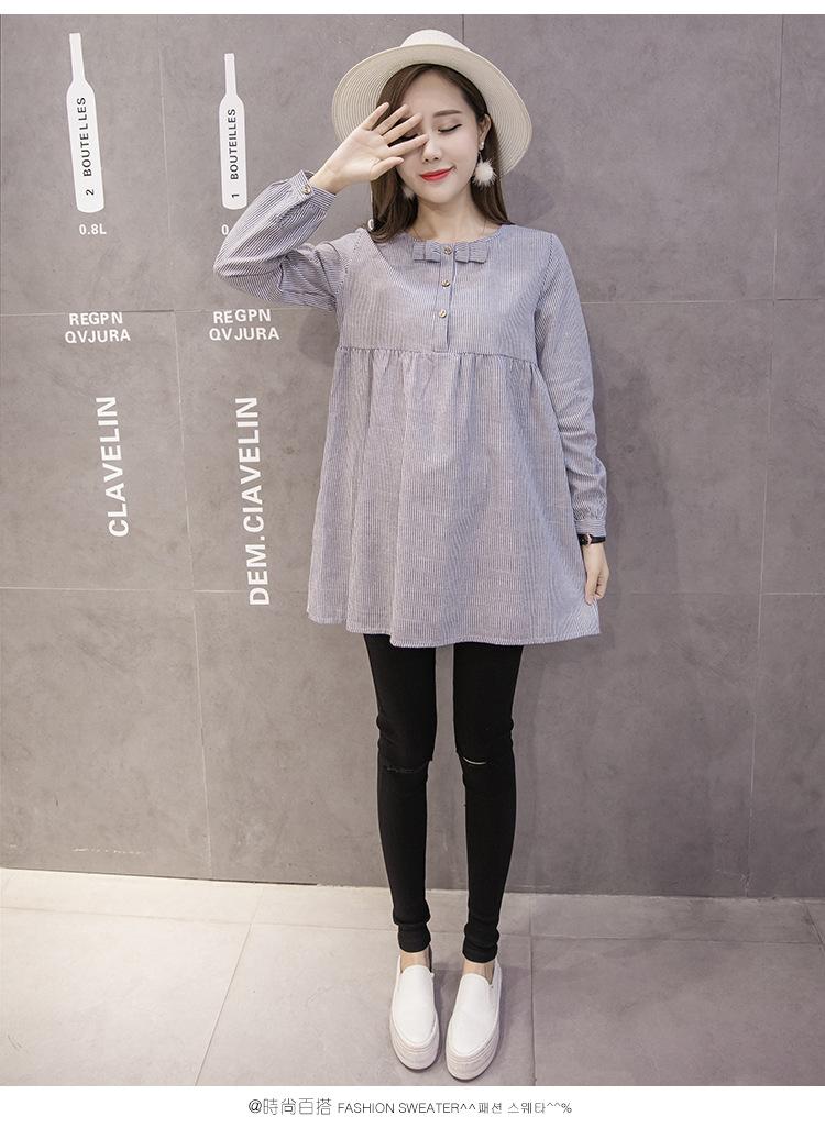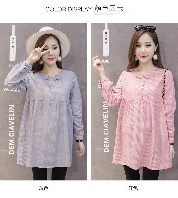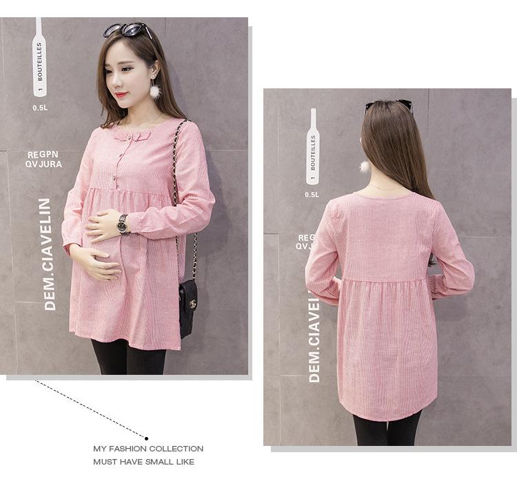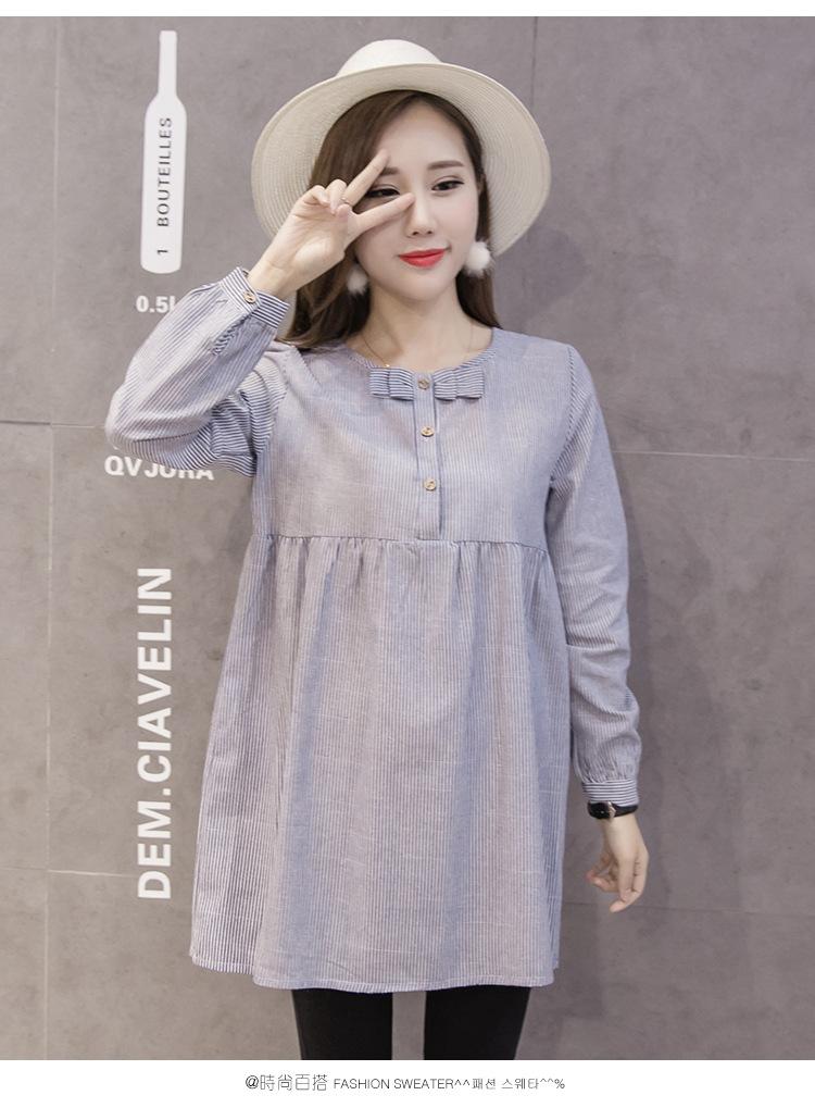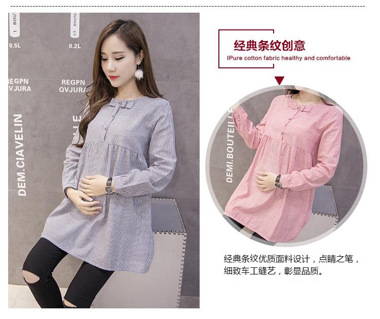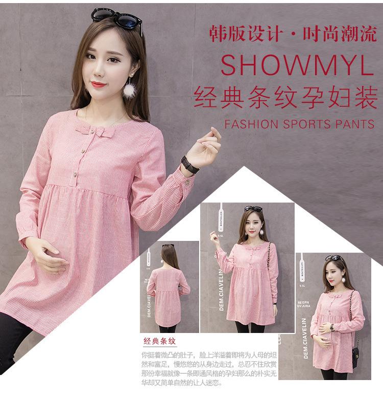 Vestido de maternidad 2024 Verano nuevo dulce moda rayas lazo medio largo suelto vestido de embarazada
