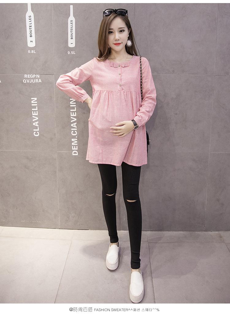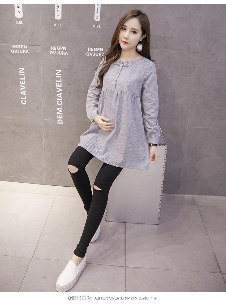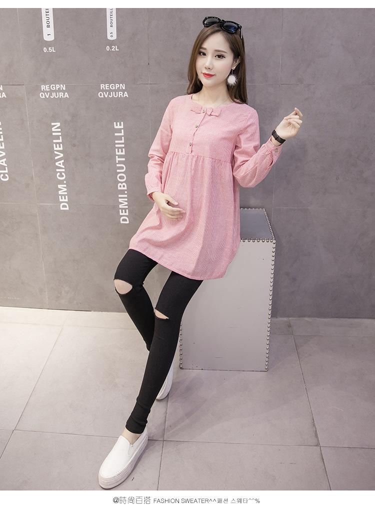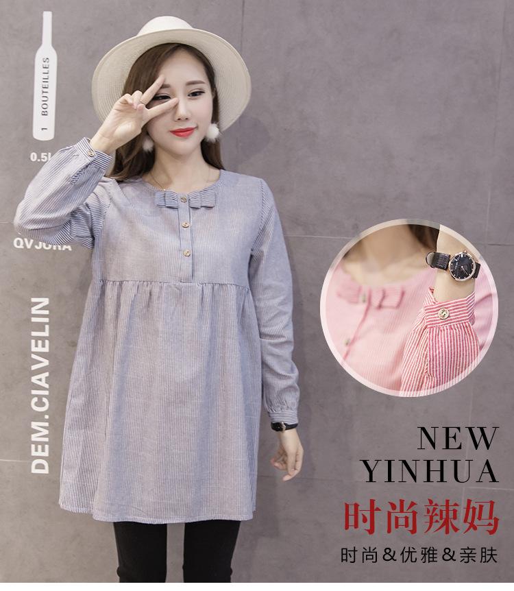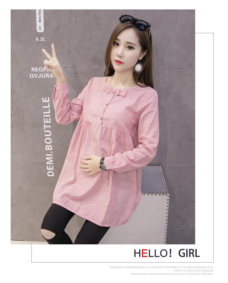 Vestido de maternidad 2024 Verano nuevo dulce moda rayas lazo medio largo suelto vestido de embarazada