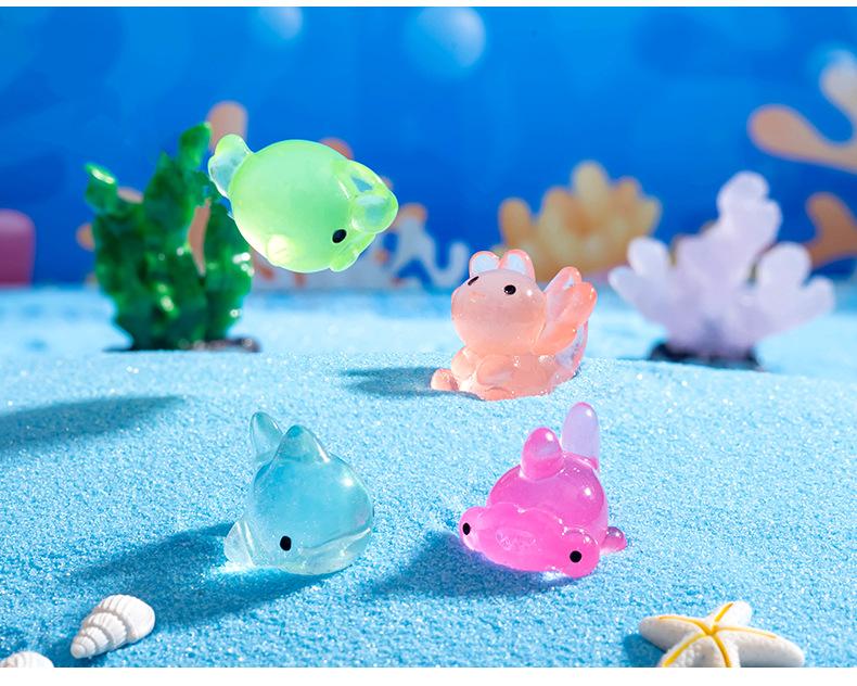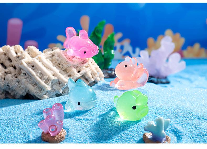 Micro Paisaje Dibujos Animados Lindo Luminoso Adornos de Animales Marinos DIY Bolsa Ciega Accesorios de Decoración Adornos Acuario Pecera