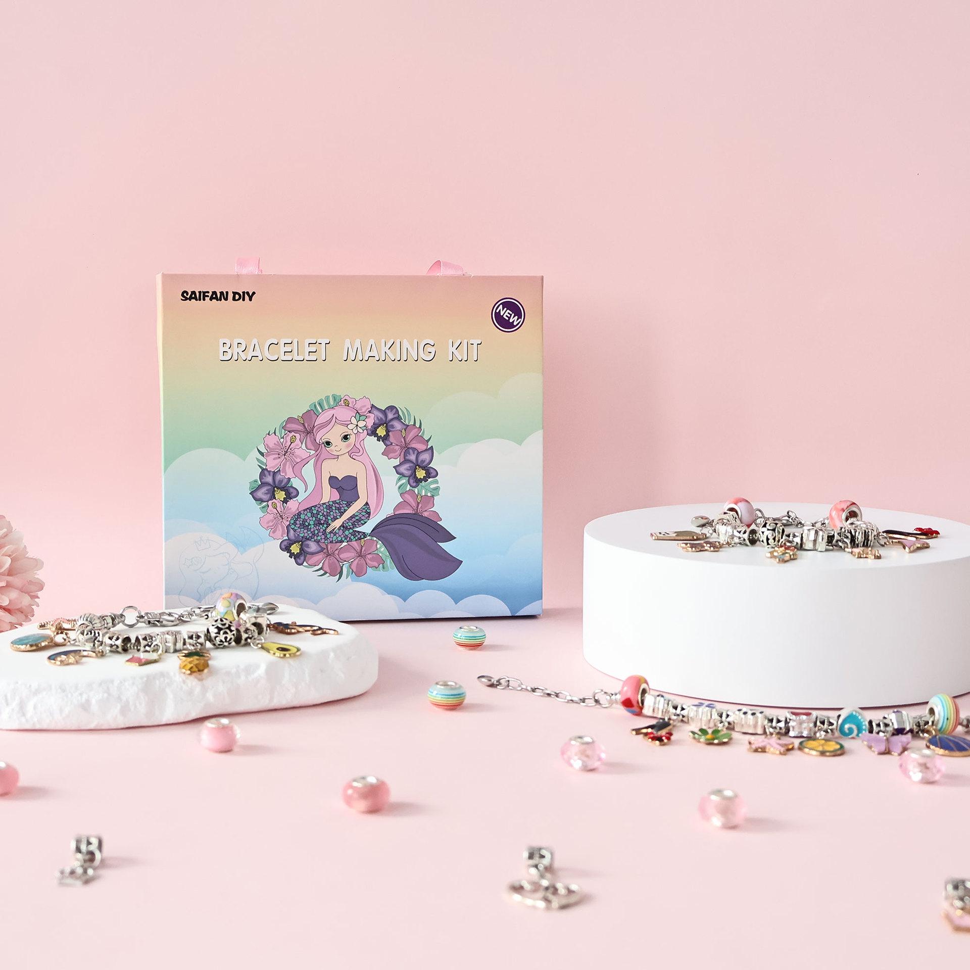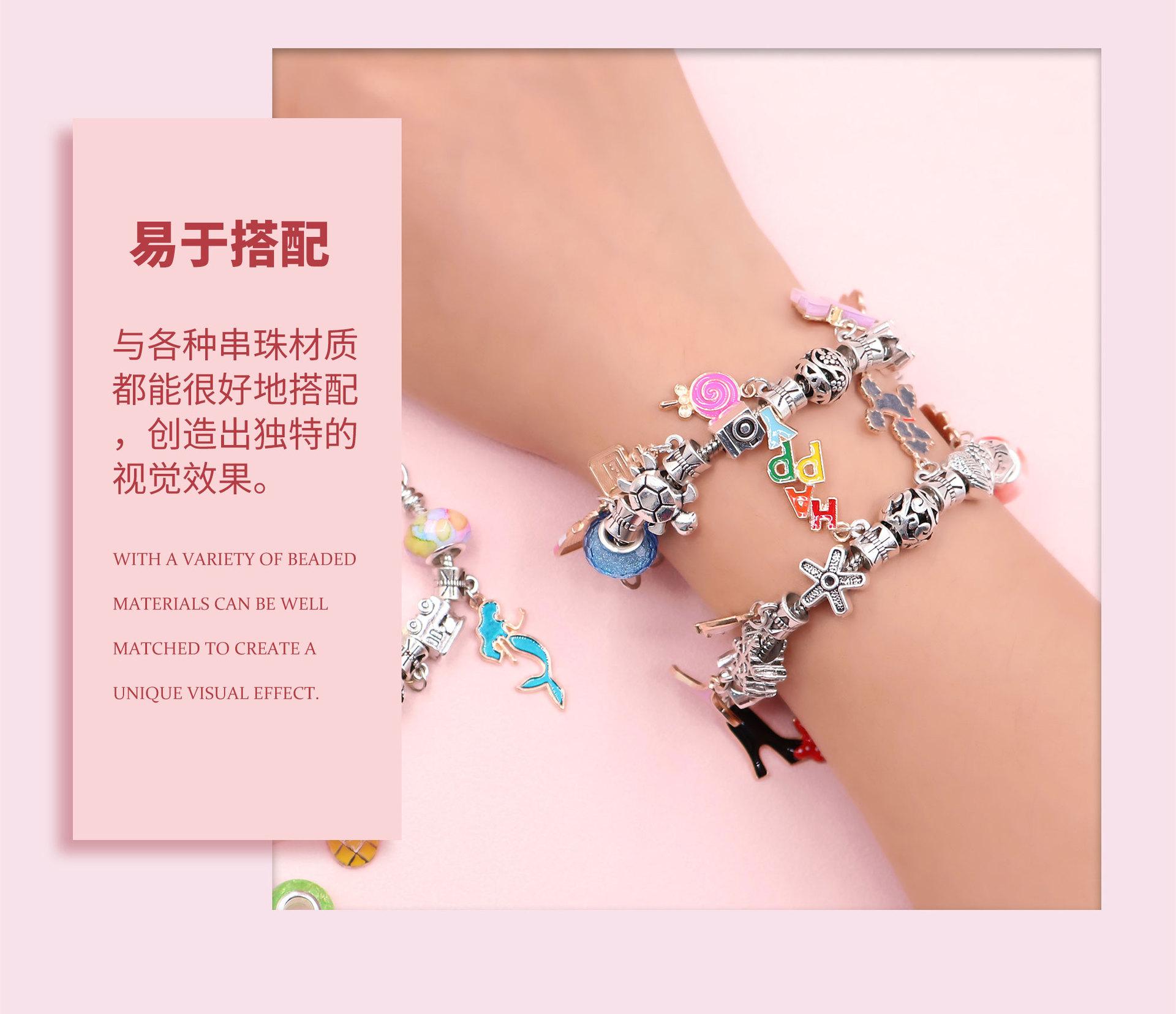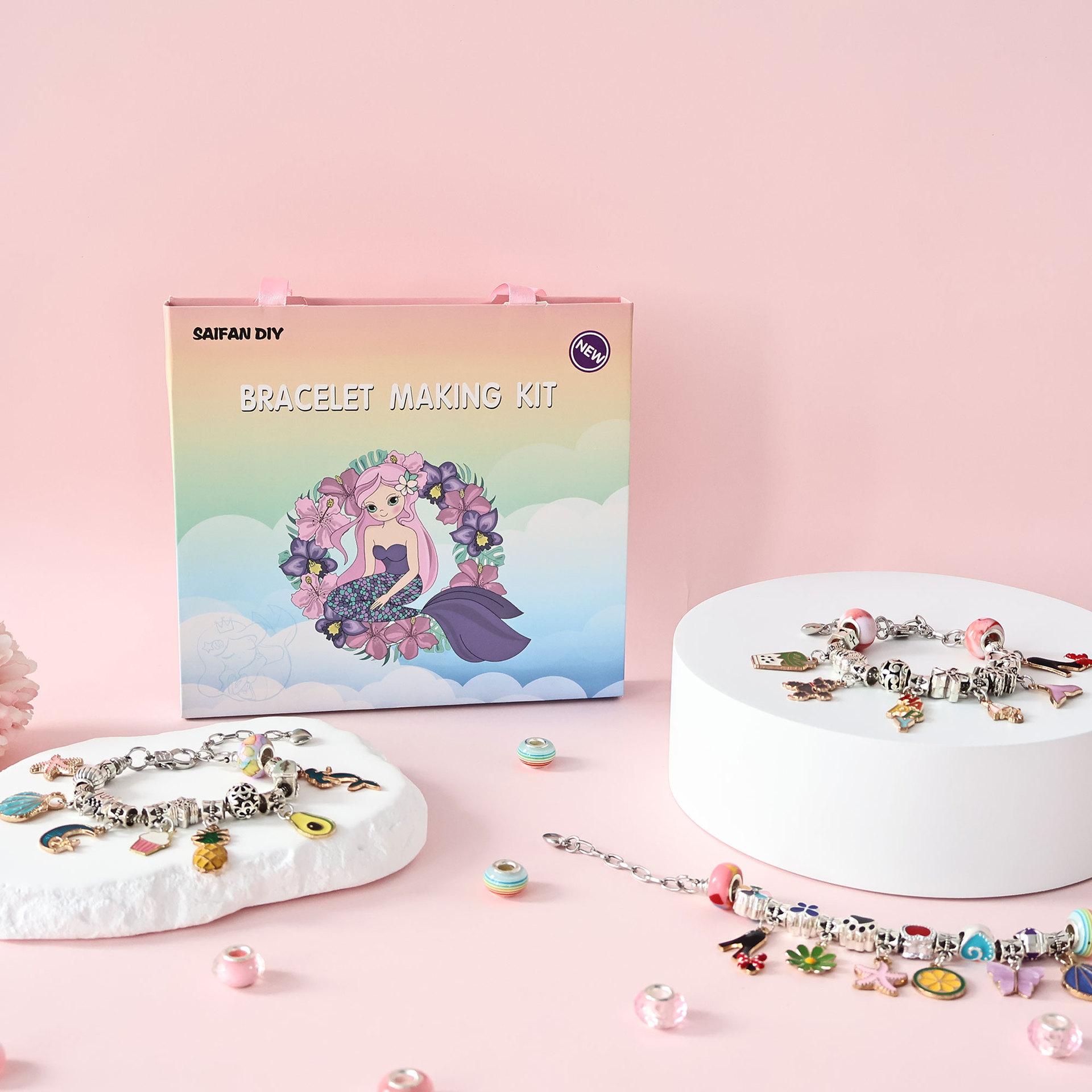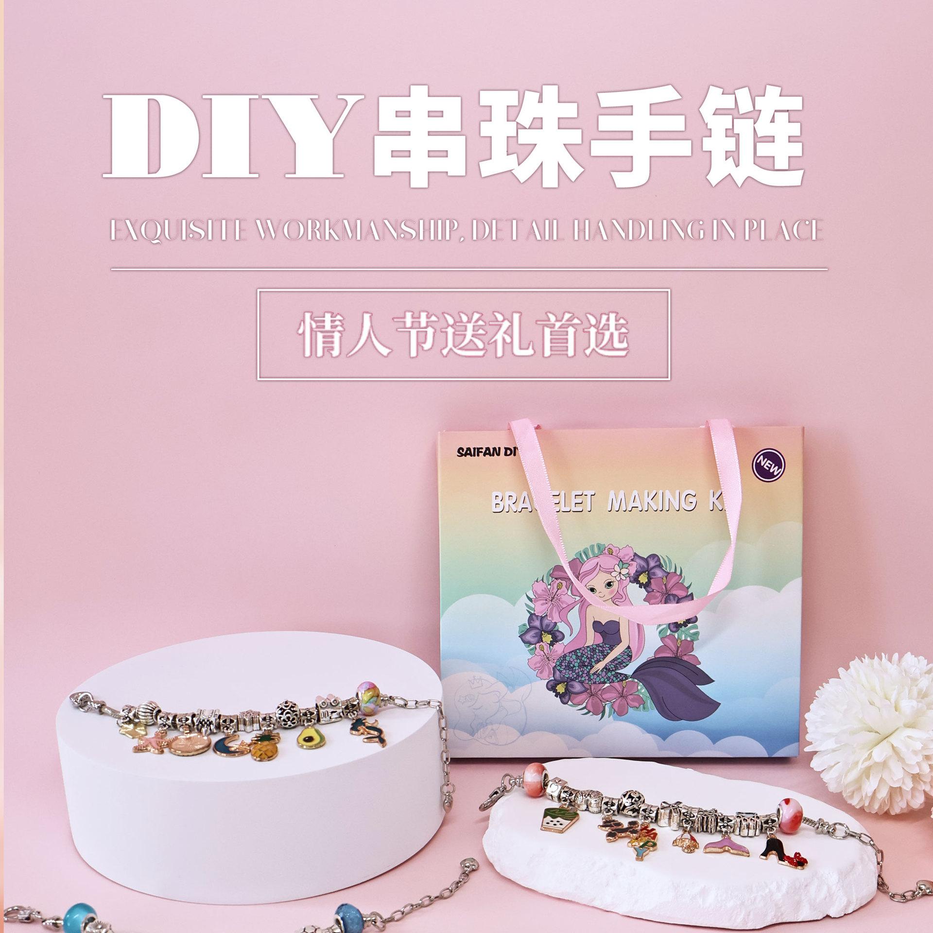 8 pink beads + 12 metal beads + 6 hole beads + 10 closed rings + 6 pendants + 2 bracelets + (gift box + gift bag)