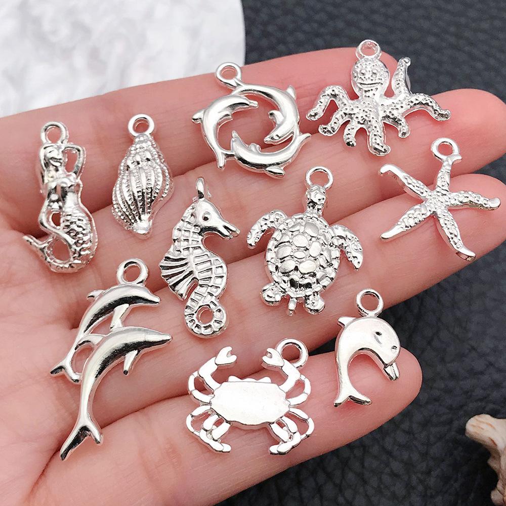 Colgante de Sirena Delfín de Aleación Plateada Brillante Más Vendido de Amazon DIY Pulsera Collar Llavero Joyería con Colgante