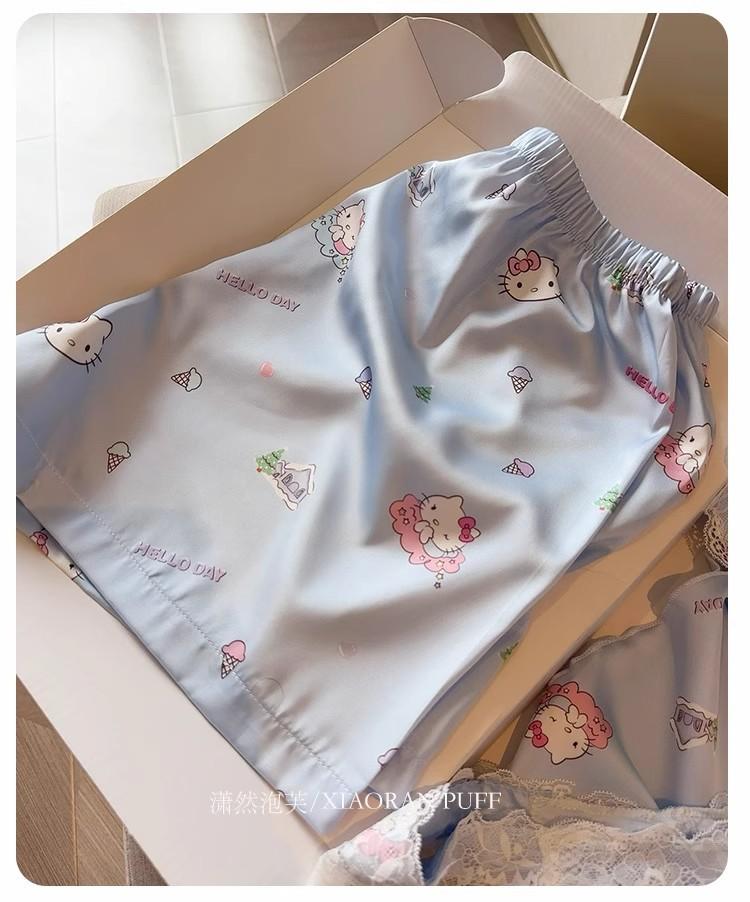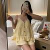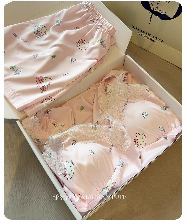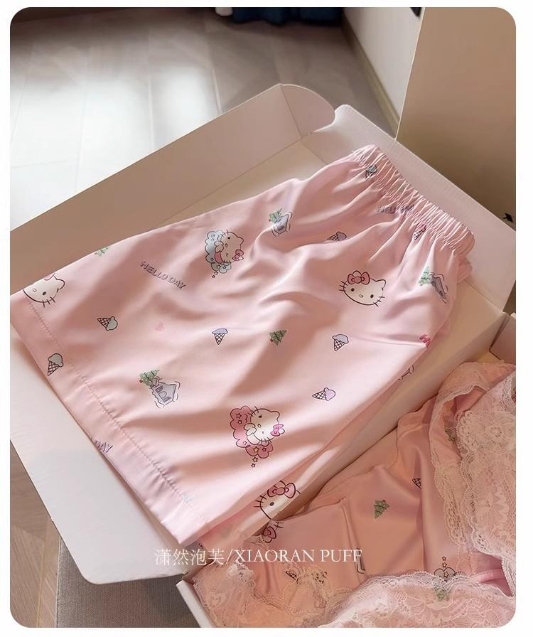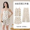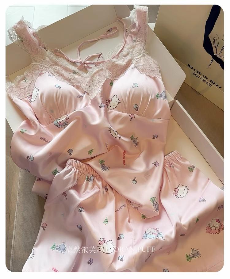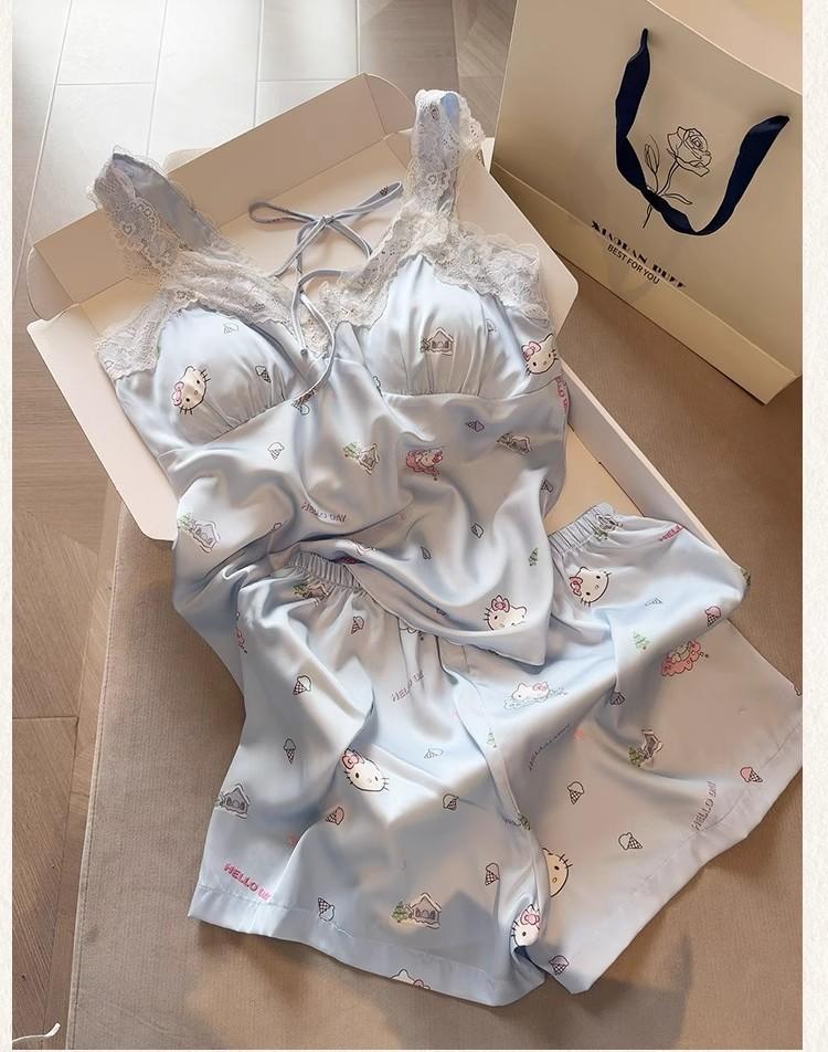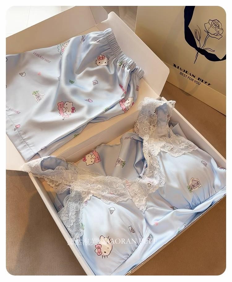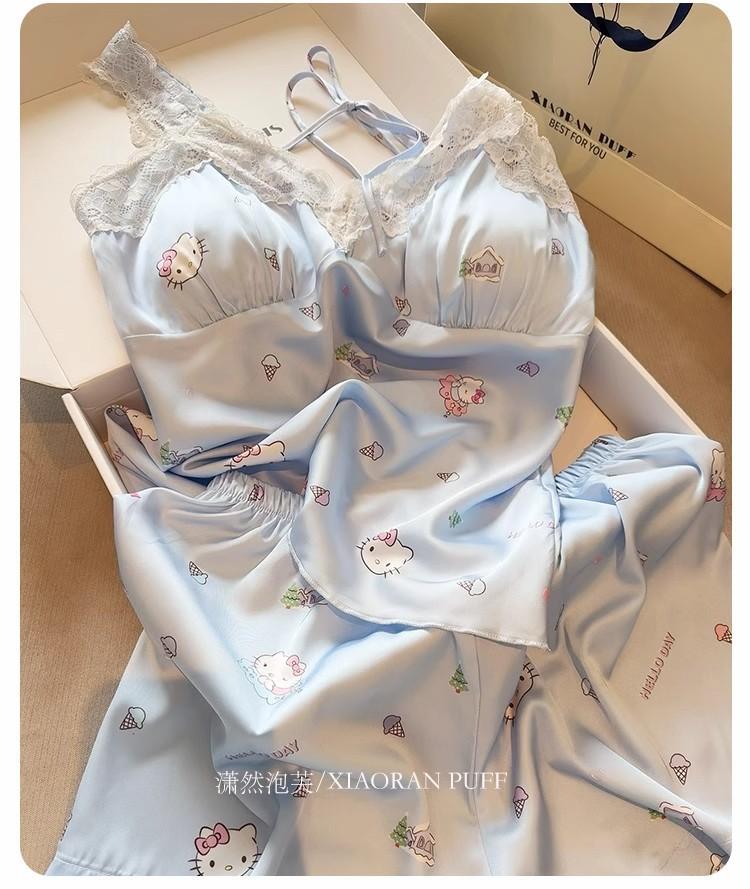 Pijamas de Verano de Seda de Hielo de Dibujos Animados Lindos con Tirantes Nuevos para Mujer con Almohadillas para el Busto para Niñas, Ropa de Casa Sexy y Dulce