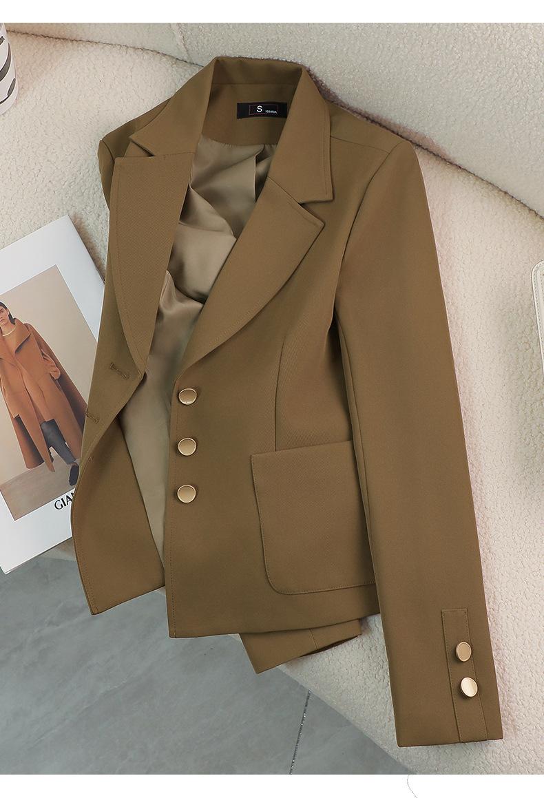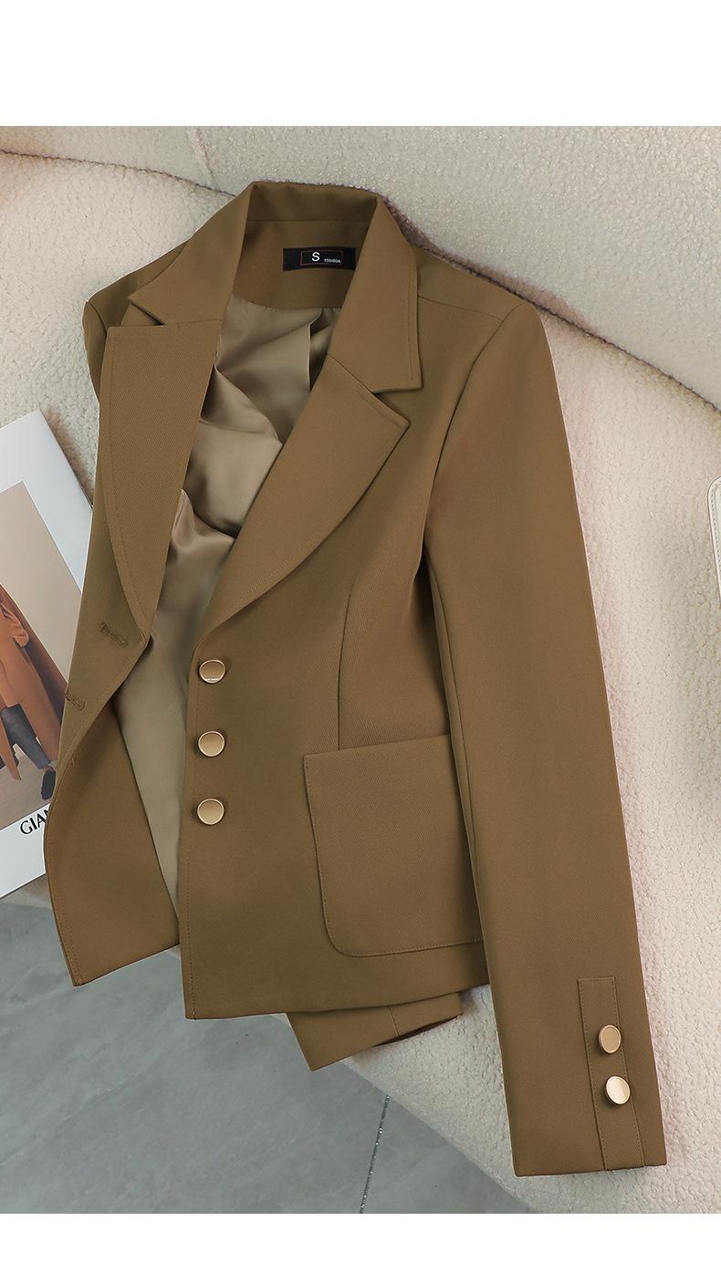 Chaqueta de Traje Pequeña Marrón para Mujer Primavera y Otoño Transfronteriza Nuevo Estilo Coreano Temperamento Diosa Fan Pequeño Top de Alta Gama