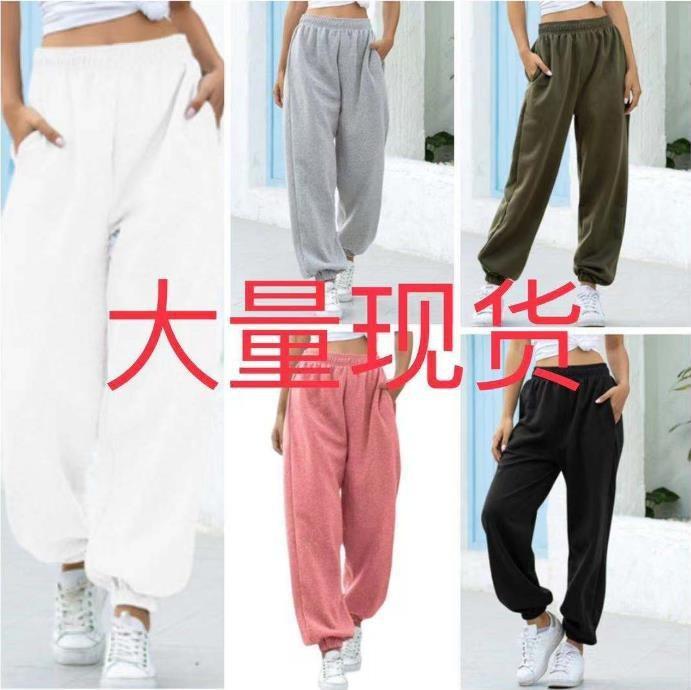 Comercio Exterior Amazon Elásticos de Cintura Alta Pierna Ancha Pantalones Deportivos Europeos y Americanos Transfronterizos para Mujer Otoño e Invierno Nuevo Sueltos Casuales