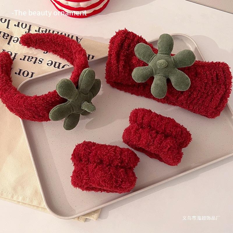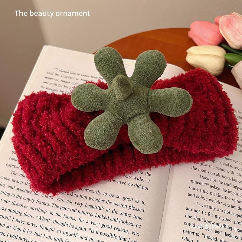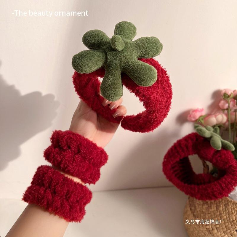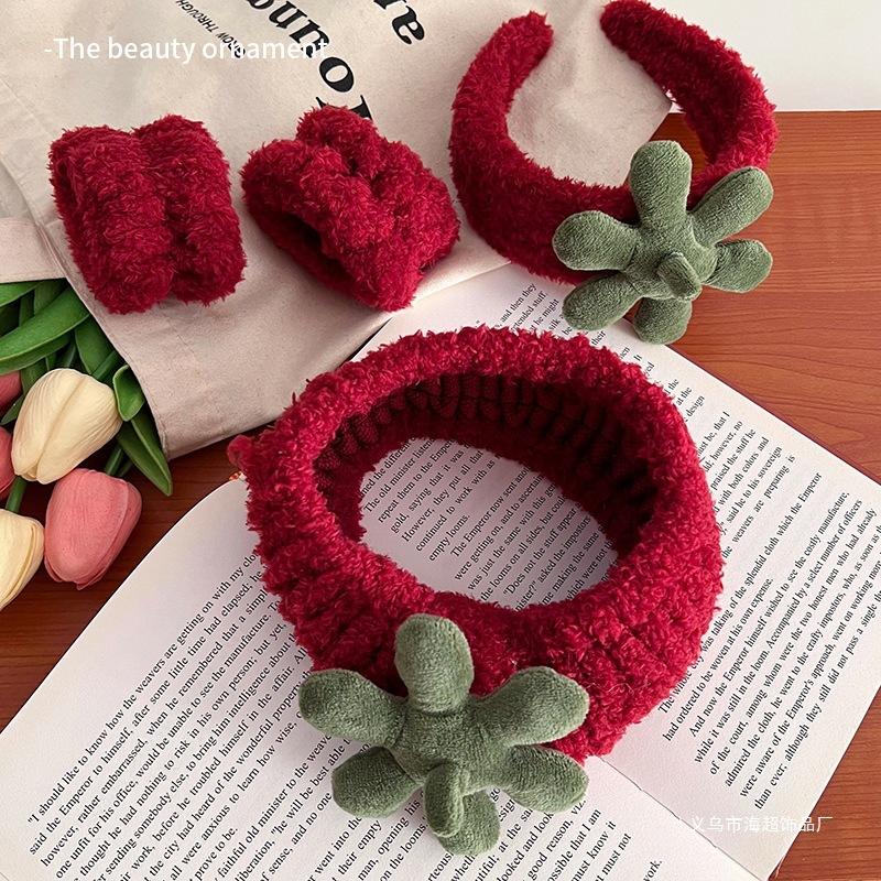 Lindo Diadema de Fresa para Mujer Lavado de Cara Diadema Alta Presión Superior Craneal Paquete de Cabello Borde Ancho Clips para el Cabello Diadema Impermeable Muñequera